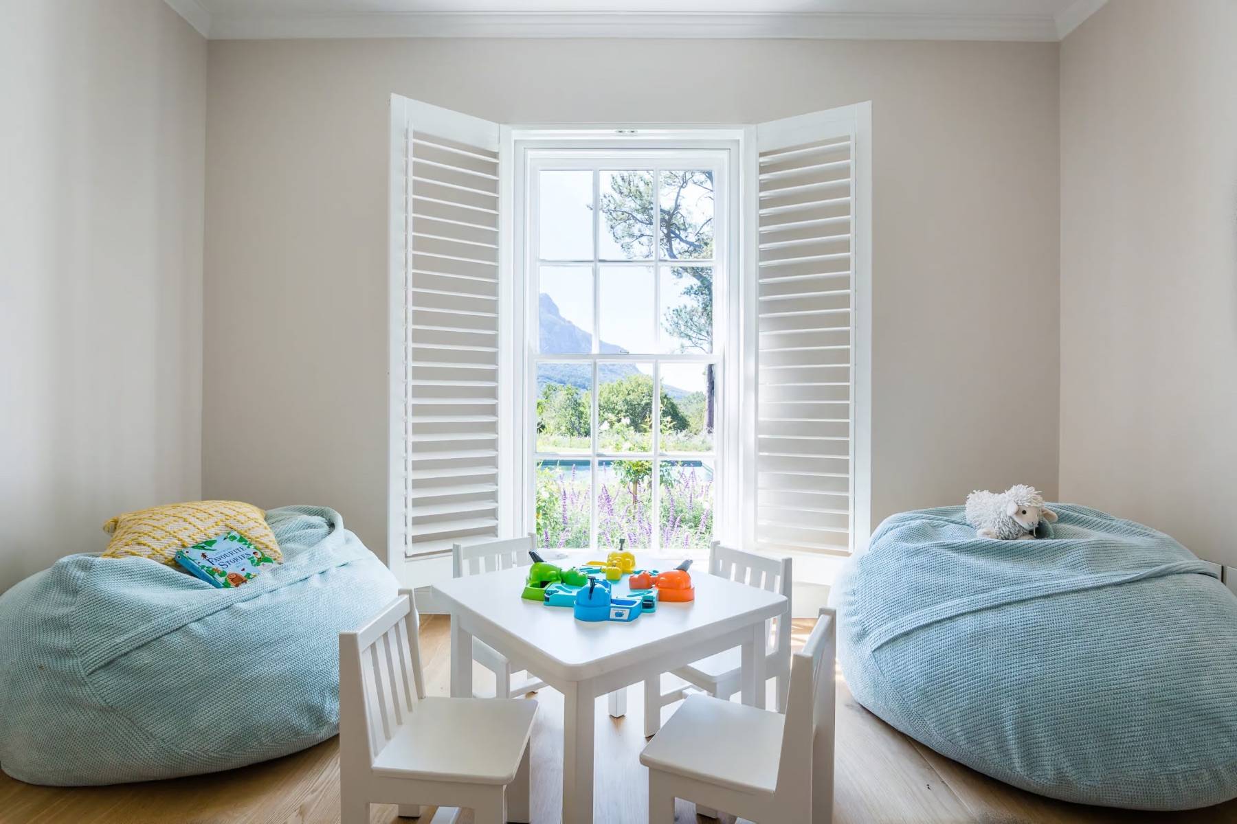 Im Obergeschoss beherbergt die Villa insgesamt vier Schlafzimmer. Neben dem Masterbedroom befindet sich auf dieser Ebene ein weiteres Schlafzimmer mit Doppelbett, sowie zwei wunderbare Kinderzimmer.