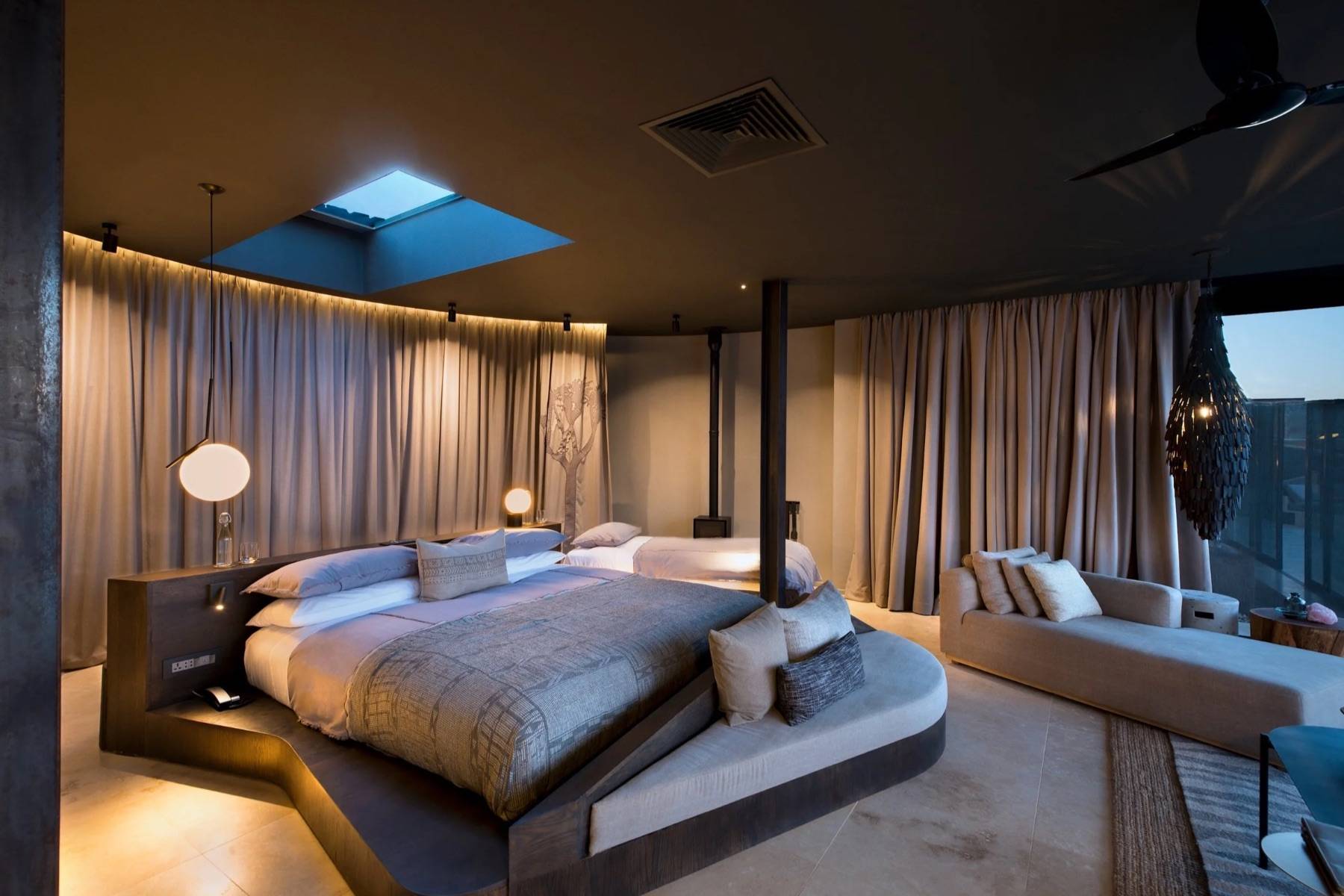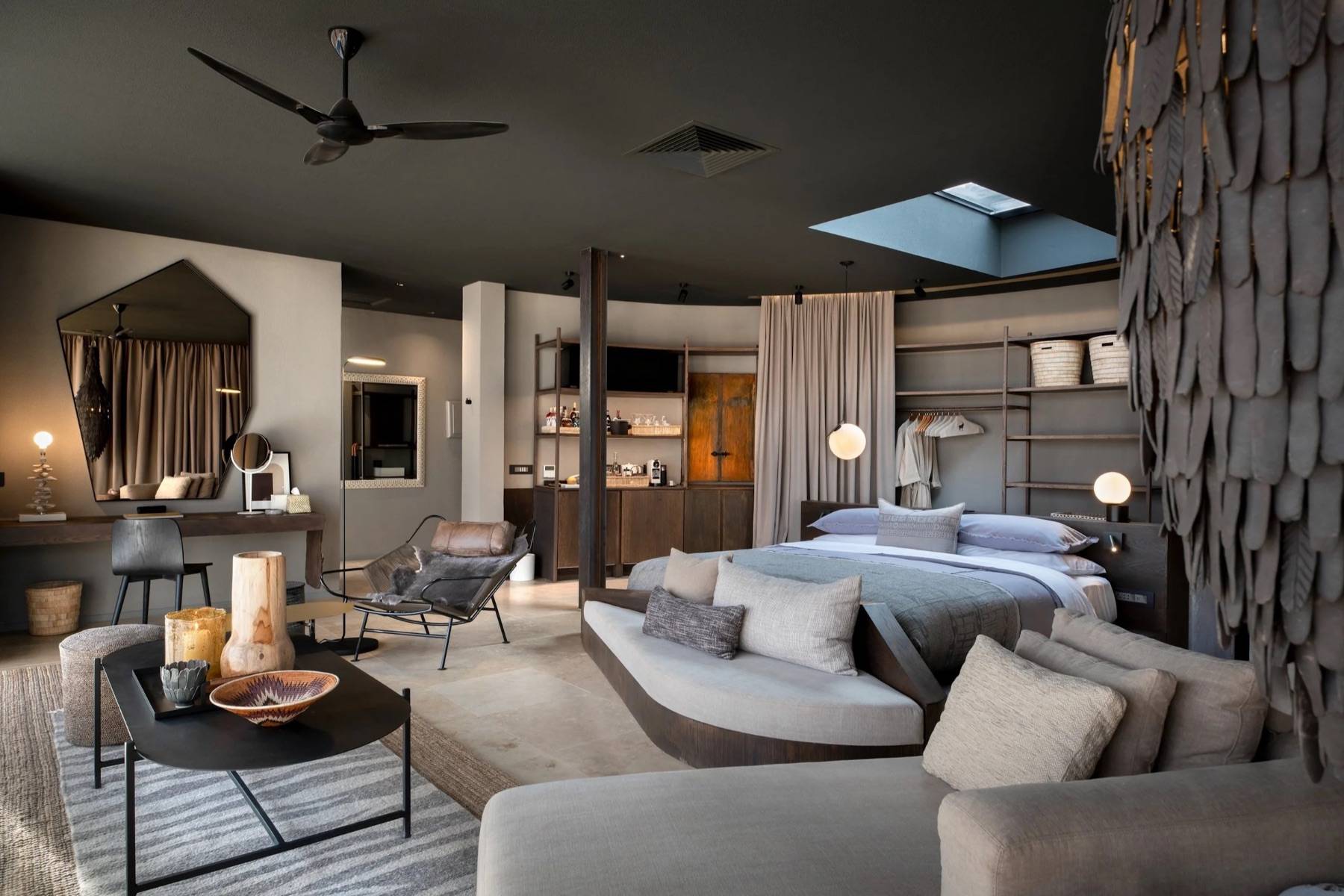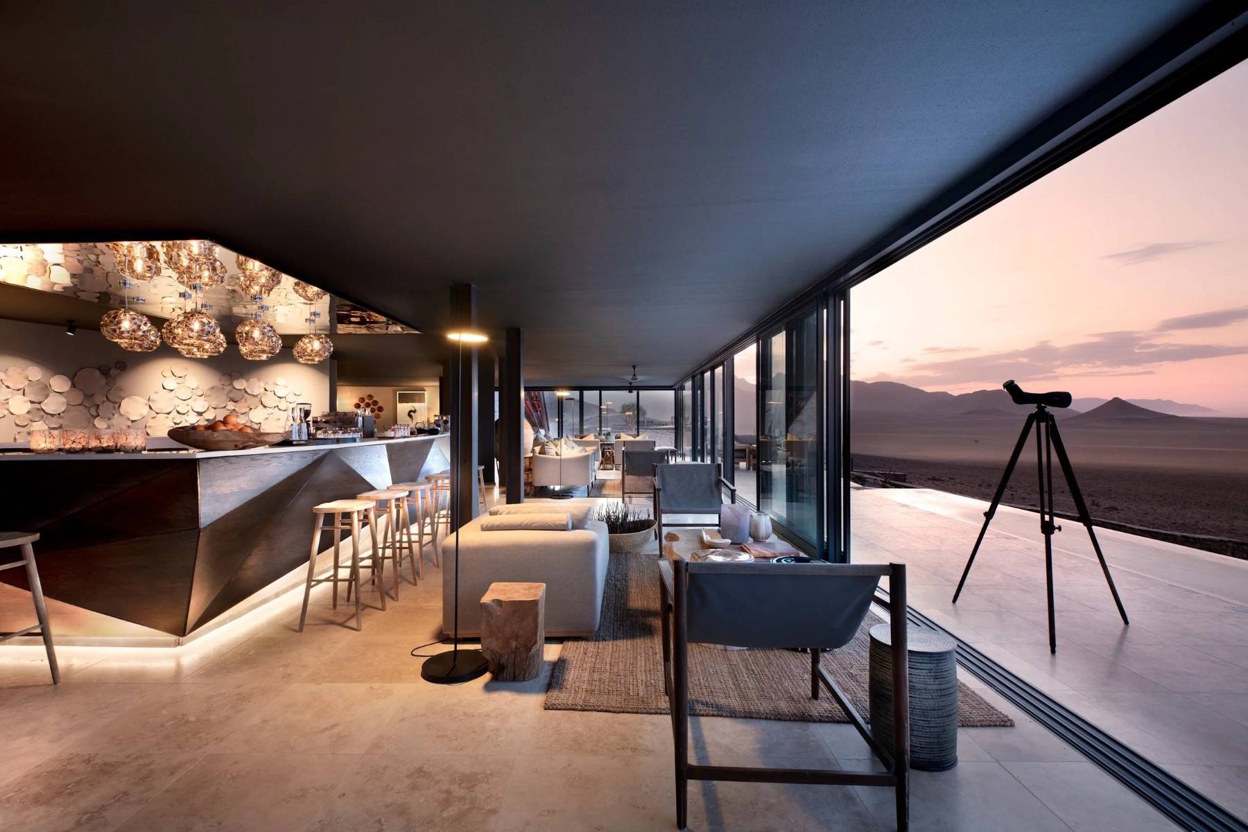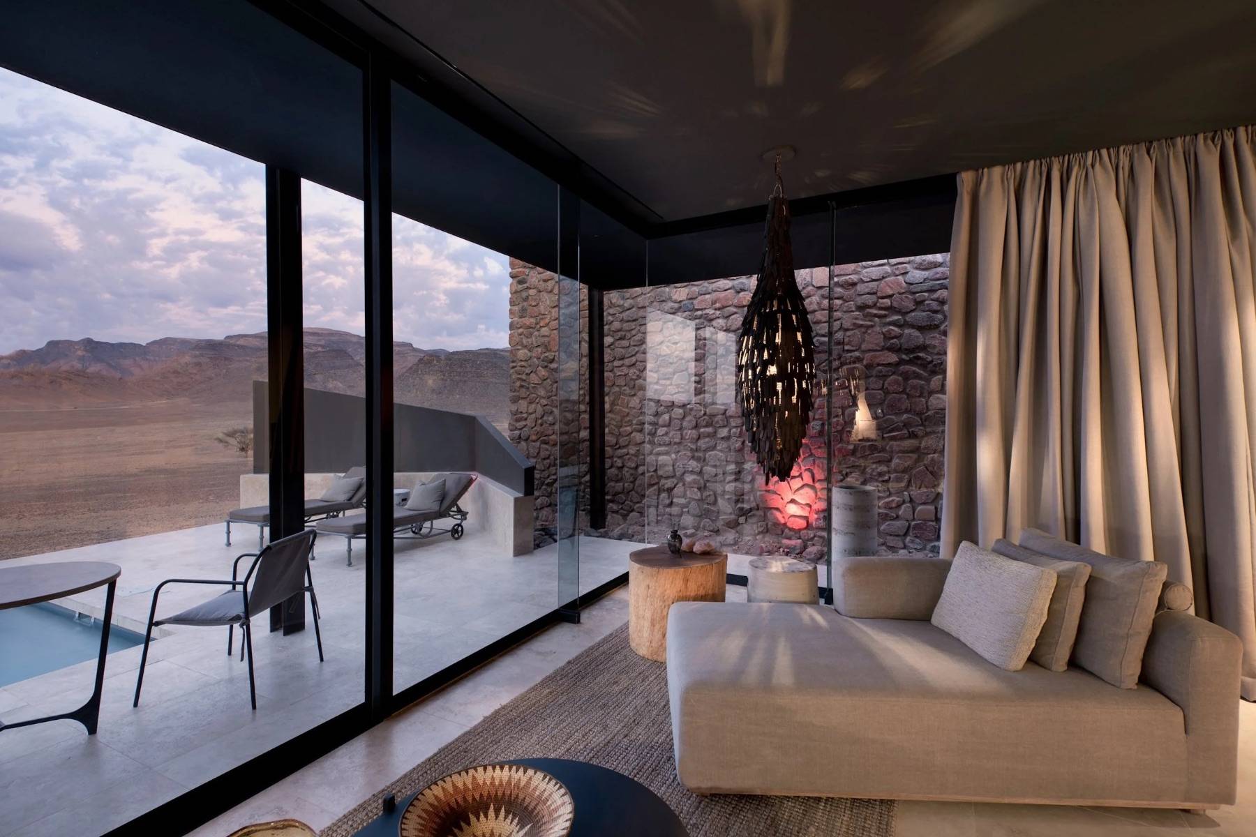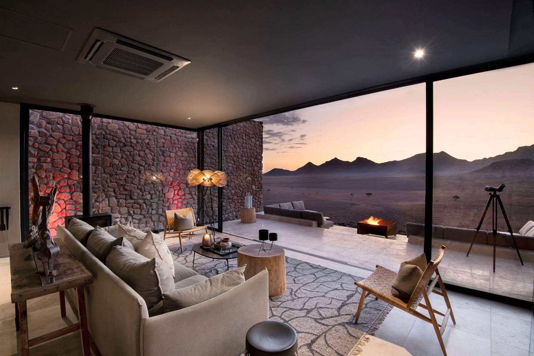 Exklusive architektonische Gestaltung, die Naturmaterialien betont und gleichzeitig modernen Komfort liefert sind die perfekte Basis für Wüsten-Safaris, Tierbeobachtungen und spektakuläre Sonnenuntergänge