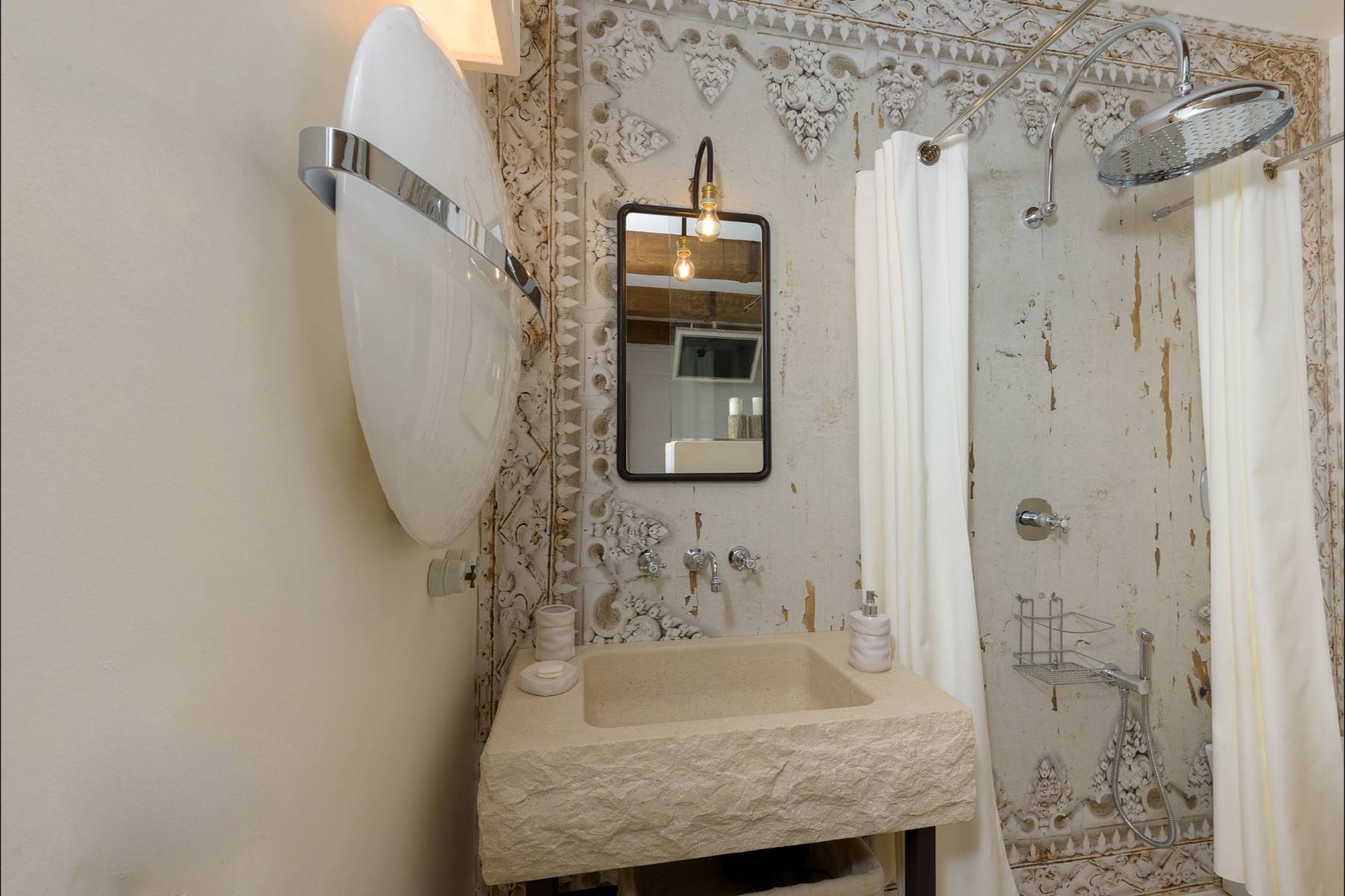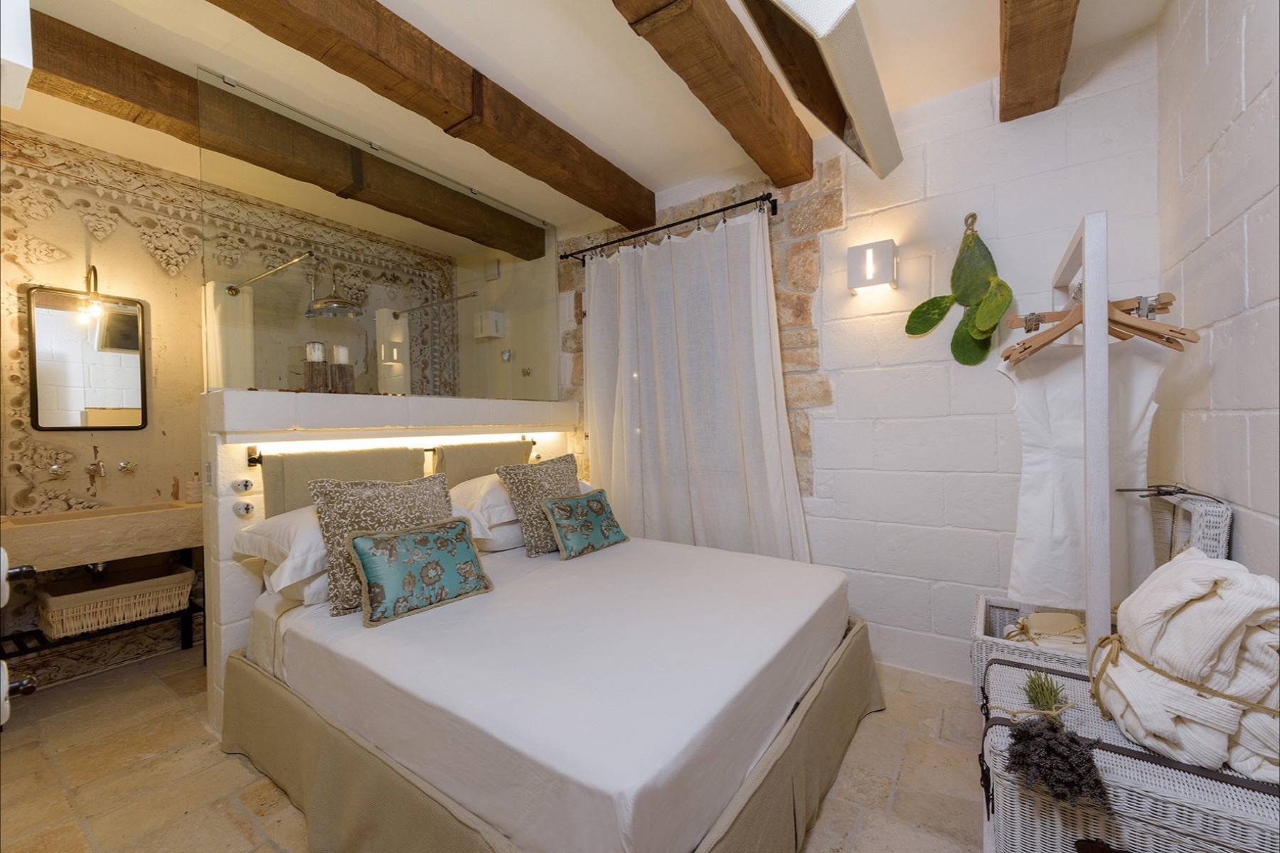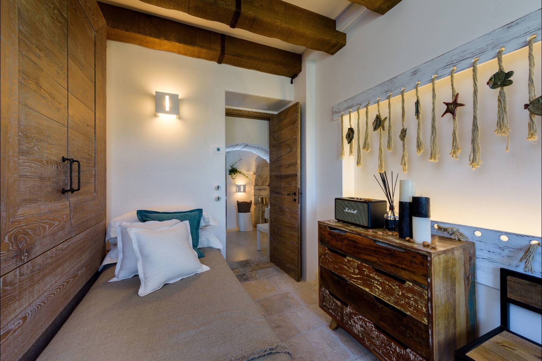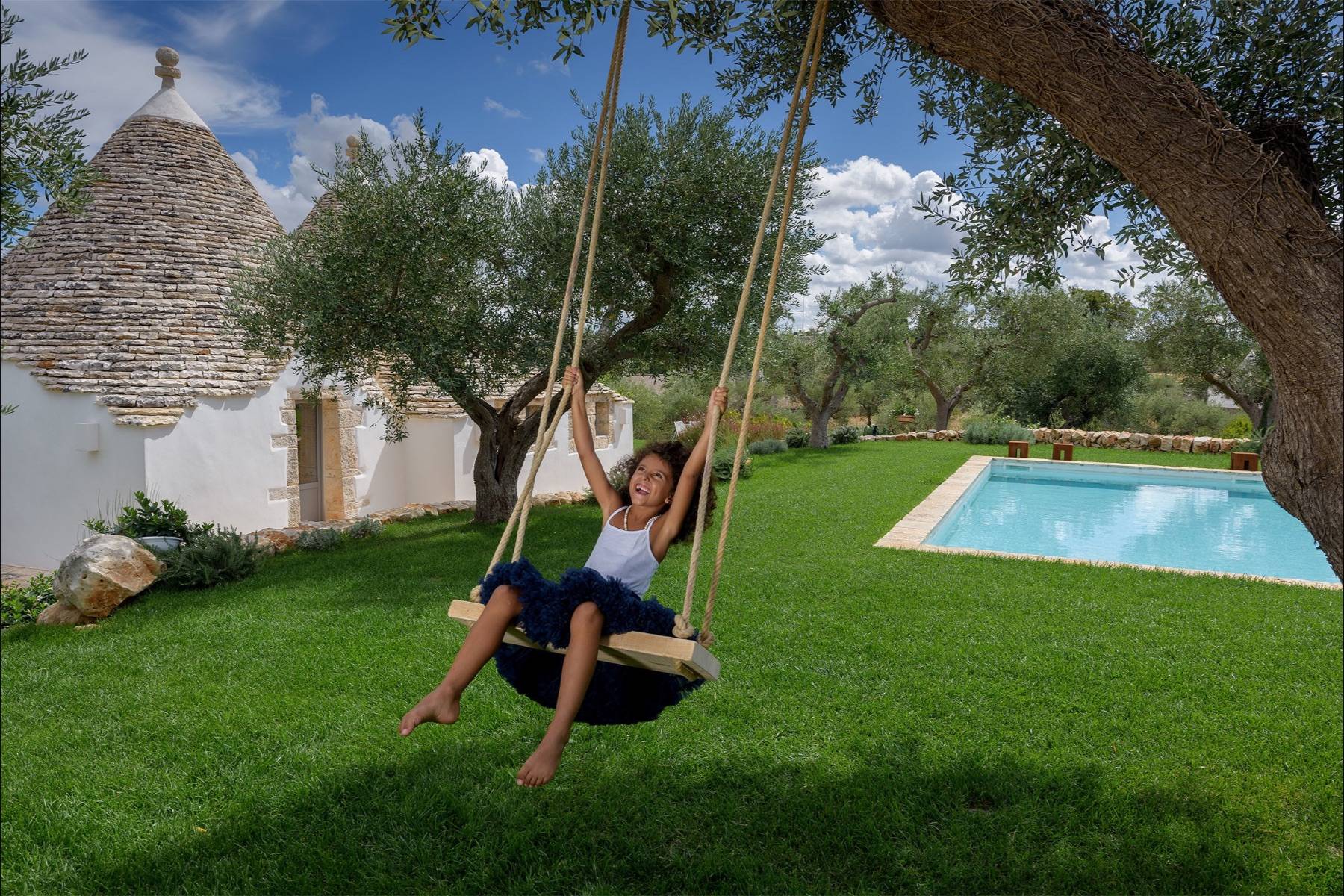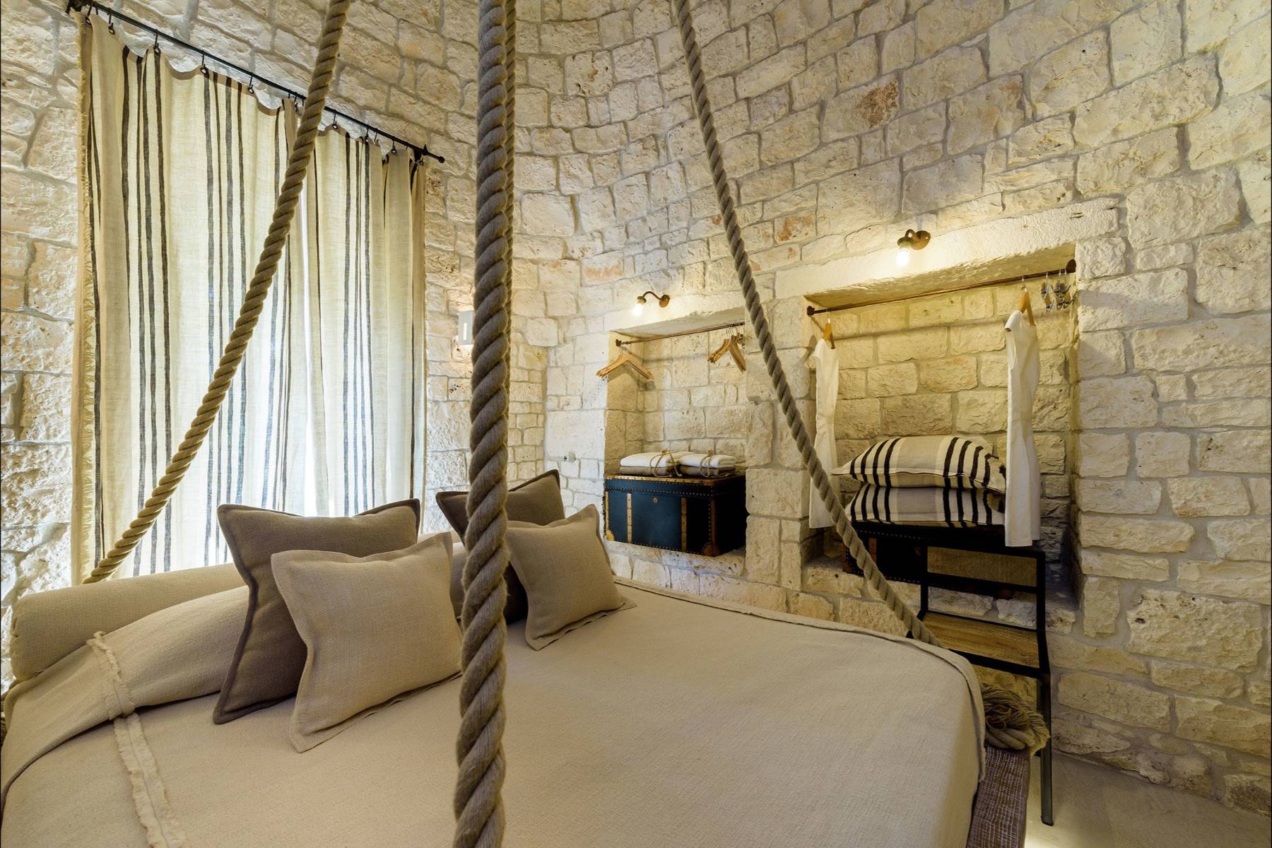 Die Villa Case di Fiaba in Alberobello ist ein perfekter Ausgangspunkt für Luxus, Ruhe und Entspannung, während man die sehenswerte Region Apulien erkundet. Sie besticht durch monochrome, bräunliche Farbtöne, die von weiß über gelb bis hin zu einem rötlichem Farbton übergehen. Die typischen Merkmale eines Trulli sind die drei Kegel mit weißen Spitzen.