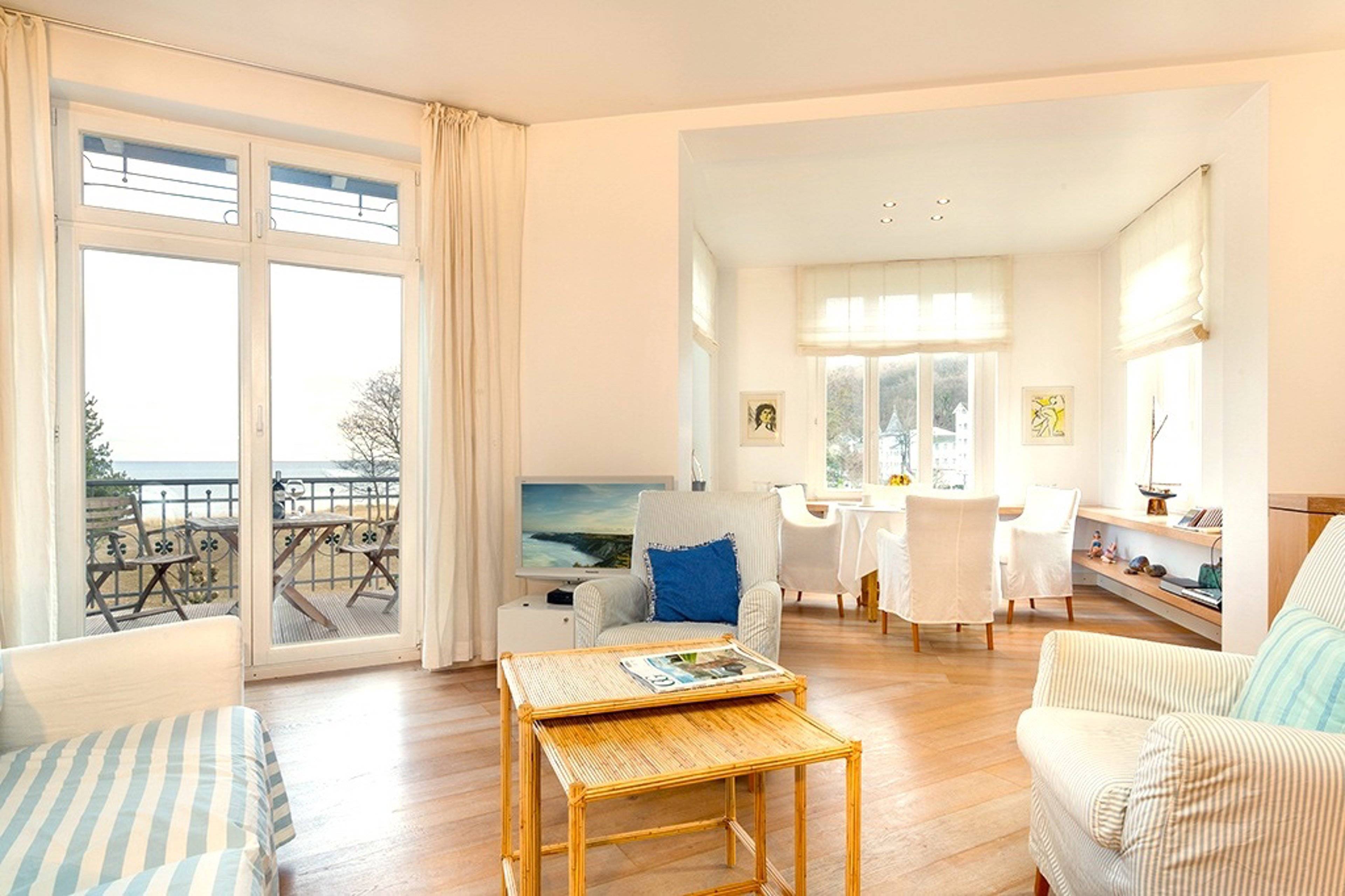Die Wohnung mit Turmerker versprüht mit ihren zahlreichen Fenstern einen besonderen Charme und durchflutet die Räume mit Sonnenlicht. Der Blick auf die Ostsee bis hin zu den Kreidefelsen wird Sie begeistern und verleiht Ihrem Urlaub die gewünschte Leichtigkeit.
