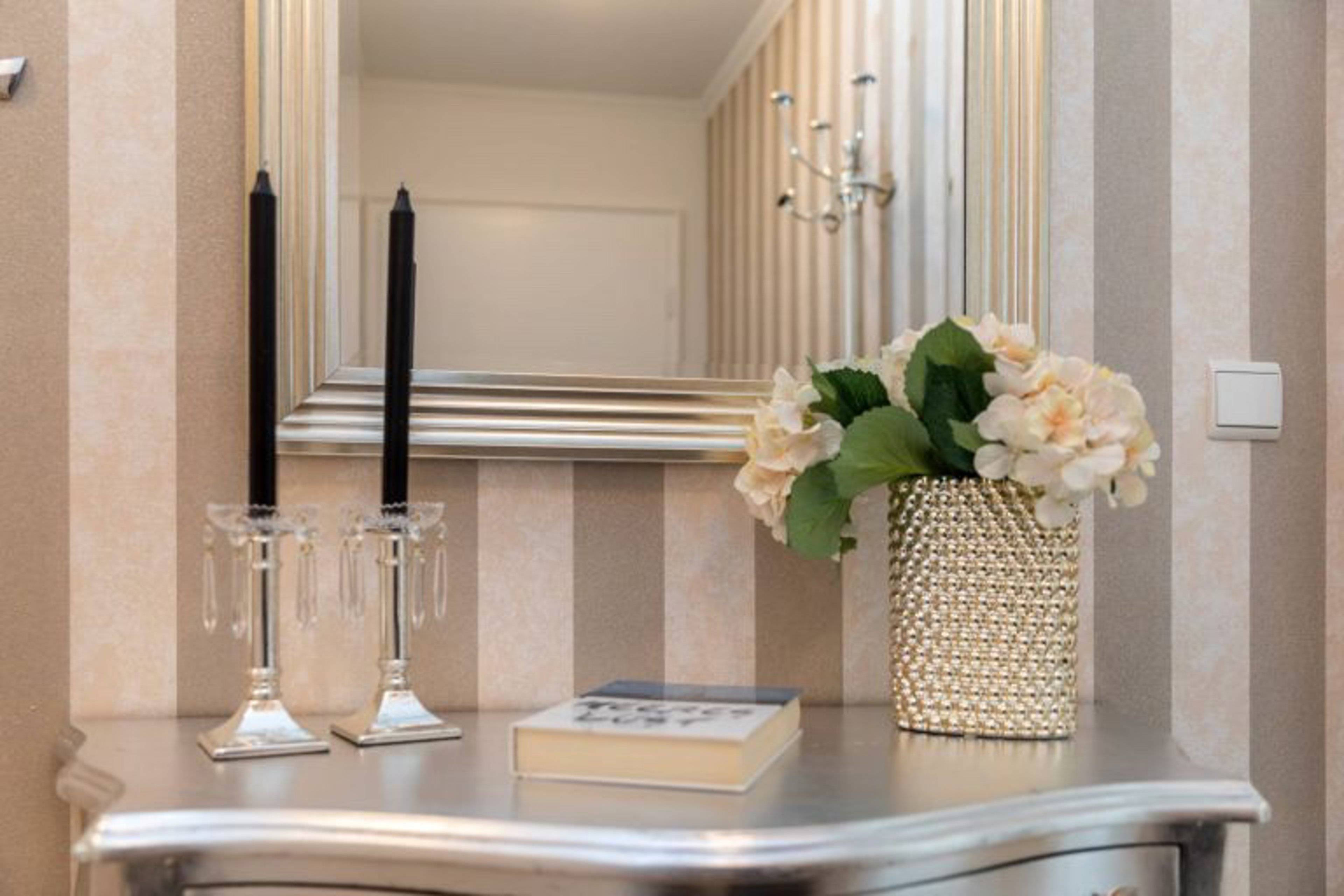 Über einen Aufzug gelangt man von der Tiefgarage direkt in das 2. Obergeschoss und in die Ferienwohnung Meereslust. Der Wohnbereich begeistert durch sein warmes, anspruchsvolles Ambiente, welches zudem durch Stil und Gemütlichkeit überzeugt.