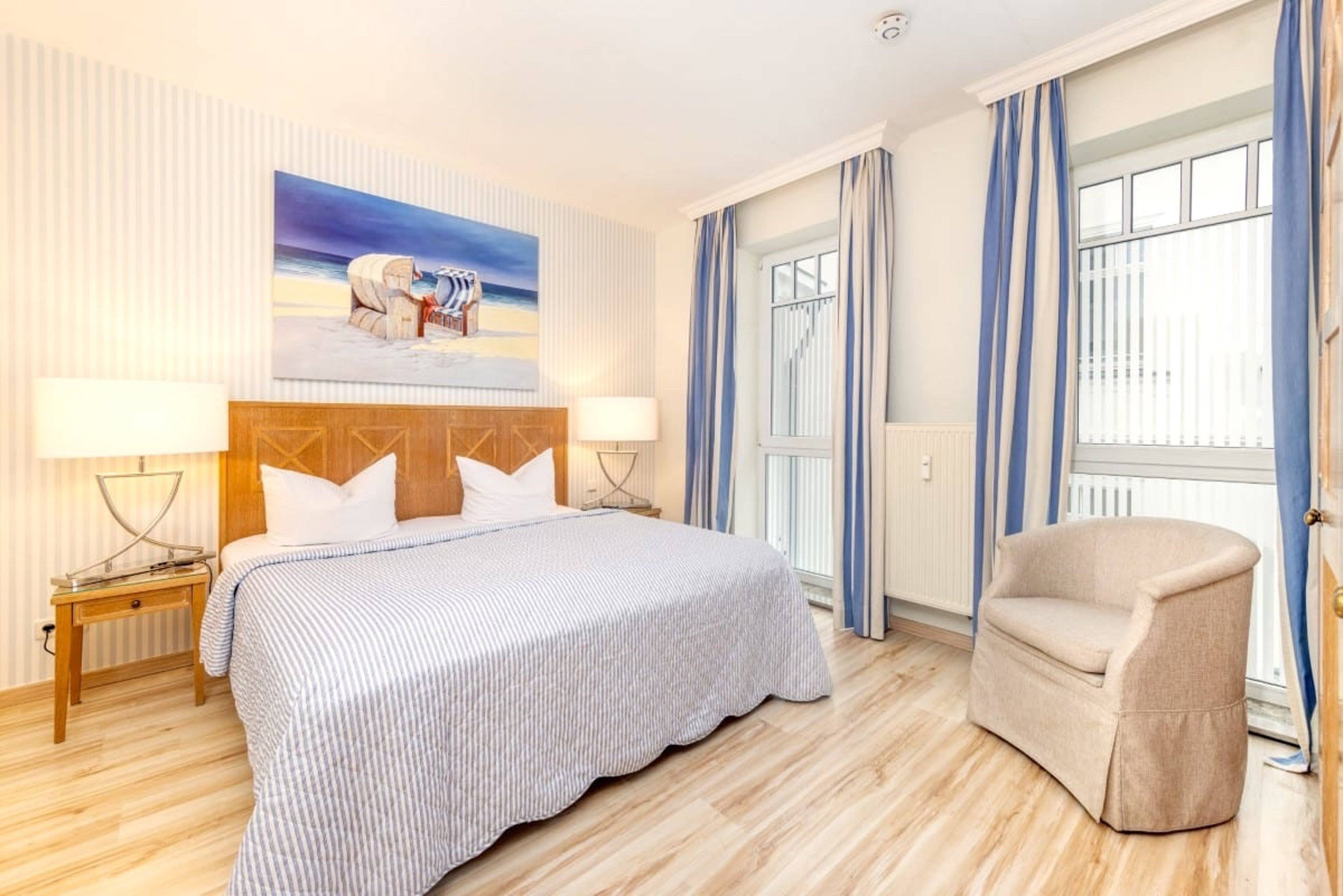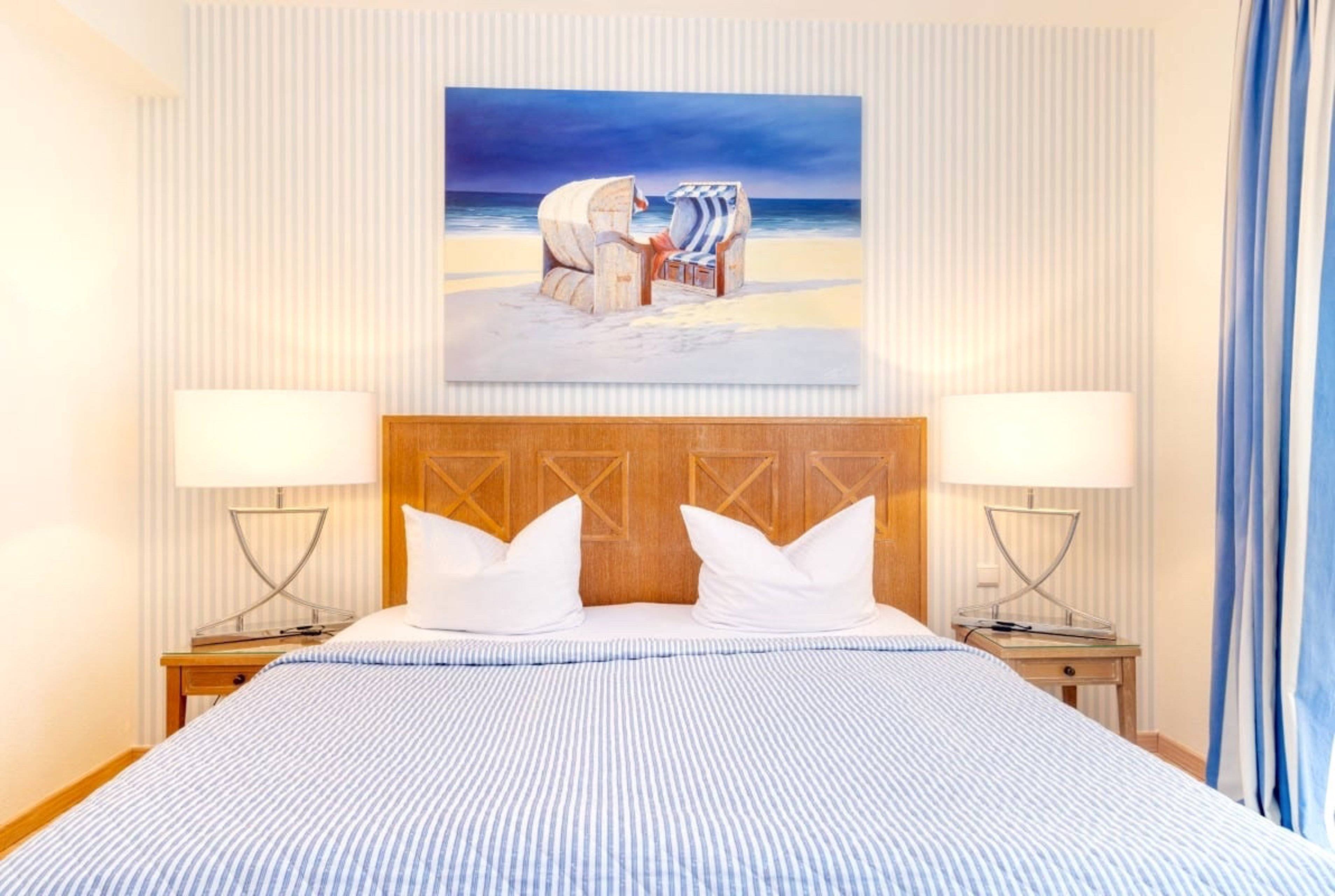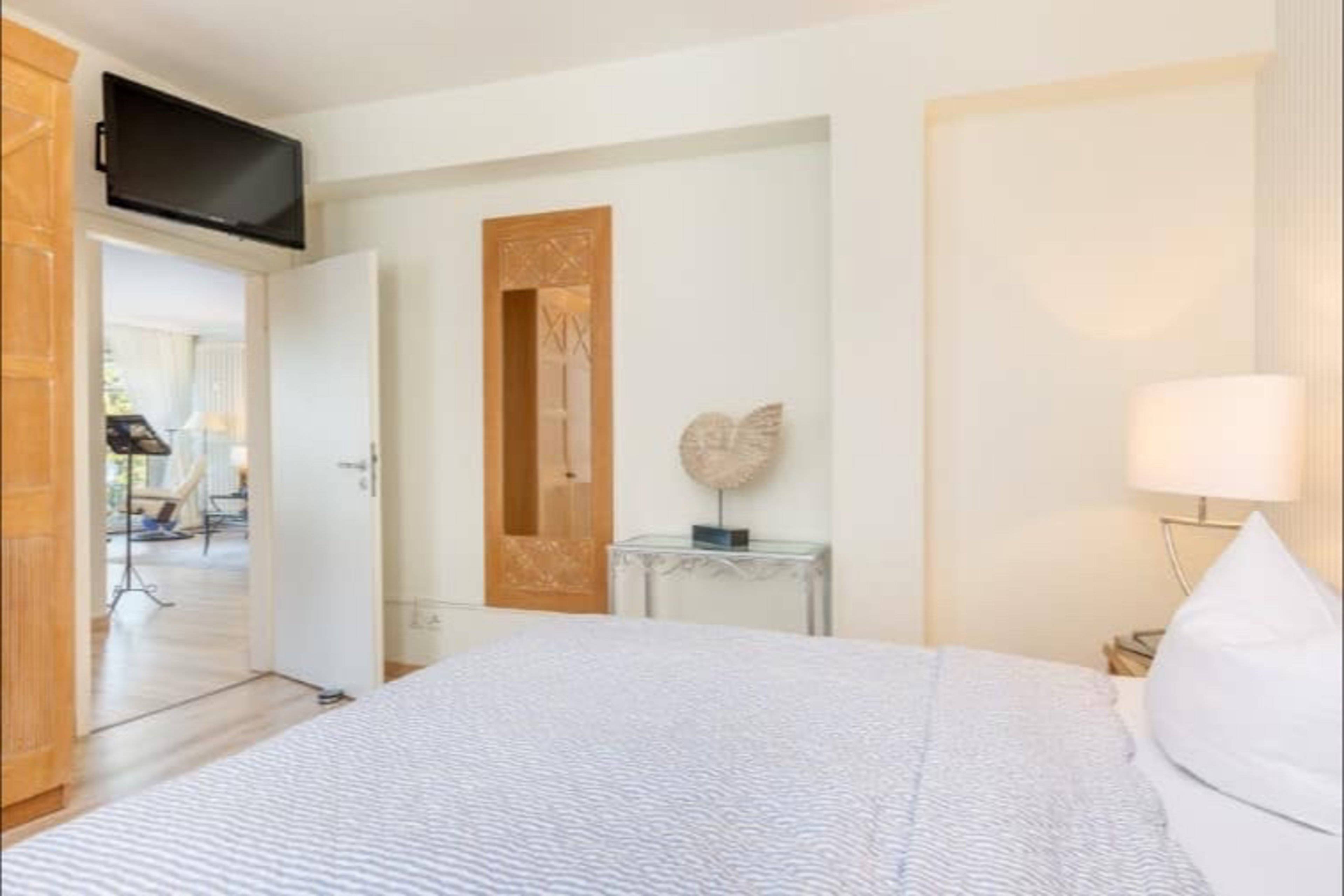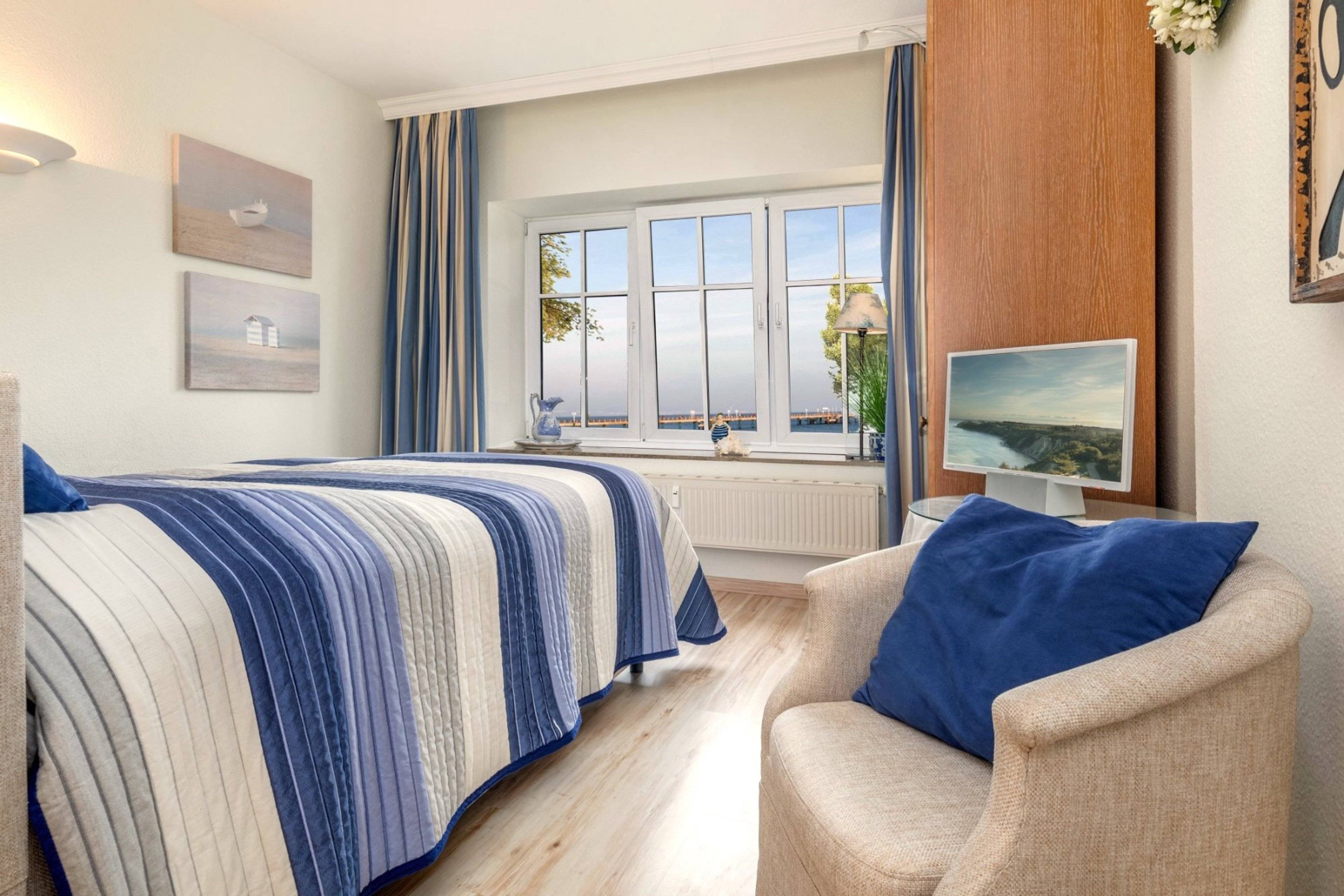 Diesen traumhaften Ausblick auf die Seebrücke und das Meer ermöglicht auch eines der beiden Schlafzimmer. Beide Schlafzimmer sind mit sehr bequemen Doppelbetten und einem eigenen Flachbildschirm ausgestattet.