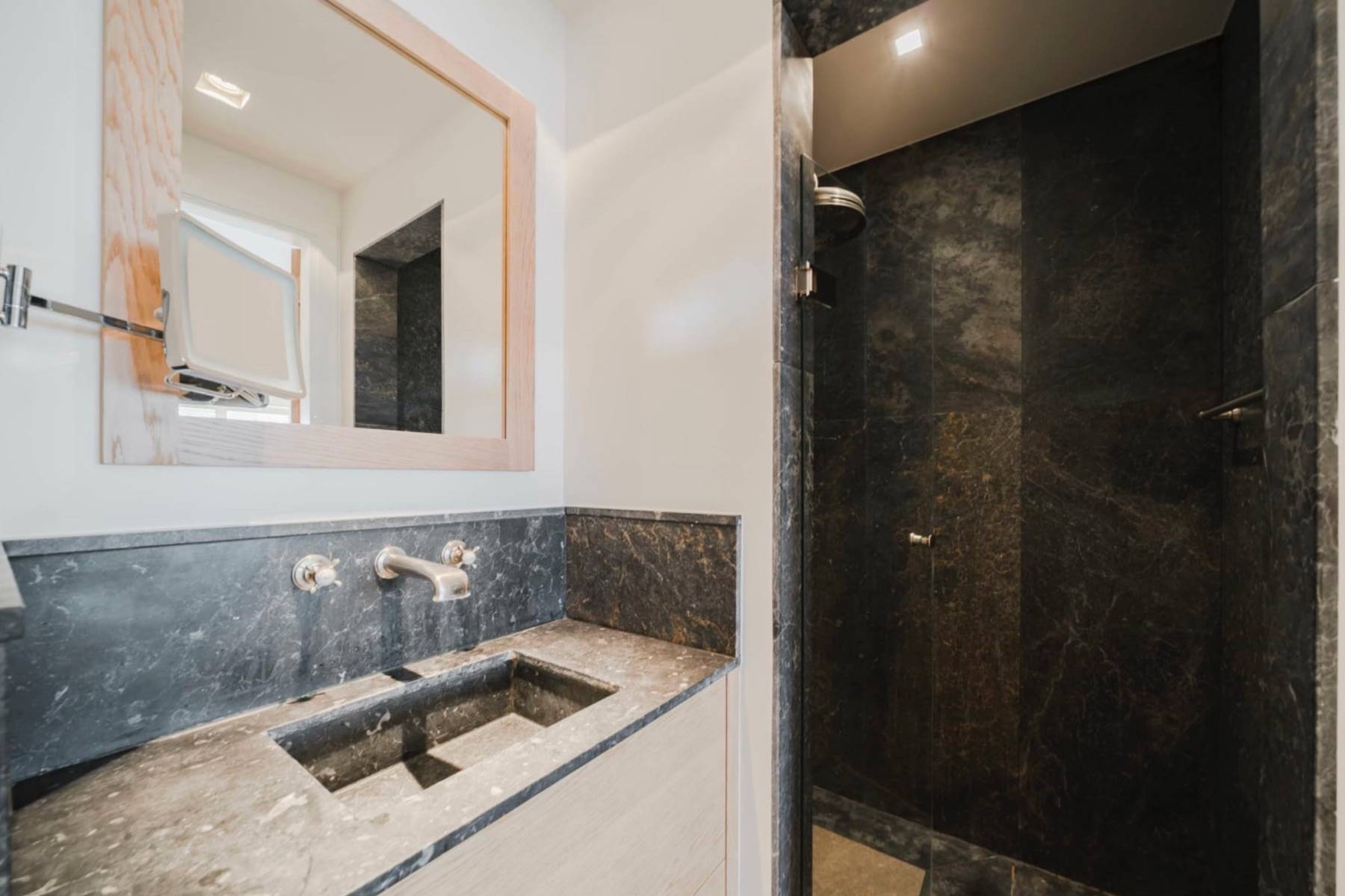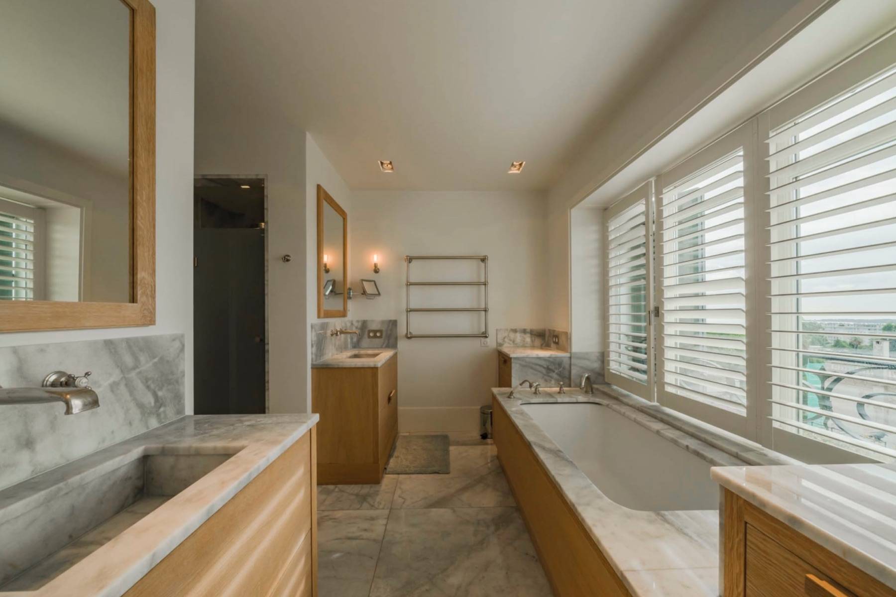 In den oberen Etagen befinden sich die modernen und hell eingerichteten 6 Schlafzimmer (das Hauptschlafzimmer hat einen eigenen begehbaren Kleiderschrank) und große Badezimmer, die mit einer Toilette, einer Dusche und einer separaten Badewanne ausgestattet sind.