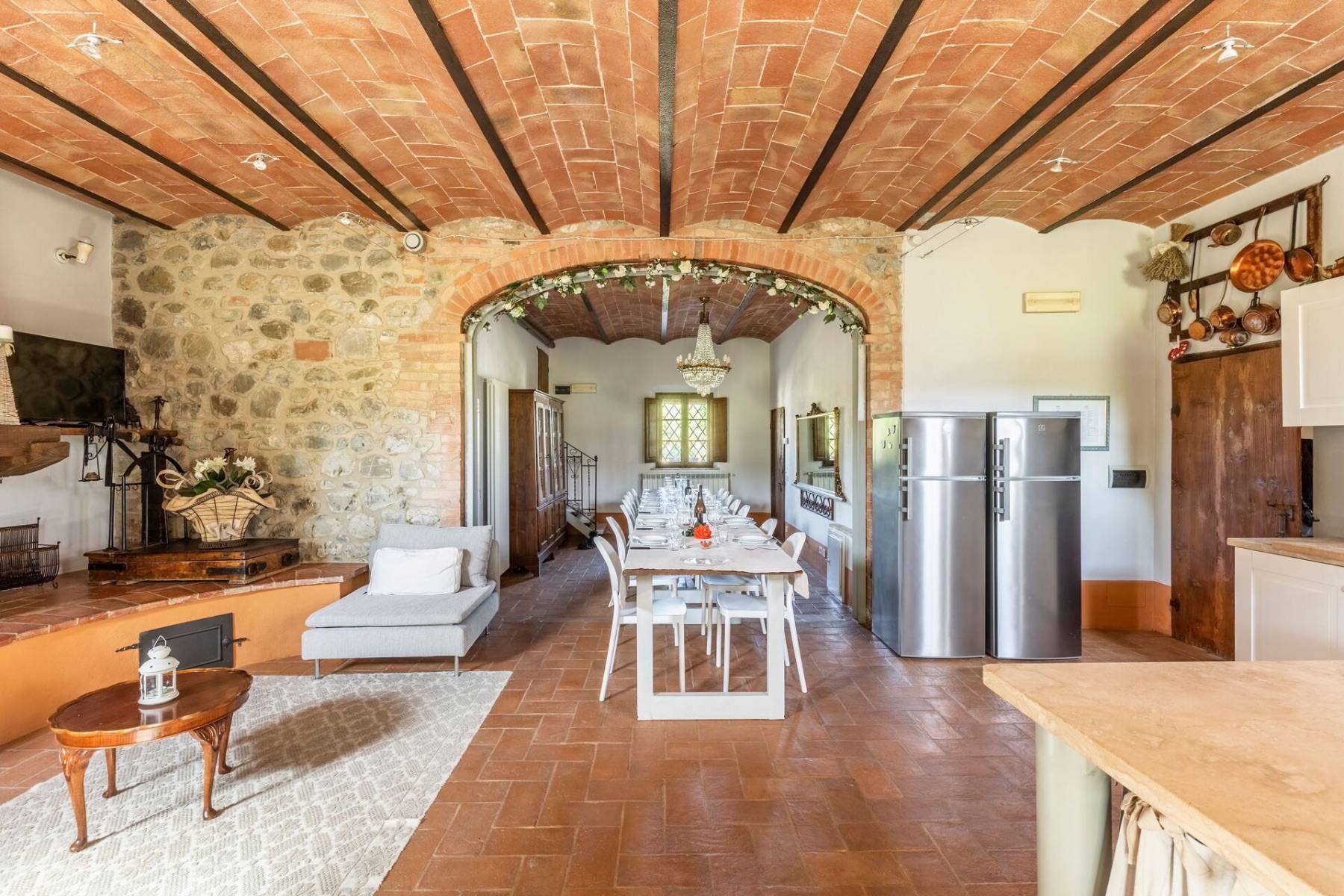 Das Einzelhaus wurde erst jüngst renoviert und kann aufgrund seiner komfortablen und stilvollen Einrichtung bis zu 16 Personen beherbergen, für die sechs Schlafzimmer und sechs Badezimmer zur Verfügung stehen. Bei derart vielen Personen sind die Geschmäcker sehr unterschiedlich. Individuelle Abendessen können dank mehrerer Küchen problemlos zubereitet werden.