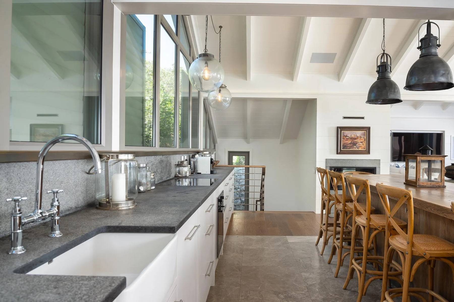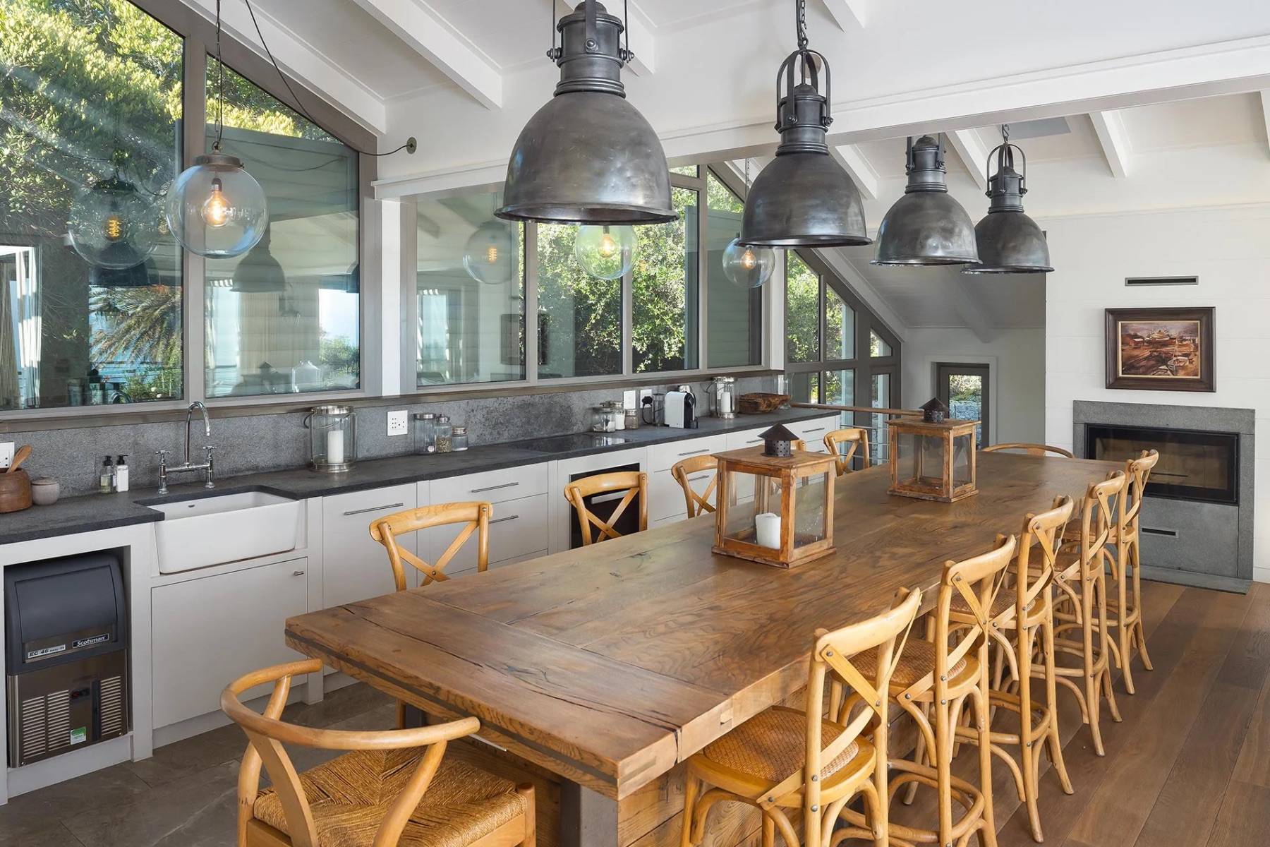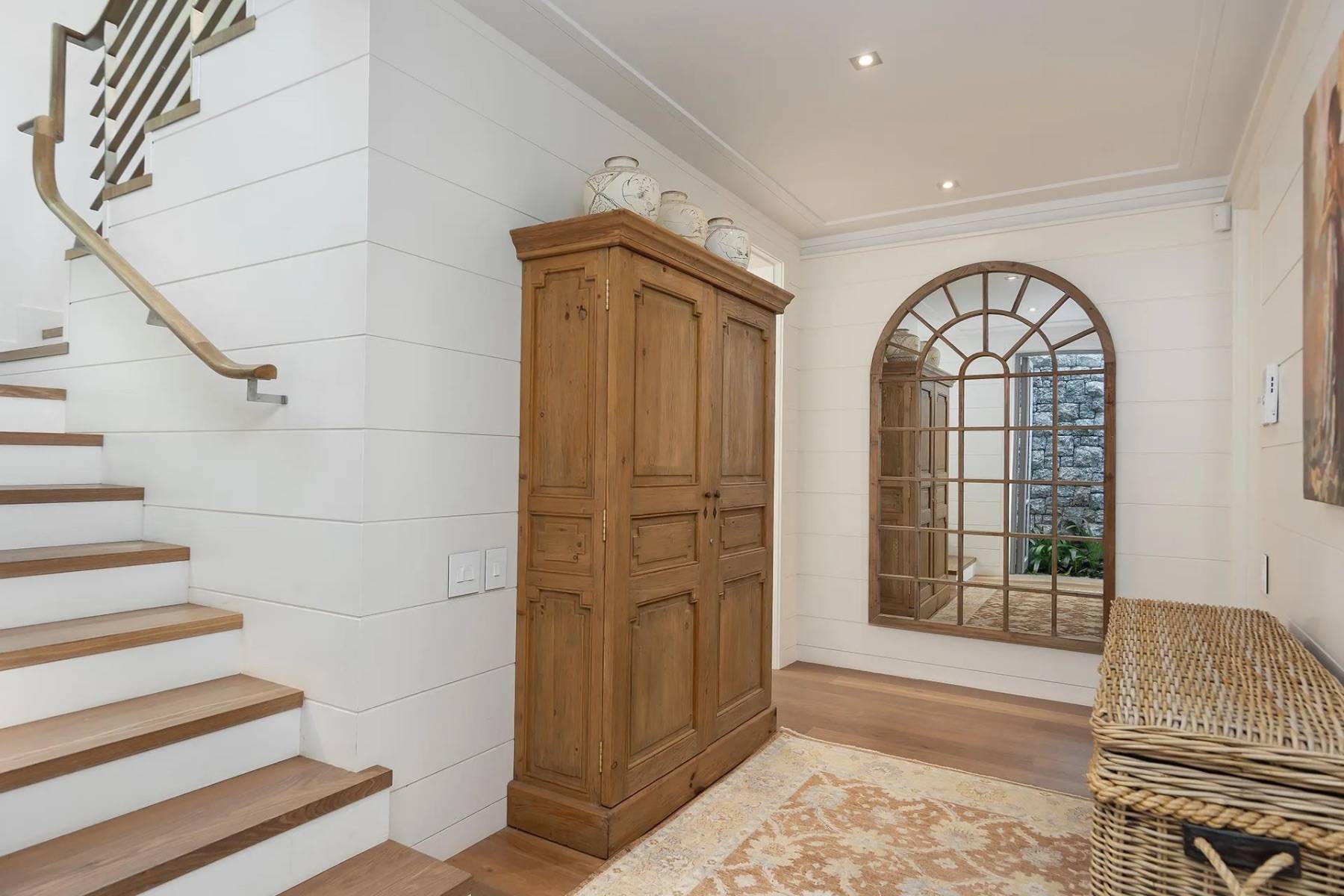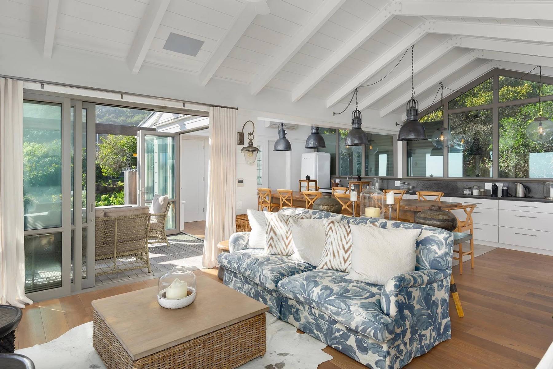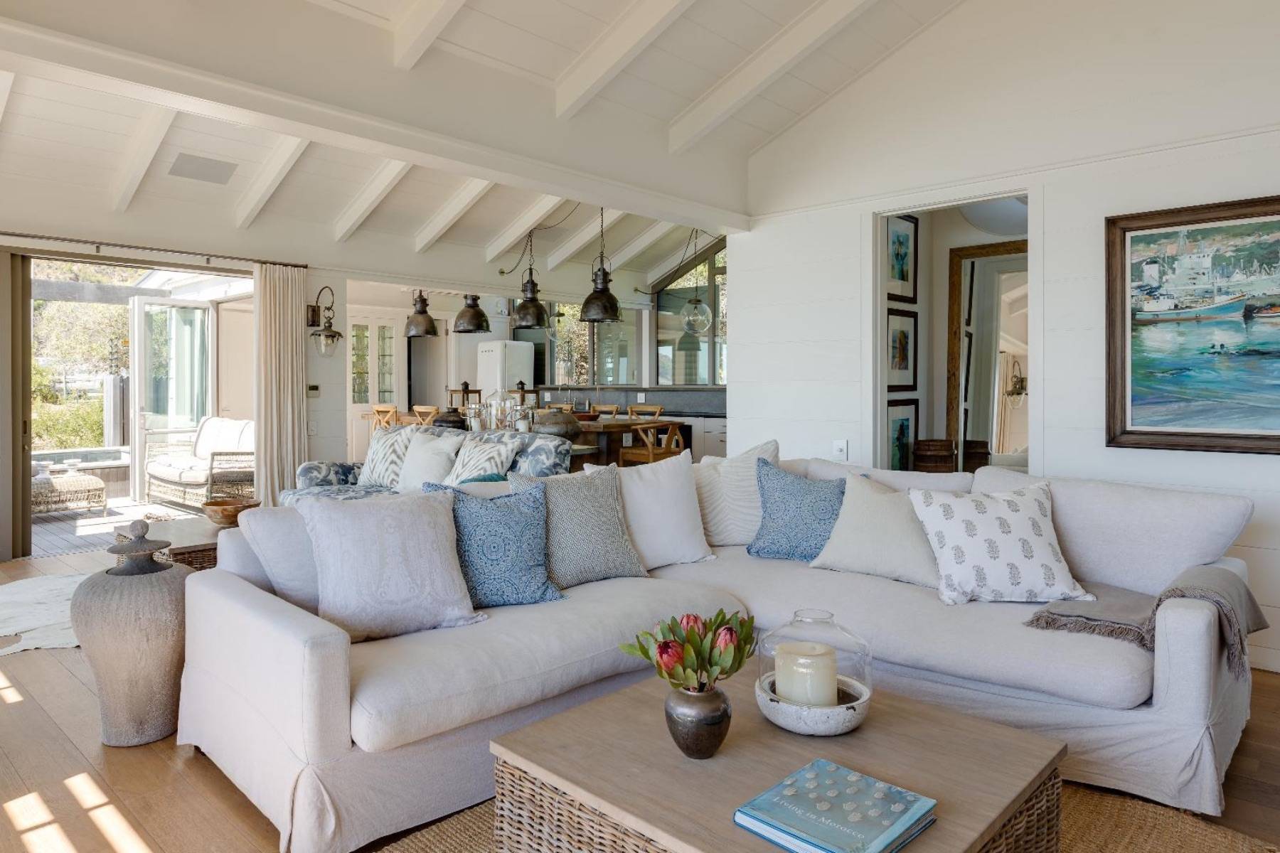 Die Villa verfügt über ein zeitgemäßes und attraktives Interieur, das stilistisch von den blauen Farben eines typischen Hamptons-Hauses beeinflusst wird. Das große und helle Wohnzimmer mit offener Küche und gemütlichem Essen bietet Blick auf den Atlantik, ebenso wie die Sonnen- / Lounge-Terrasse direkt am Wohnzimmer, wo Sie auch das Tauchbecken für eine angenehme Abkühlung nutzen können.