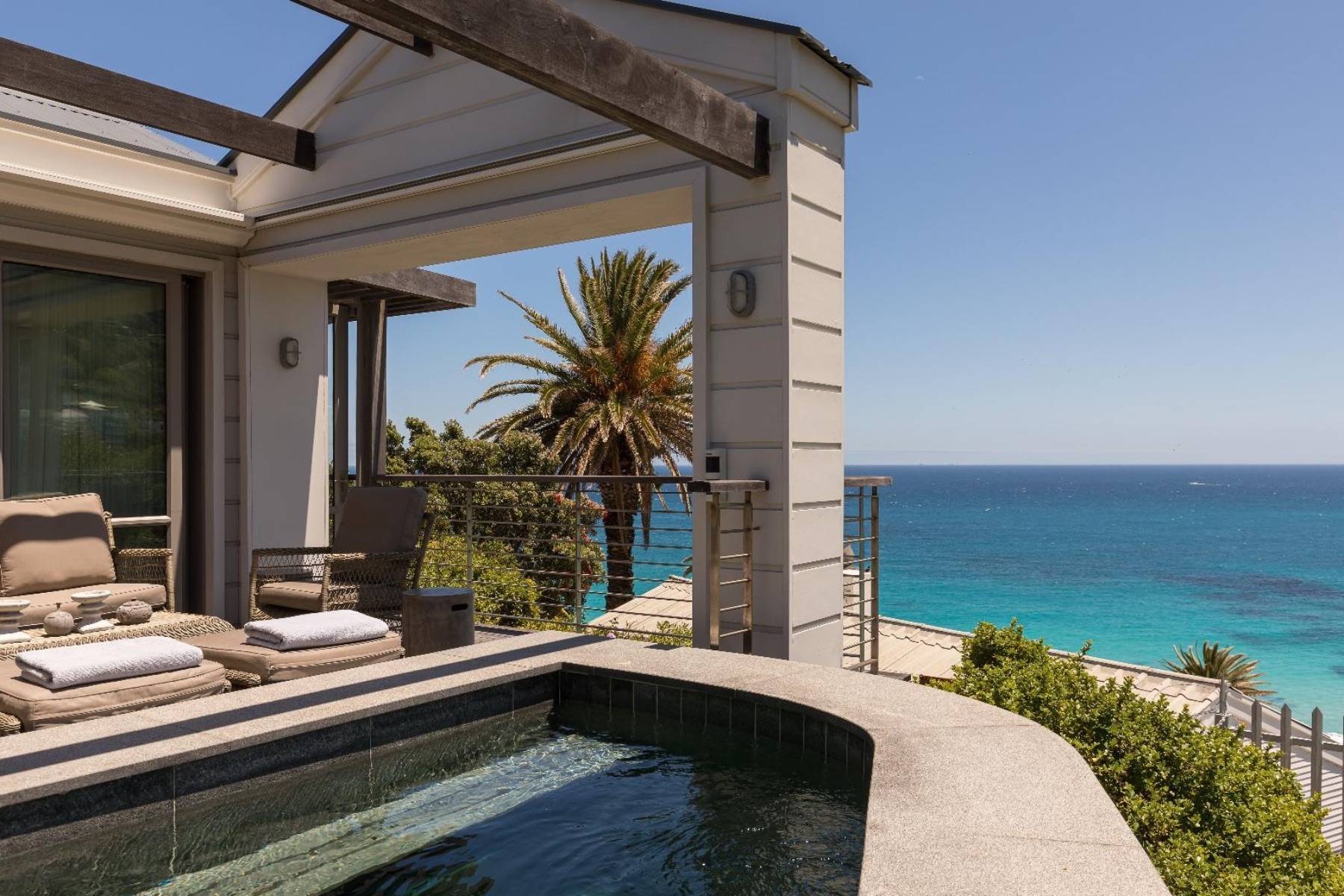 Dieser exklusive Bungalow liegt in fantastischer Lage an der wunderschönen Küste in Clifton/ Kapstadt. Herrlicher Blick auf den Atlantik inklusive.