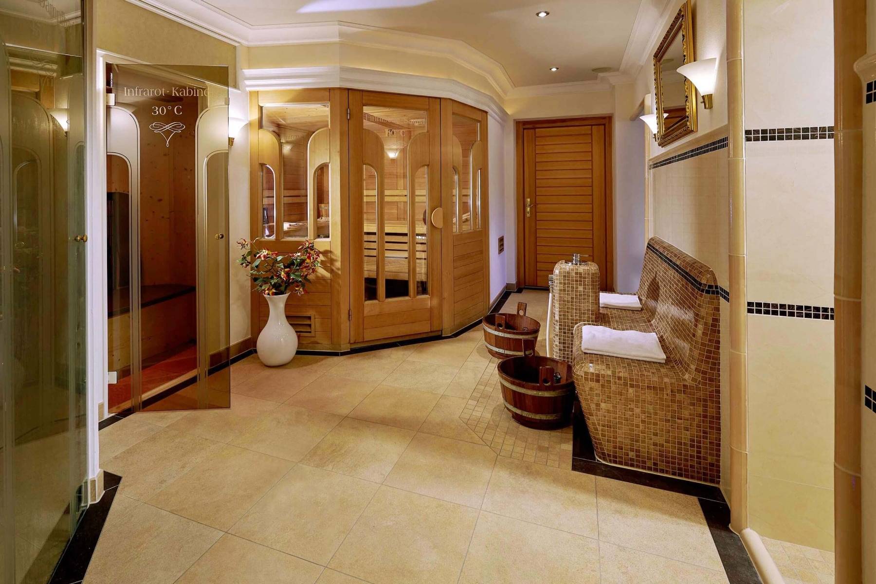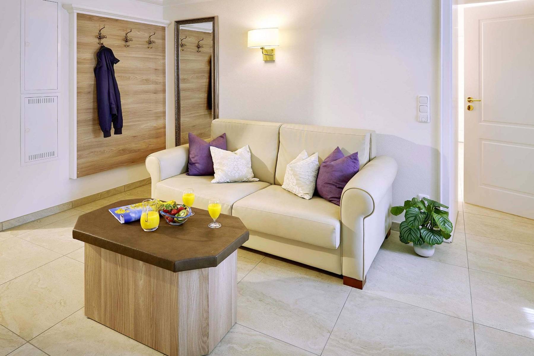 Handtücher, Bettwäsche, Geschirrtücher, Bügeleisen und Bügelbrett, WLAN, Nutzung des Saunabereichs mit finnischer Sauna, Aroma-Dampfbad und Infrarot-Kabine, Nutzung der großzügigen Terrasse und der großen Parkanlage mit Sonnenliegen sowie die Endreinigung sind inklusive.
