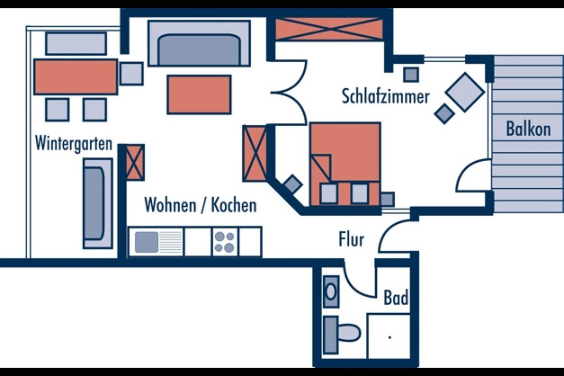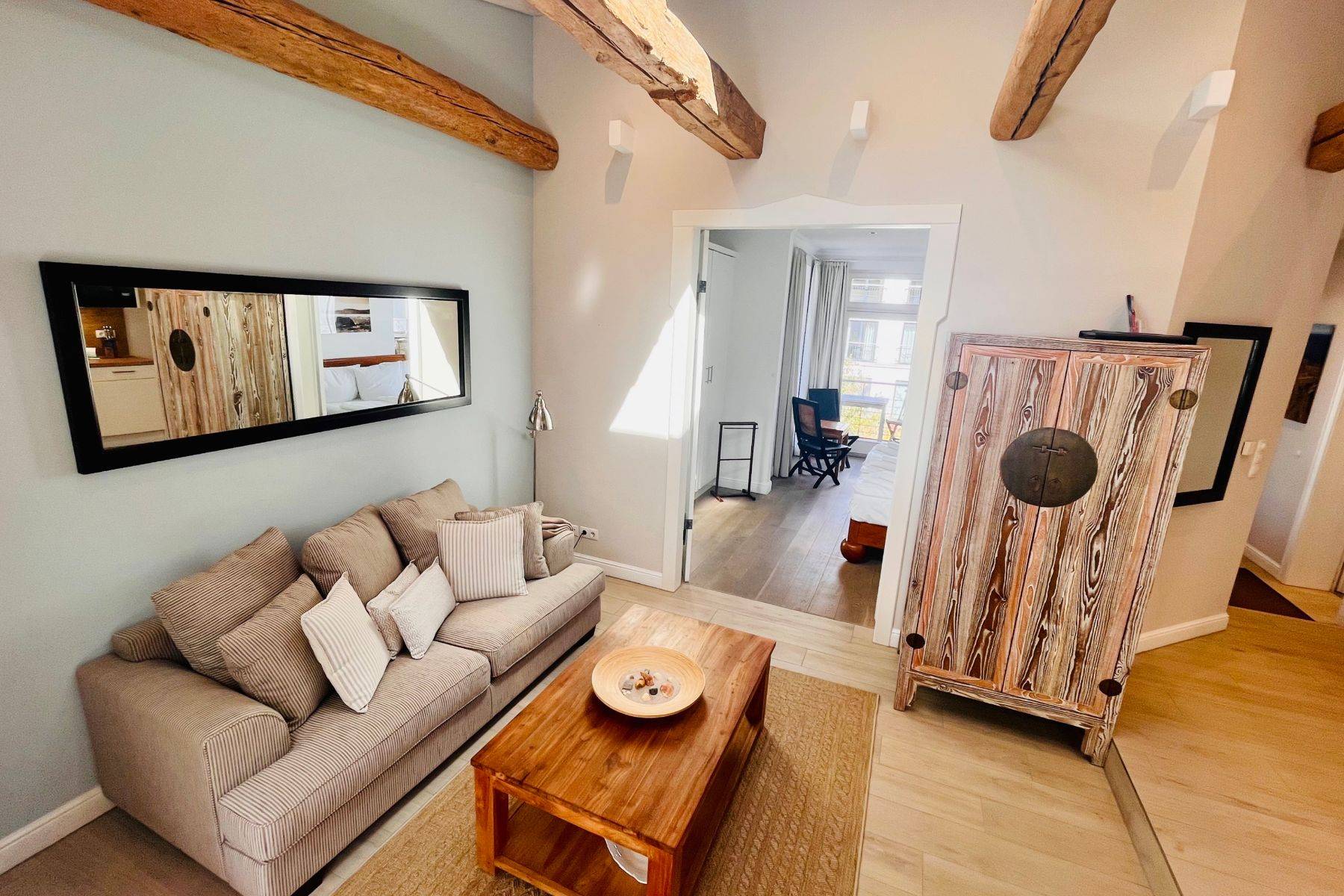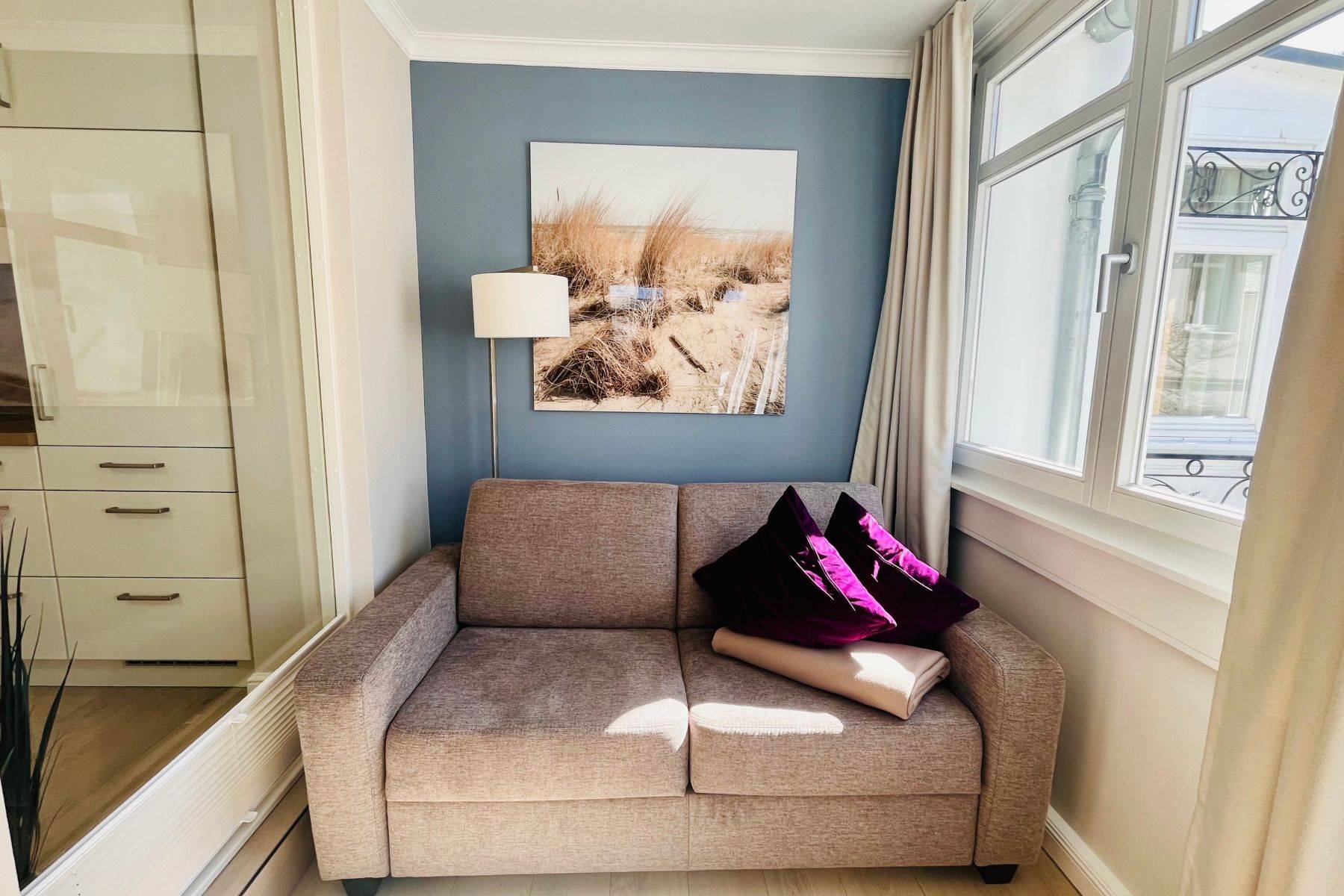 Für zusätzliche Gäste lässt sich die Loggia mit der ausziehbaren Doppelcouch durch einen Vorhang abtrennen. So verwandelt sich das Appartement Mönchgut in eine gemütliche Wohlfühlunterkunft auch für kleine Familien.