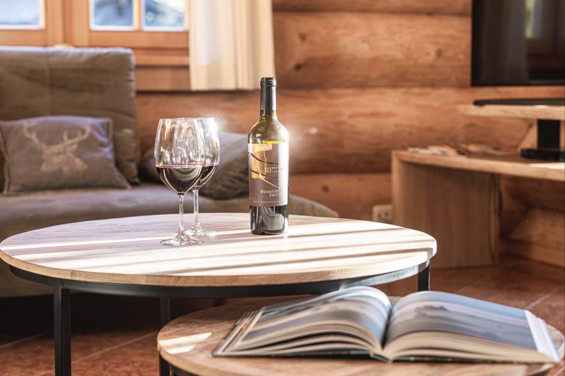 Naturnahe Bauweise, ein gehobenes Maß an Komfort und Behaglichkeit bilden eine einmalige Symbiose - machen sie es zu Ihrem Refugium! Aussen rustikale Almhütte, empfängt Sie innen zeitlose Eleganz mit traditionellen Elementen. Romantisch wird es im Schlafzimmer mit Himmelbett und antiquarischen Details. Eine kleine Sitzecke schaft Rückzugsraum. Dazu das großzügige en Suite Badezimmer mit Dampfdusche läßt kaum wünsche offen. Die beiden weiteren Doppelzimmer teilten sich ein Badezimmer, in dem zusätzlich noch Waschmaschine und Trockner zur Verfügung stehen. Der kombinierte Wohn-Ess und Kochbereich erstreckt sich über rund 40 qm und ist mit allem was das Herz begehrt ausgestattet. Ausreichend Sitzgelegenheiten stehen natrürlich zur Verfügung. Eine großzügige Südwestterrasse mit einem ganzjährig nutzbaren Jacuzzi / Outdoor Whirlpool lässt Sie entspannen. Oder beschließen Sie einen kalten Wintertag am gemütlich prasselnden Kaminfeuer.