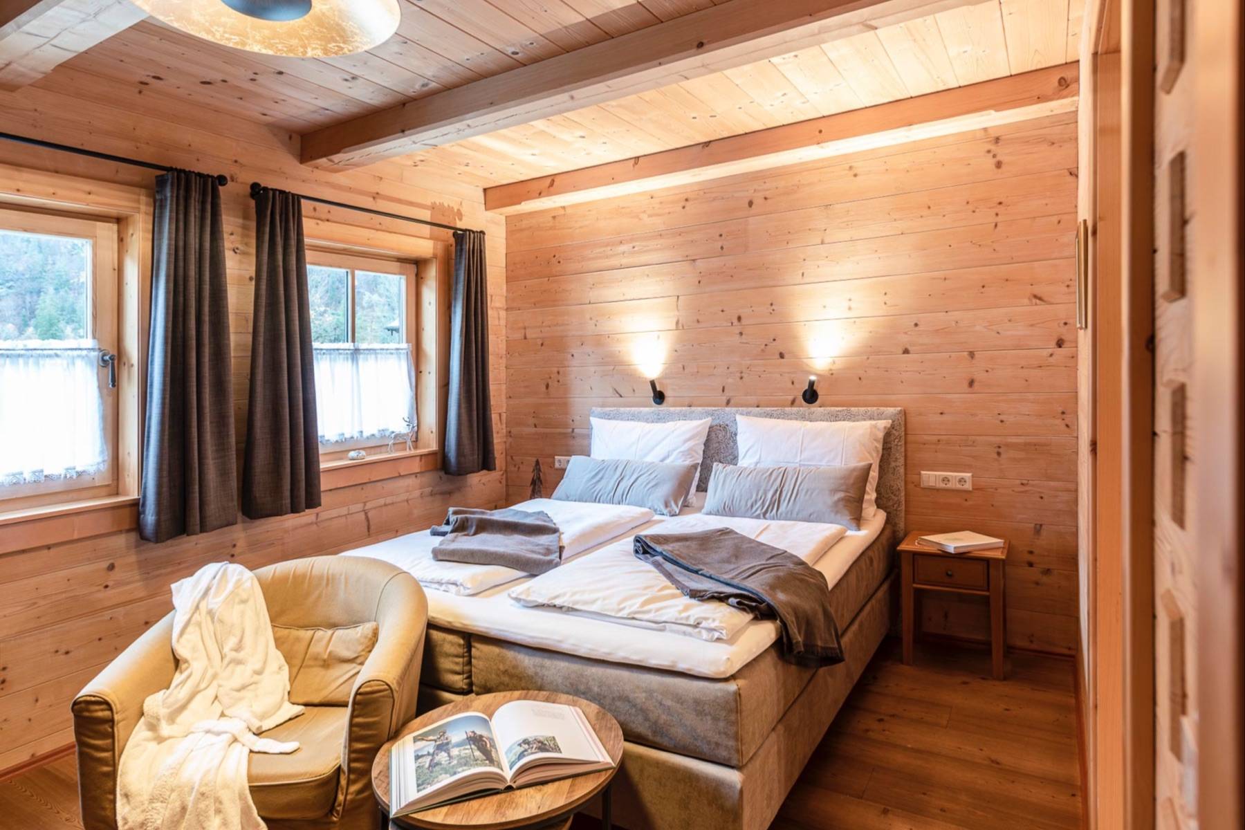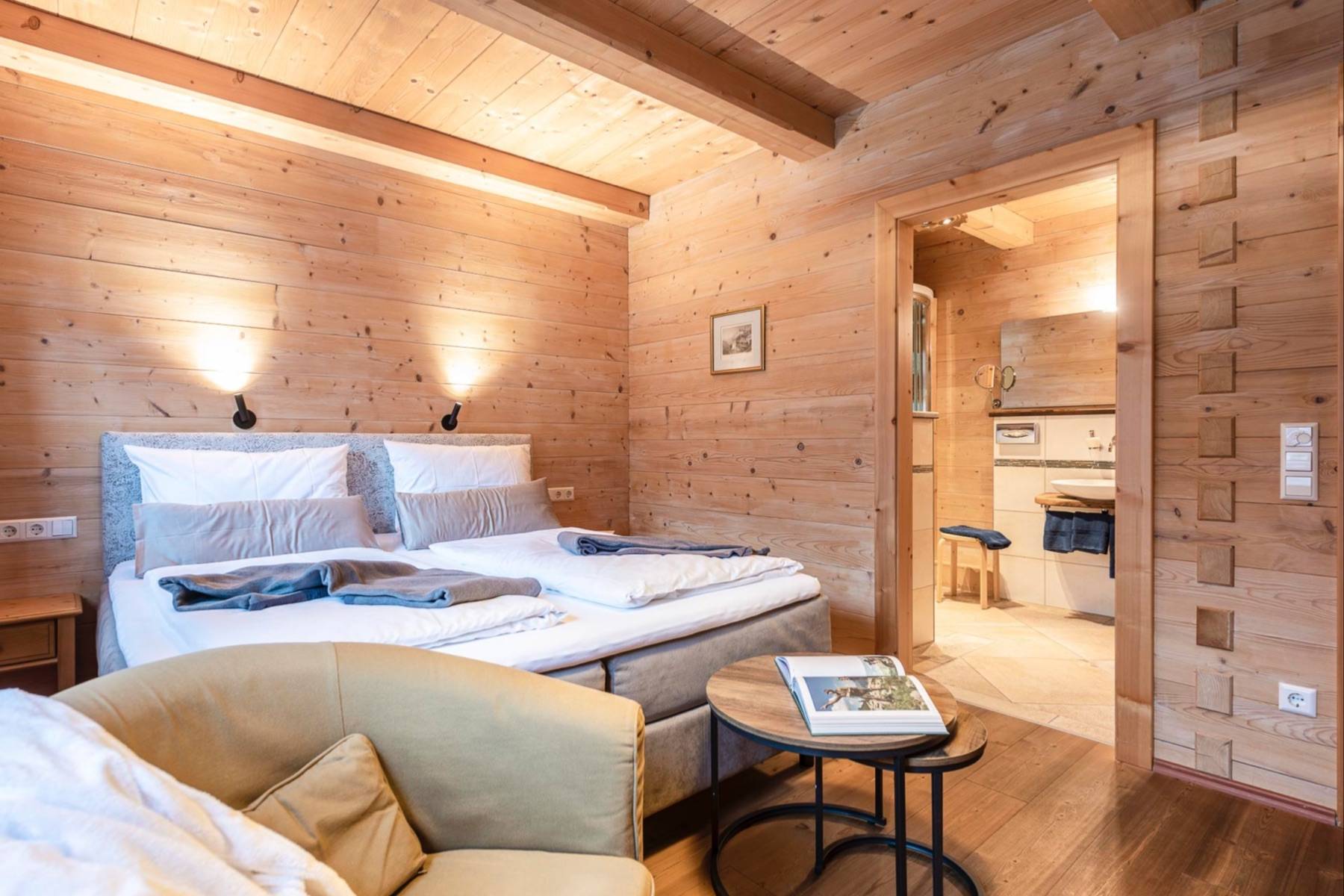 Machen sie es zu Ihrem Refugium! Von außen empfängt Sie eine rustikale Almhütte, innen eine zeitlose Eleganz mit traditionellen Elementen.
