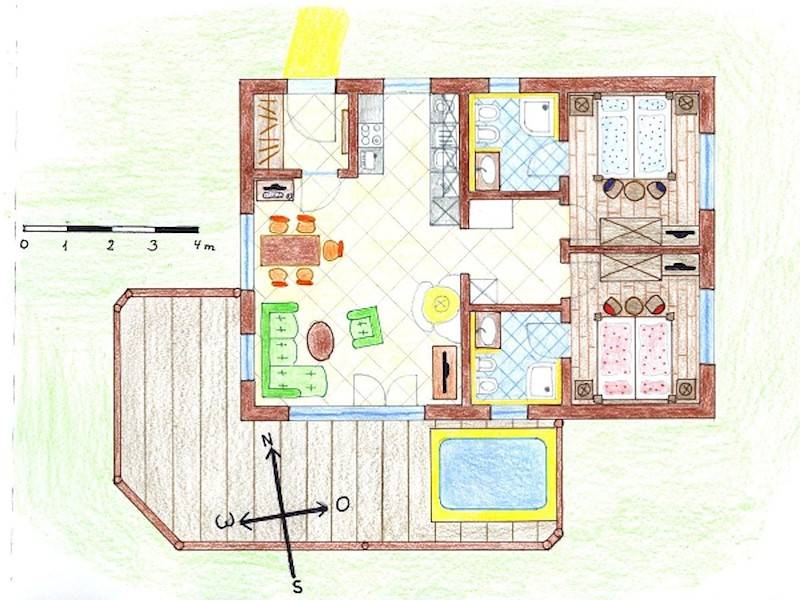 Betten: 4 Schlafräume: 2 Bäder: 2 85 m²