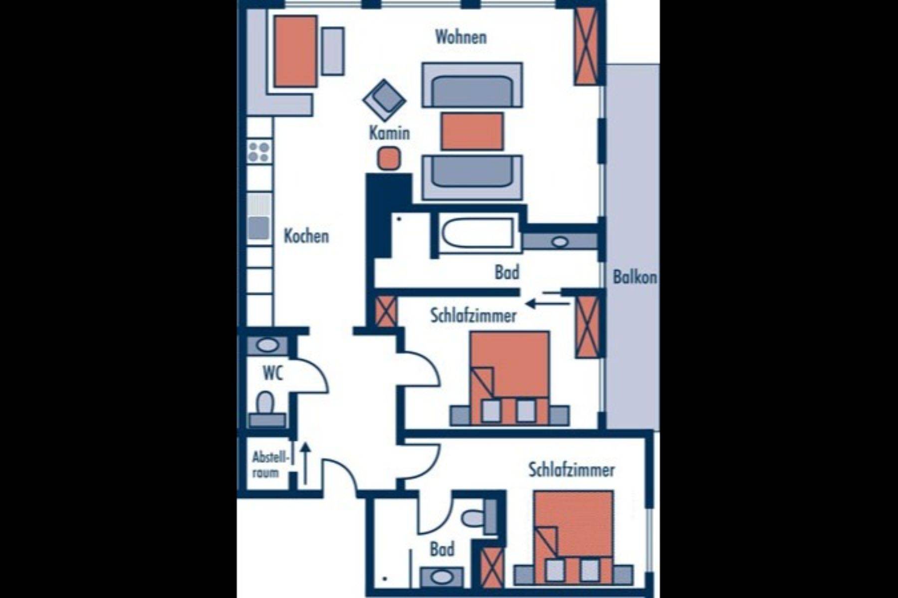 Betten: 4 • Schlafräume: 2 • Bäder: 2 • 98 m²