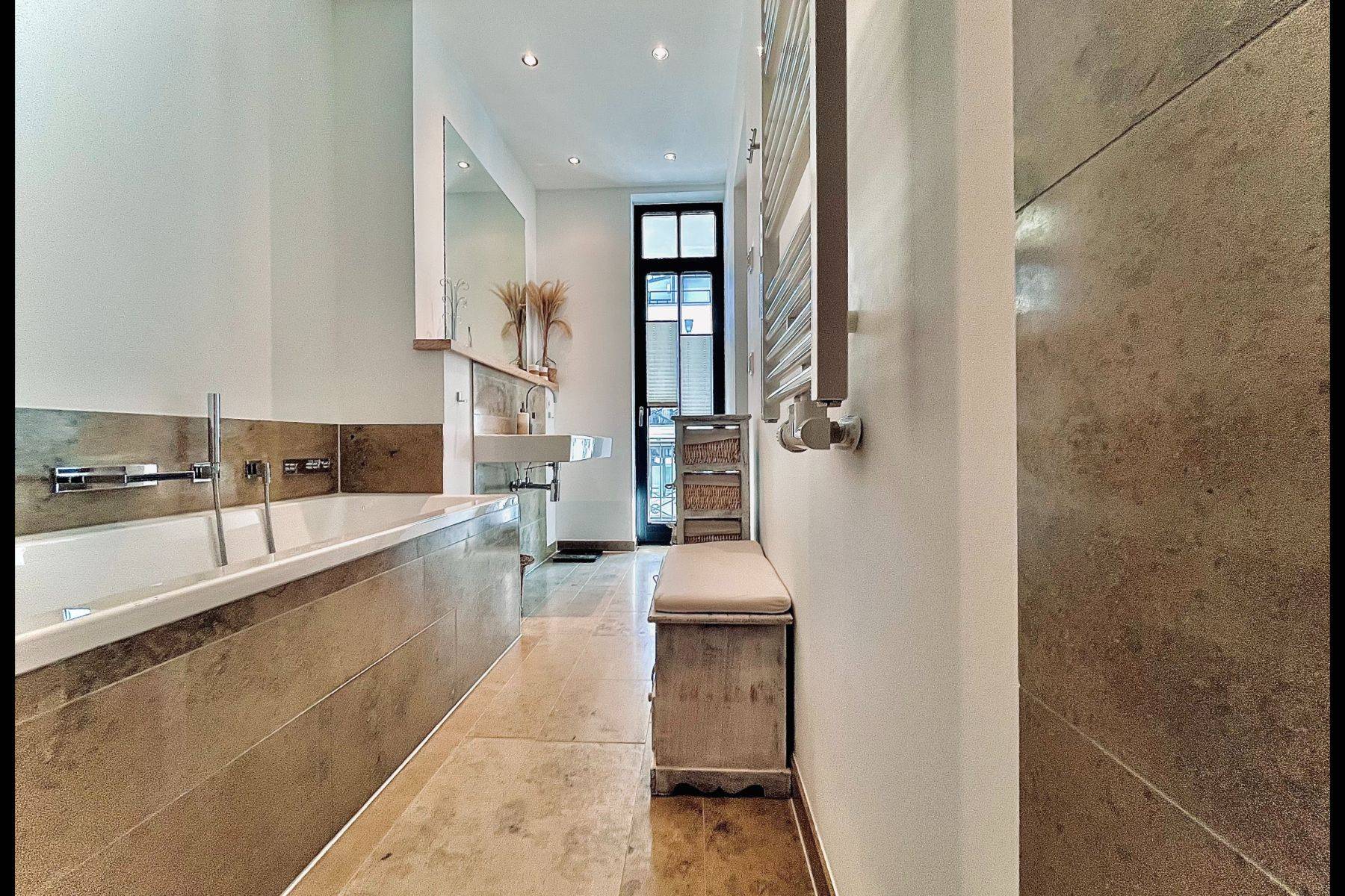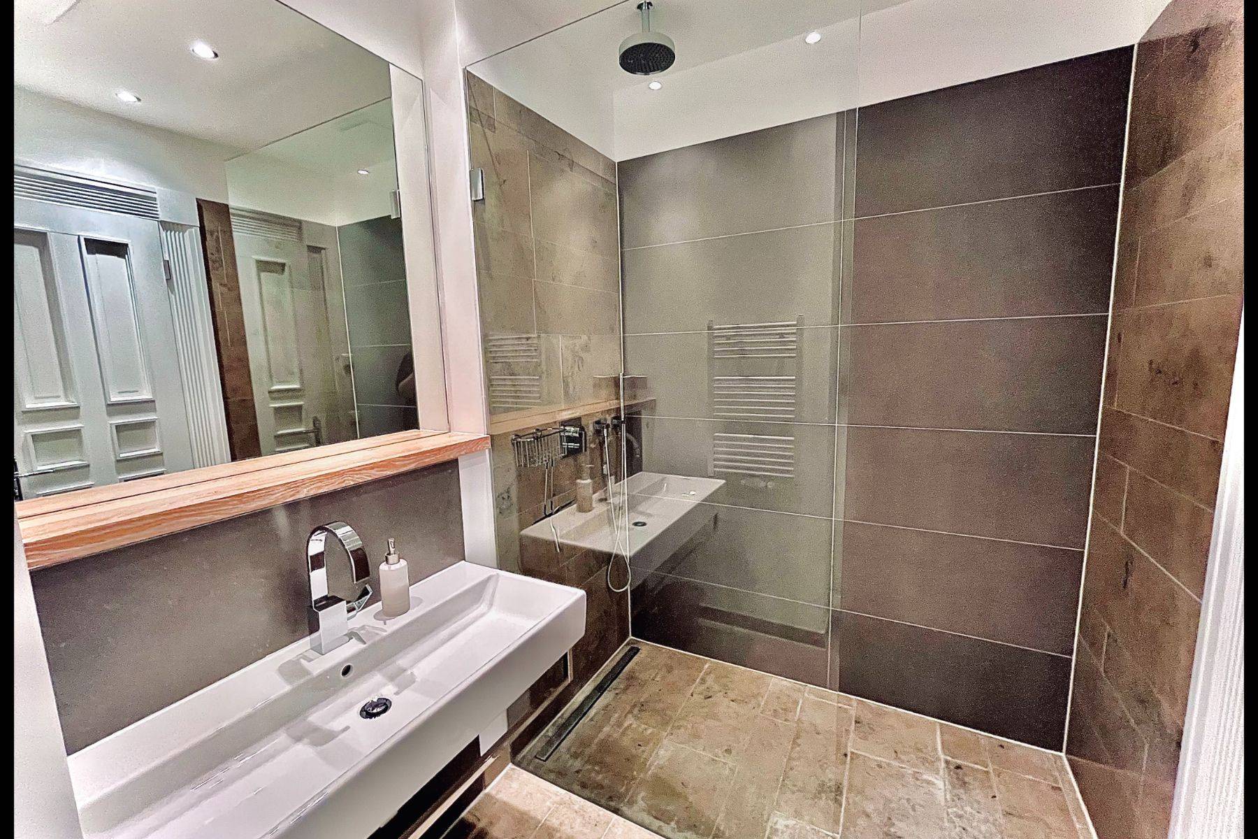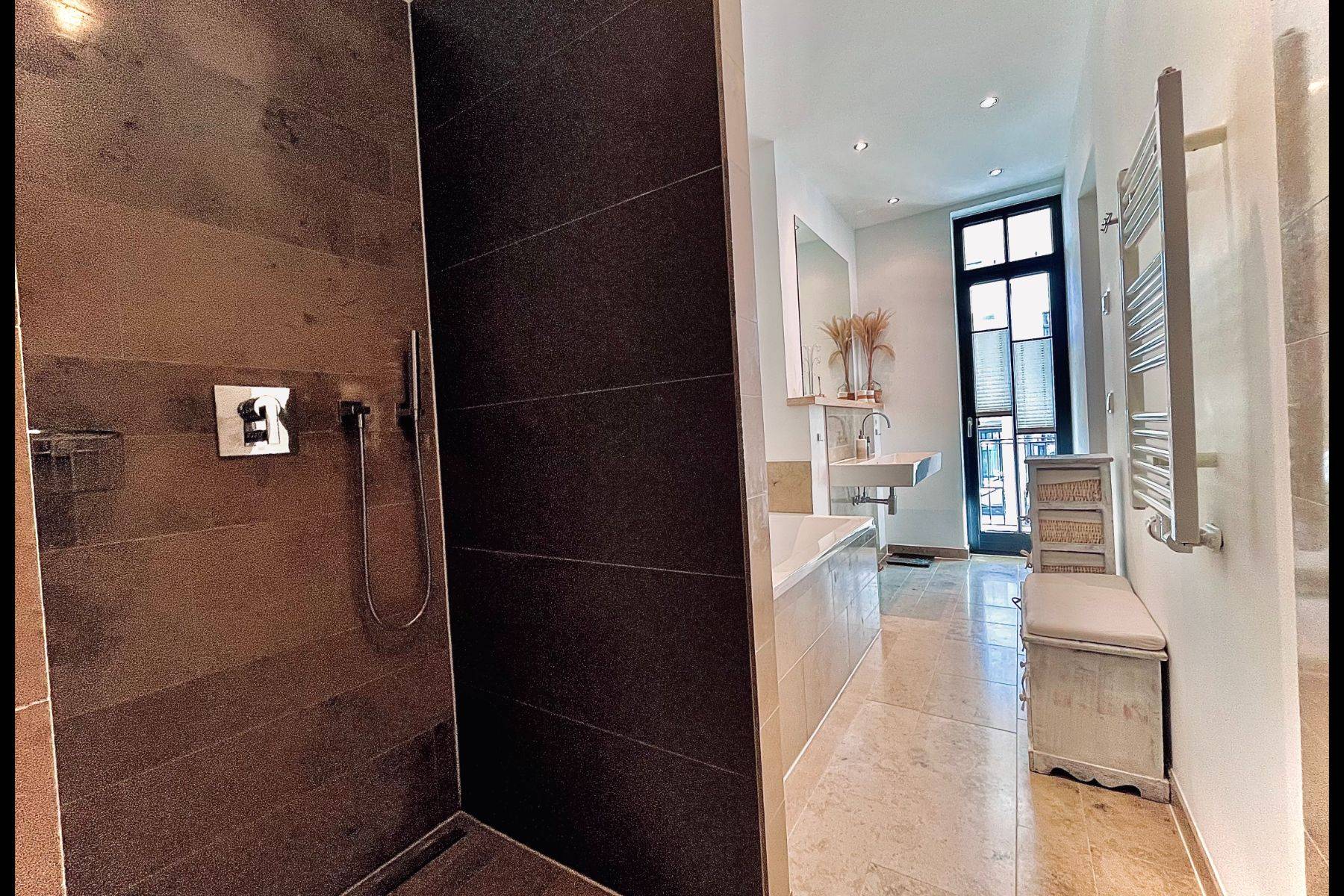 – ein Schlafzimmer mit Doppelbett (2 × 2 m) und Ensuitebad mit Dusche und Badewanne,