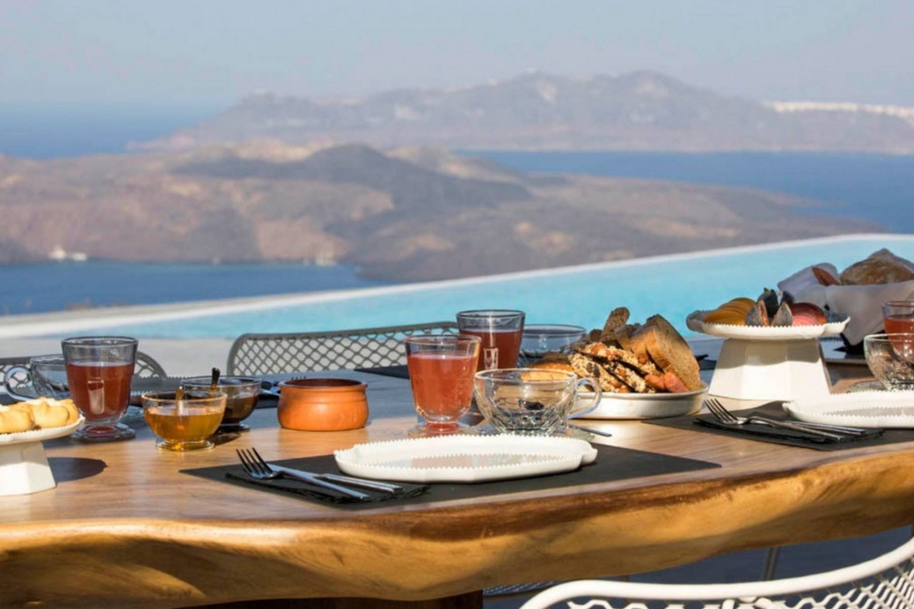 Die Villa Erosantorini auf der Insel Santorini ist ein traumhaftes Hideaway, die genügend Platz und Schlafmöglichkeiten für mehrere Generationen vorweisen kann.