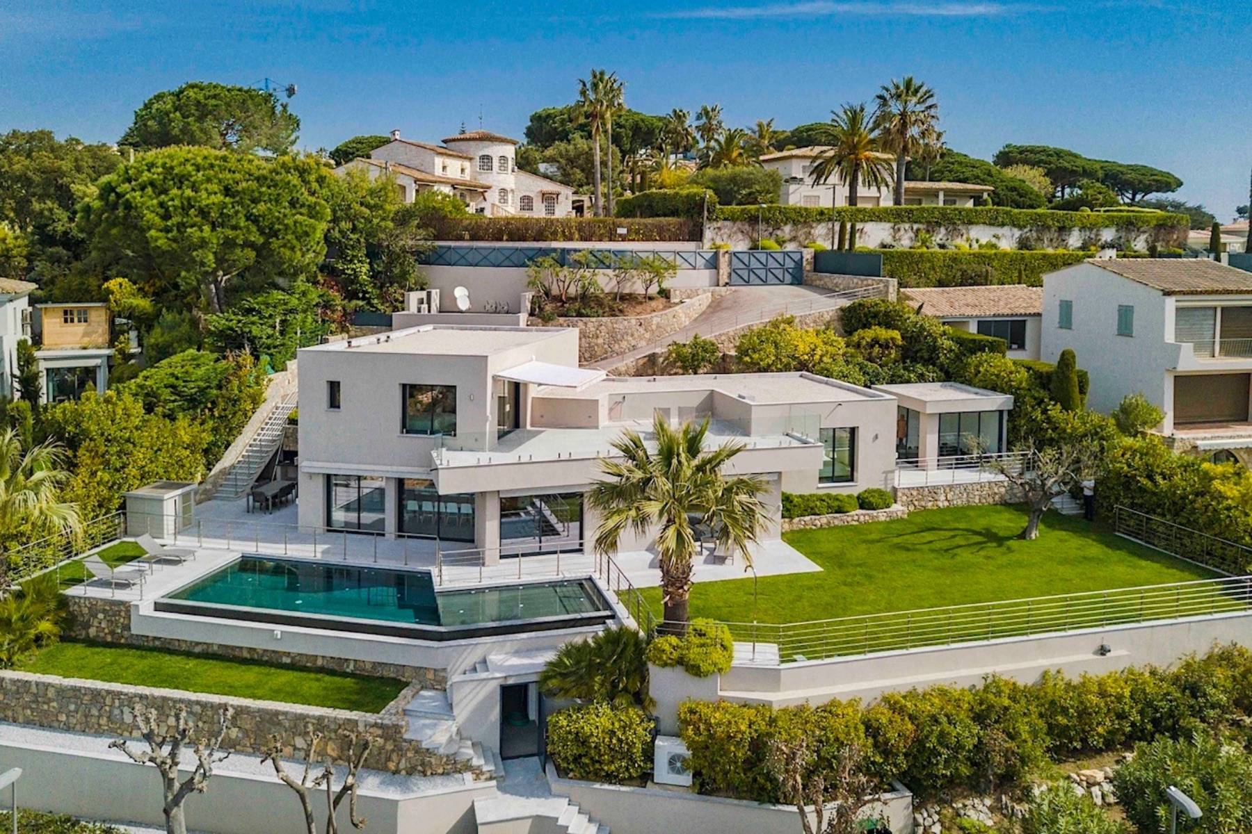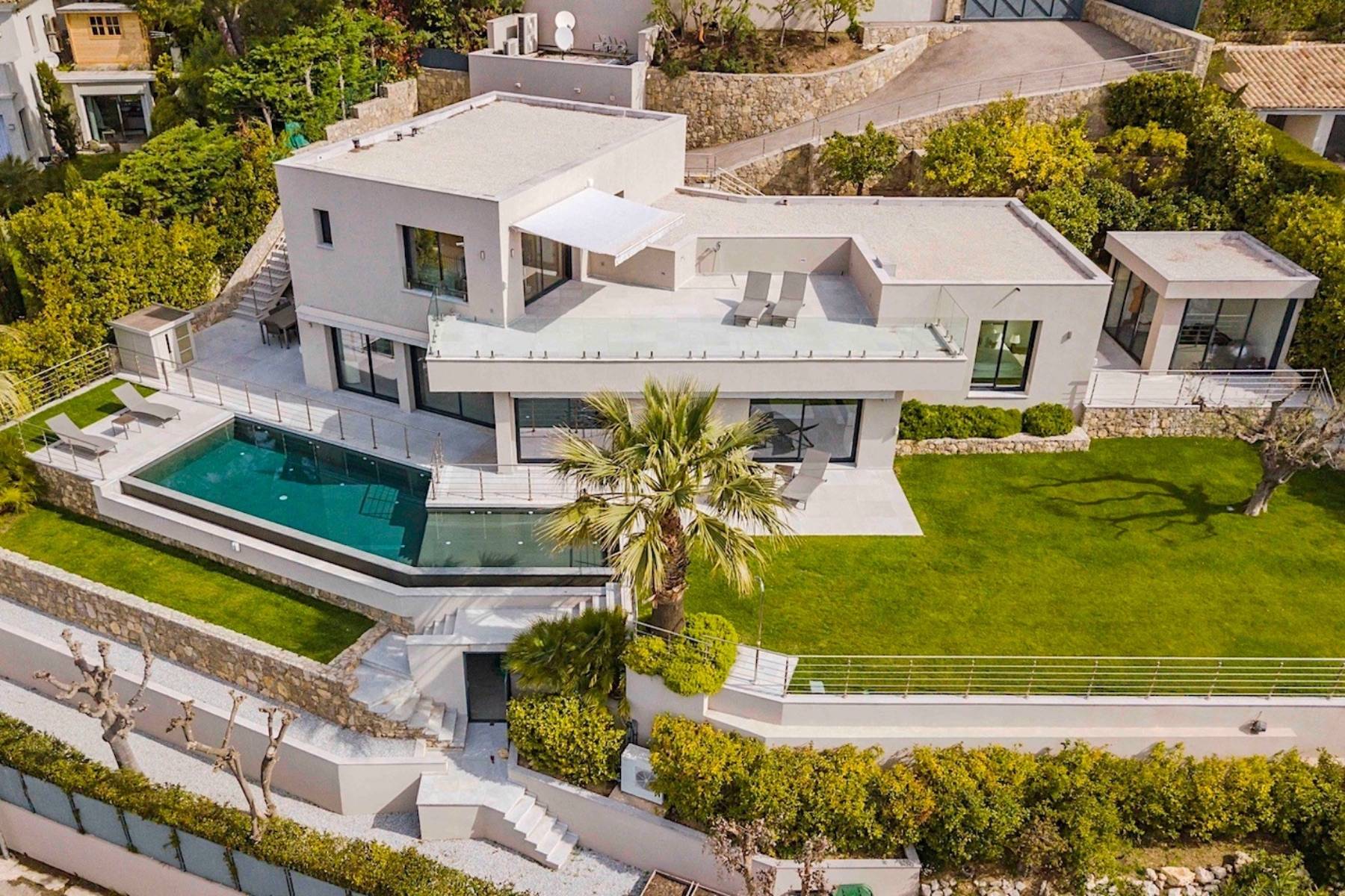 Entspannen Sie sich mit Ihrer Familie in dieser modernen Luxus Villa Pixie in Cannes mit traumhaften Meerblick und ausreichend Privatsphäre.