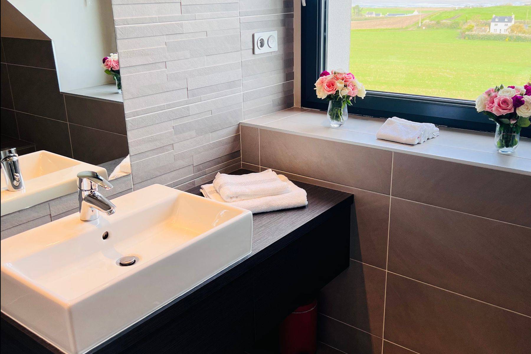 Die Villa Tante Alice in Goulven: Meerblick -Komfort Villa in Alleinlage mit Aufzug + Jacuzzi + Dampfbad und eingezäuntem Garten