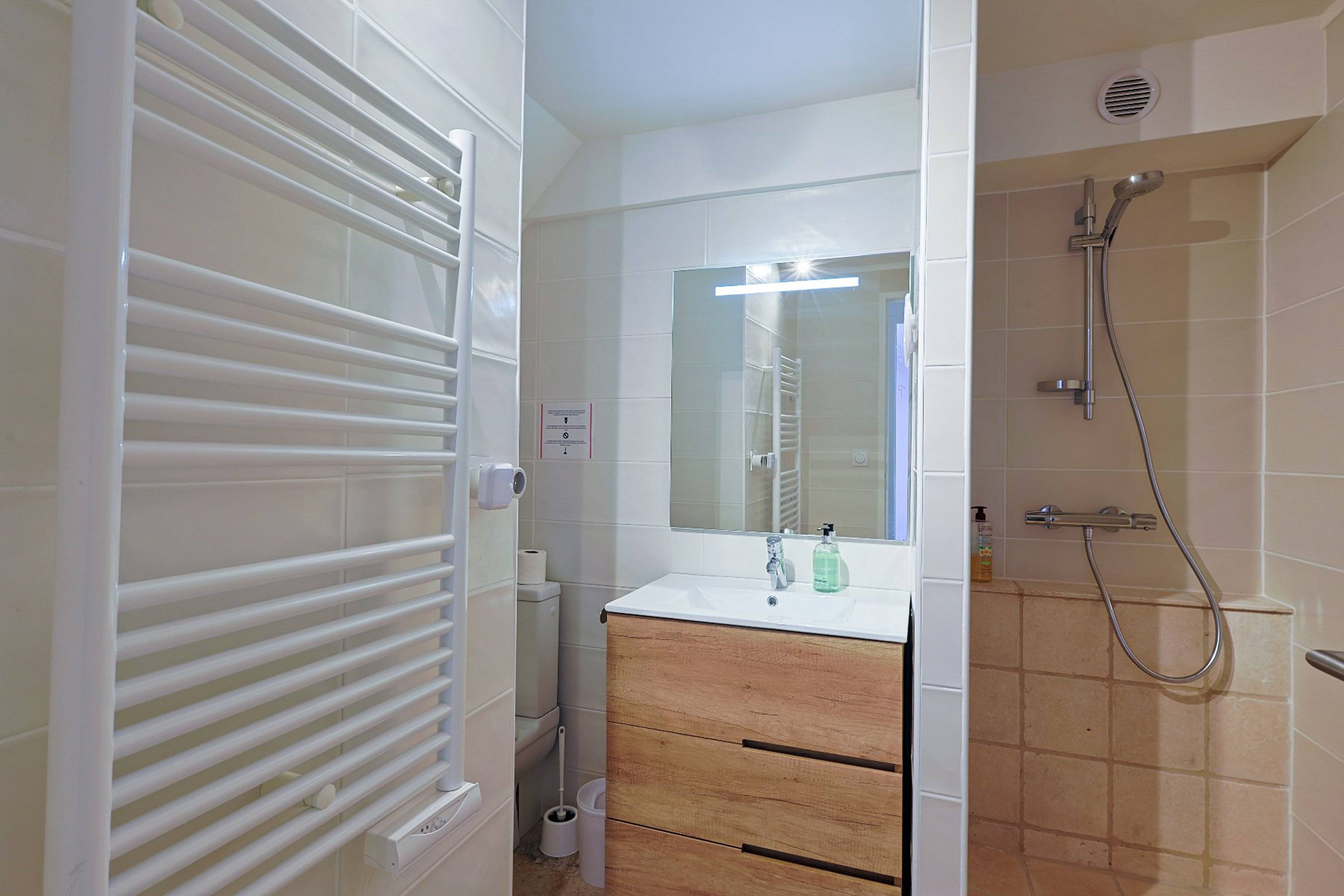 Duschvorlage Fenster Haartrockner Handtuch Spiegel Walk- In- Dusche Waschbecken WC