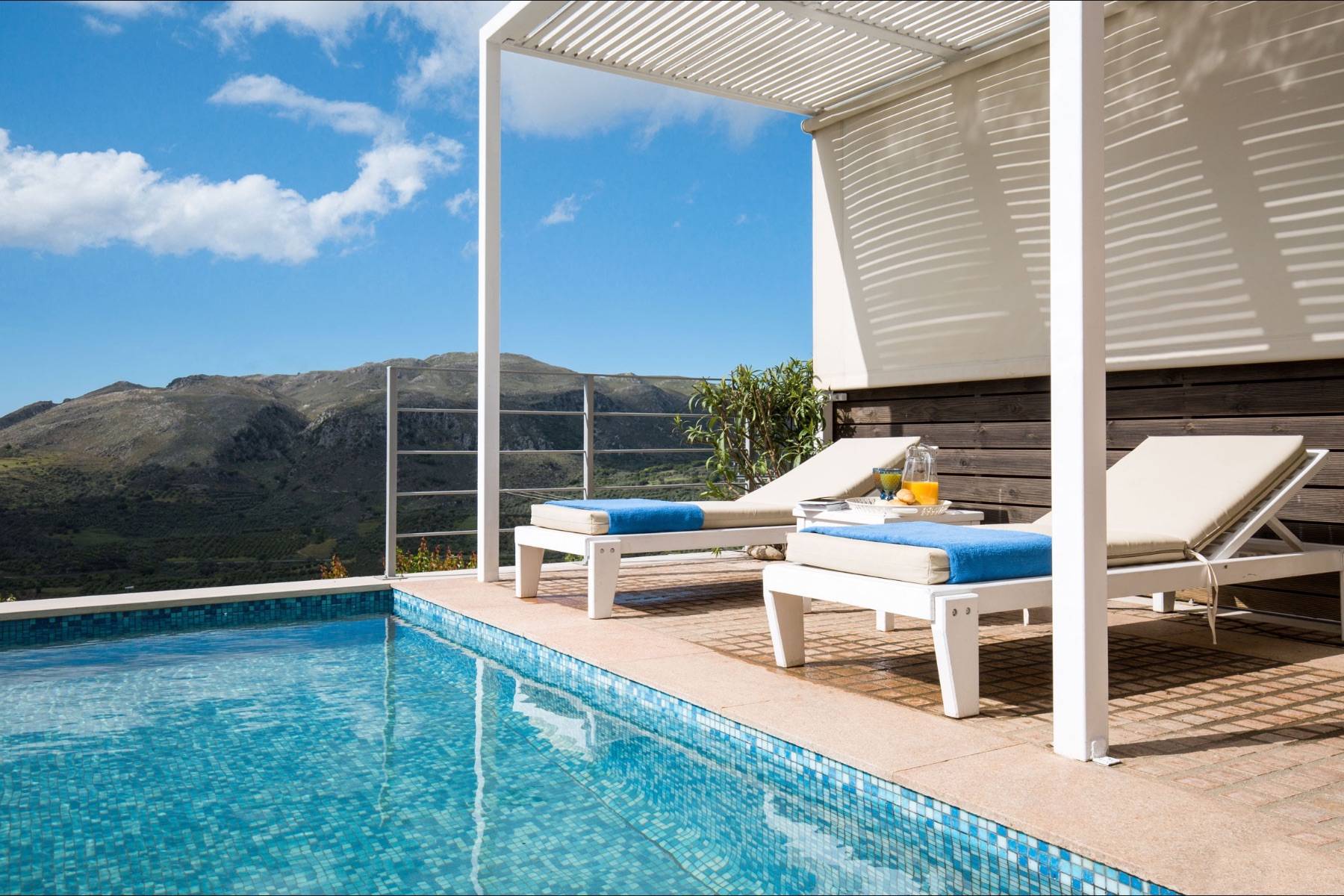 Die luxuriöse Villa Daphne auf der Insel Kreta mit privatem Pool, die so gestaltet wurde, dass ihre Gäste die einzigartige kretische Natur in absoluter Entspannung und Privatsphäre genießen können. Gelegen im Zentrum der Insel, in der Nähe der Kourtaliotiko-Schlucht, bietet die Villa Ruhe und Erholung mit Pool, Garten und Zitronenbäumen sowie einem weiten Blick auf die Berge und das Meer. Sorgfältig entworfen für einen ganzjährigen Aufenthalt – ideal für alle, die eine Auszeit auf dem Land suchen und die Ruhe der kretischen Berge und Schluchten sowie das blaue Wasser des Mittelmeers genießen möchten.