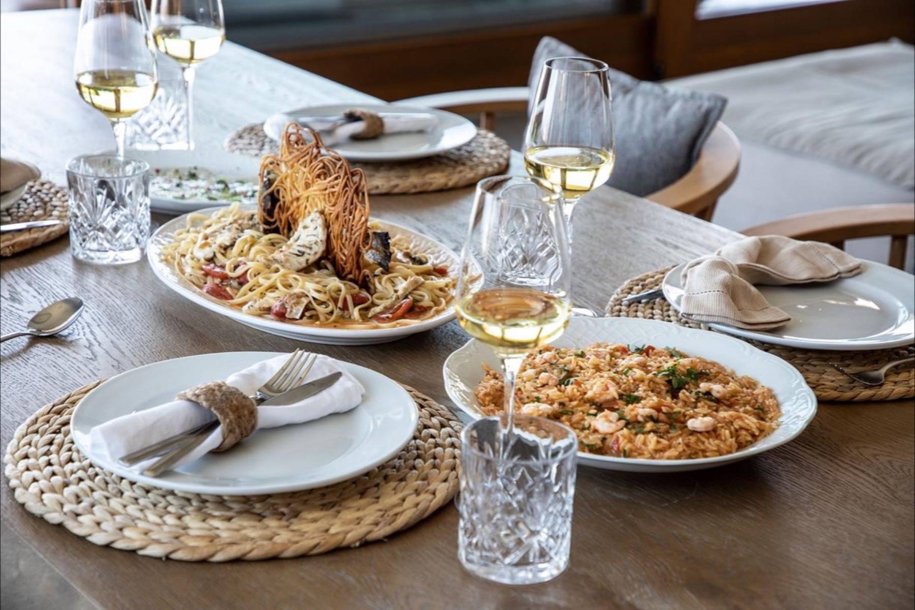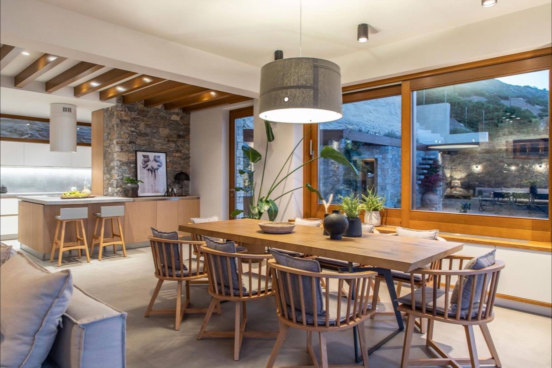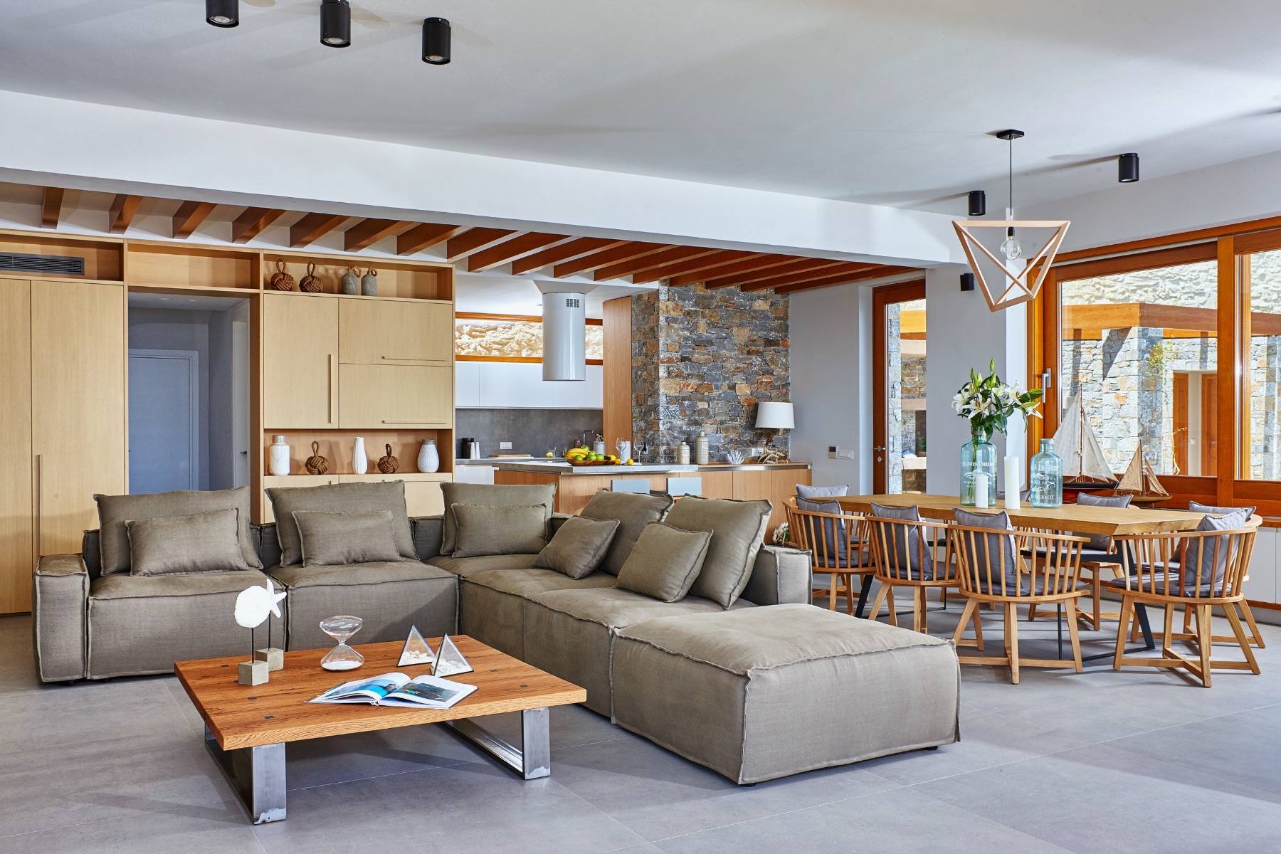 Im Erdgeschoss befinden sich die Wohnbereiche der Villa, modern und auf bestem Niveau. Das Wohnzimmer mit Stereo bietet mit grossen Fensterfronten einen direkten Blick auf das Meer und geht offen in den Speisebereich über und zur bestens ausgestatteten Küche. Man gelangt von hier auch in den wunderbar angelegten Aussenbereich mit Infinity Pool.