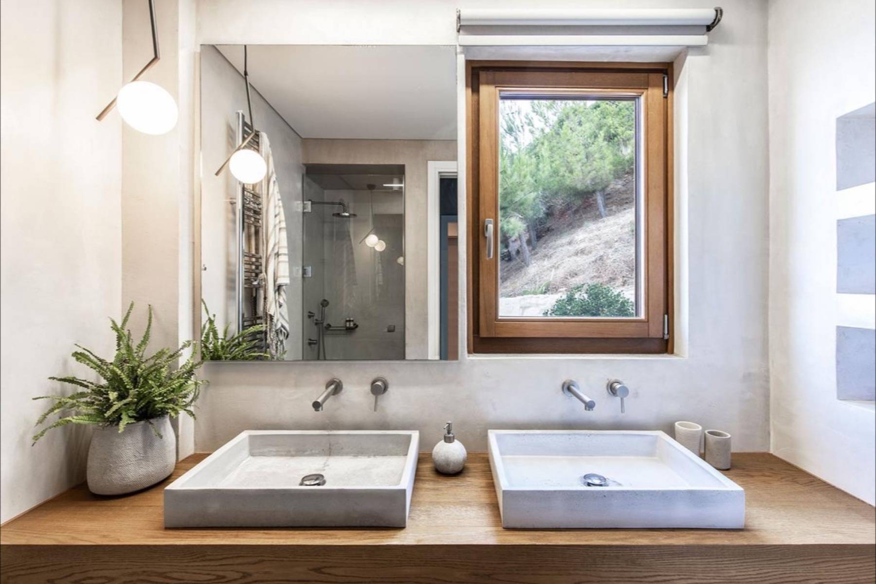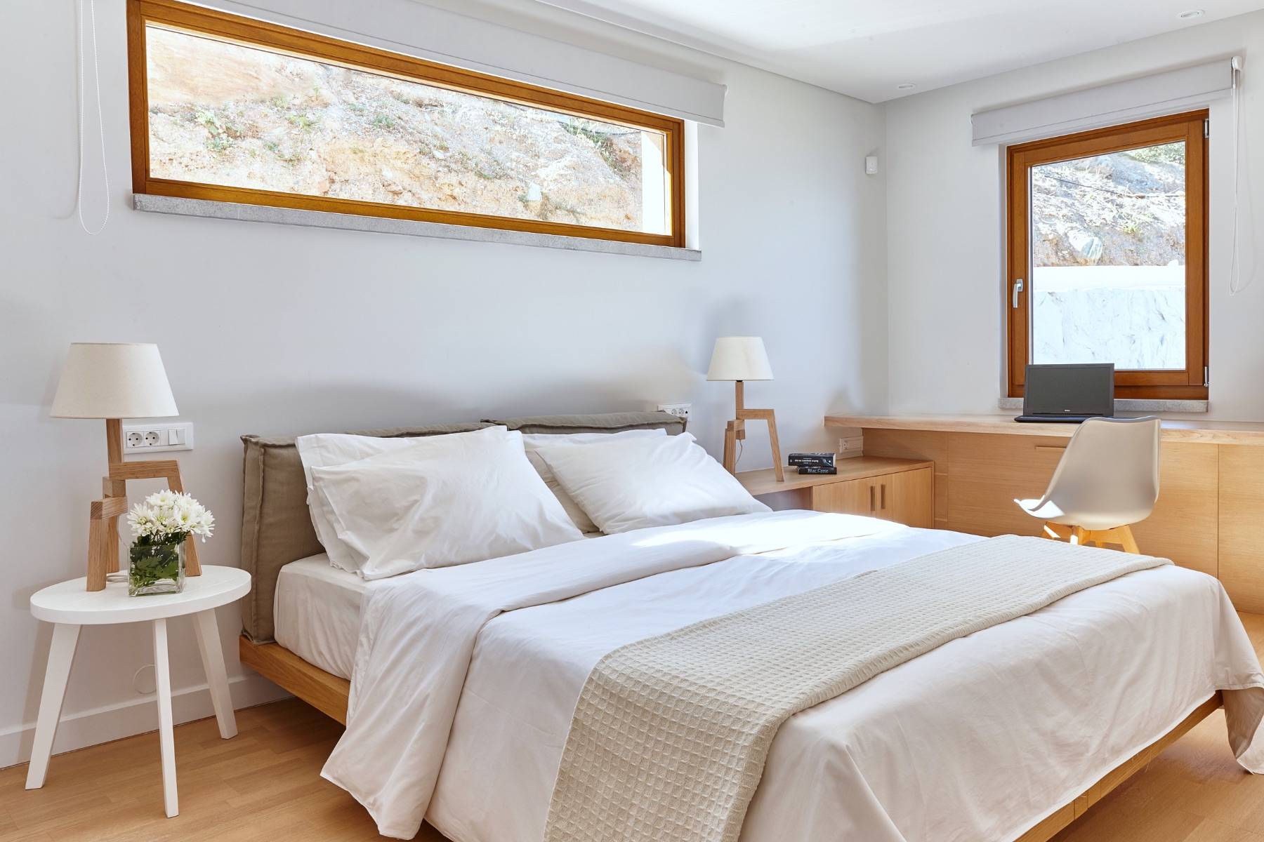 Im ersten Stock gibt es ein traumhaftes Master-Schlafzimmer mit Ensuite Badezimmer mit Wanne mit Hydromassage, wobei man sowohl vom Schlafzimmer als auch vom Bad aus stets einen traumhaften Blick auf das Meer geniesst. Darüber hinaus gibt es im ersten Stock noch zwei weitere Doppelschlafzimmer, die sich ein Badezimmer mit Dusche teilen. Alle Schlafzimmer sind mit natürlichen CocoMat Latex-Matratzen ausgestattet, um höchsten Schlafcomfort zu gewährleisten.