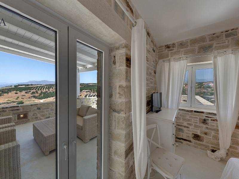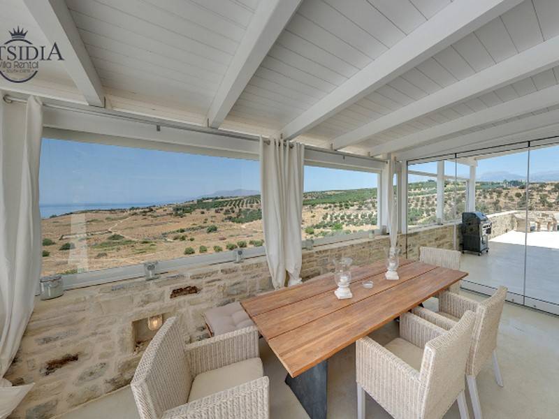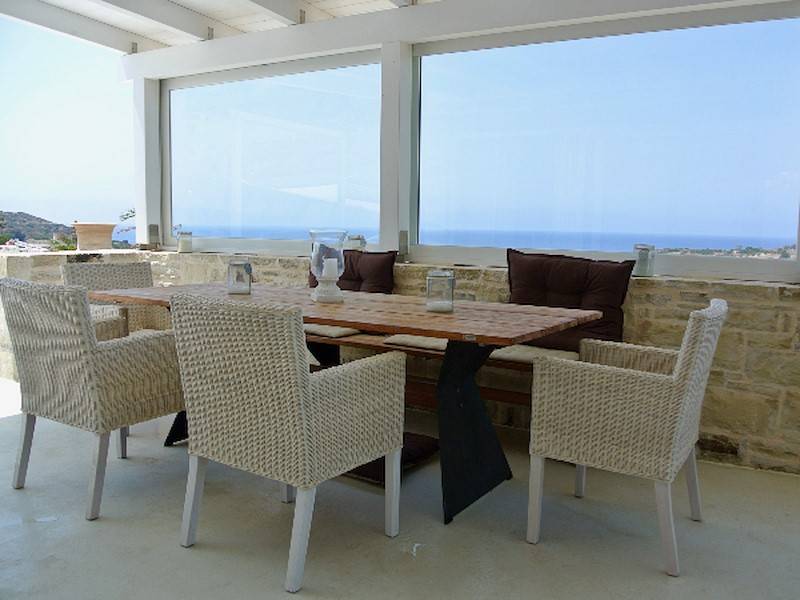 Von der Terrasse haben Sie einen traumhaften Blick auf das glitzernde Meer und der Insel Paximadi sowie auf den Psiloritis vom Ida-Gebirge Sie sind umgeben von Olivenhaine und Weinberge.