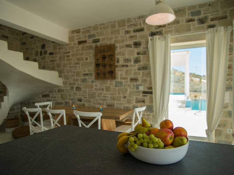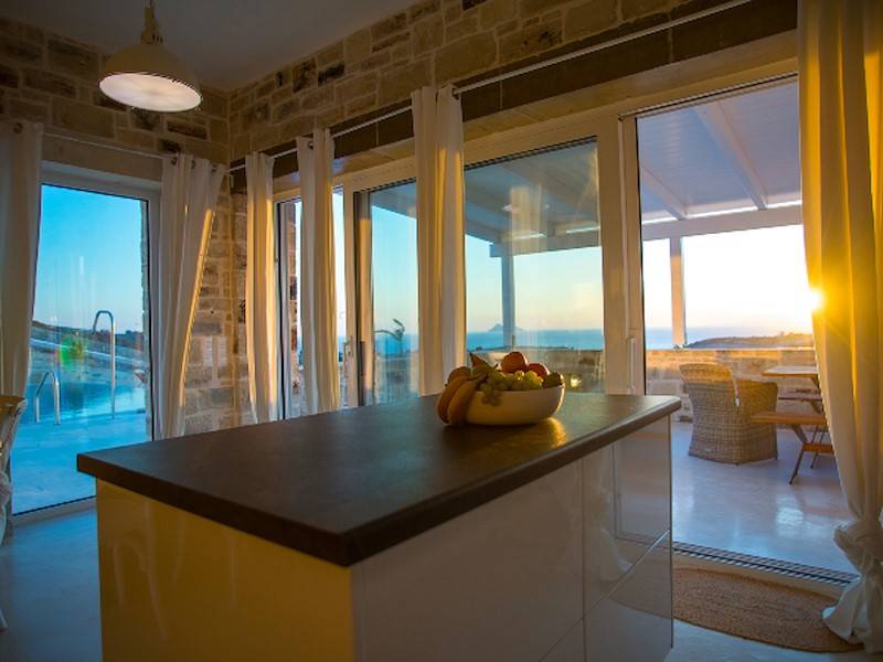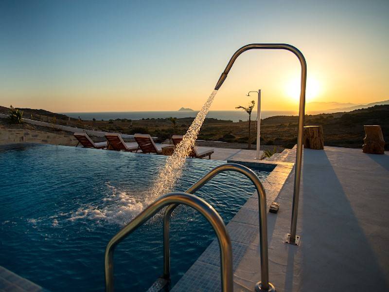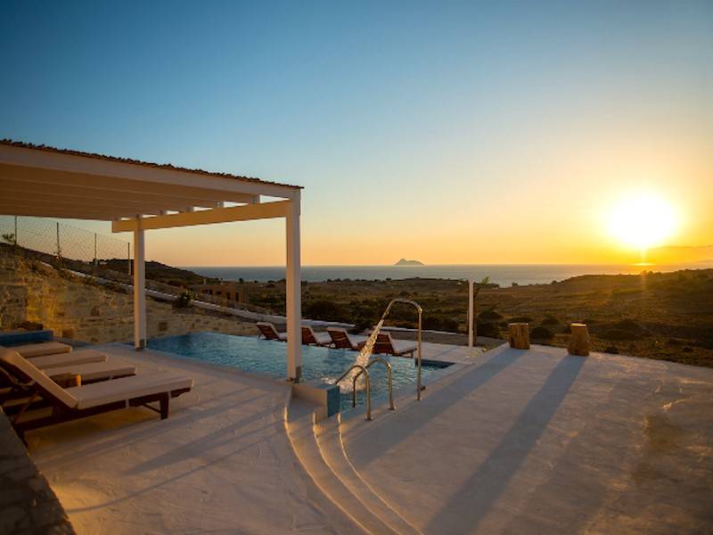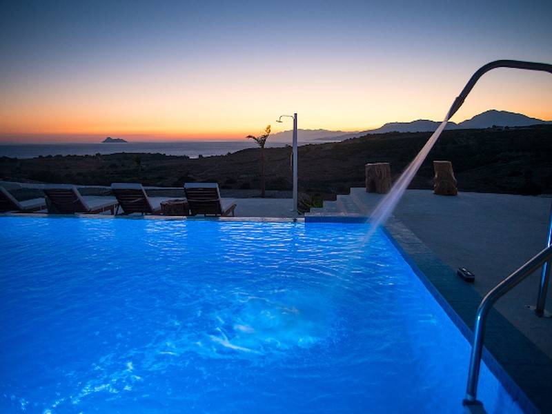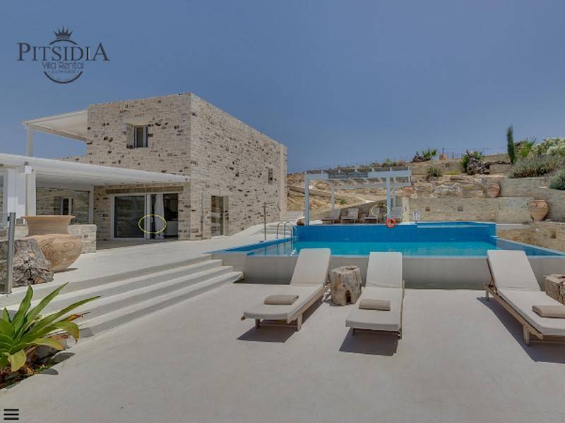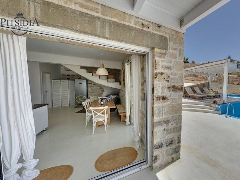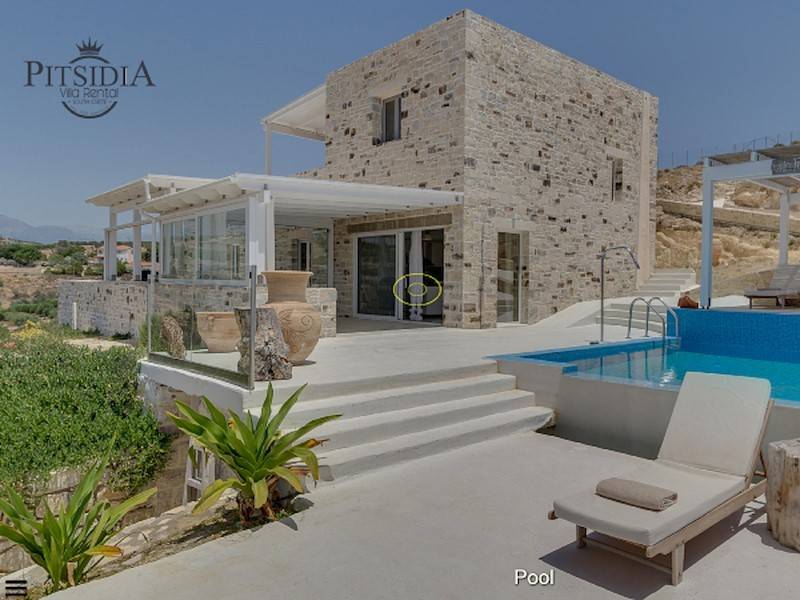 Die Luxus Villa Inia in Pitsidia befindet sich auf einem 5.000 qm großen Grundstück in ruhiger Toplage in traditioneller Architektur aus Natursteinen. Die Ferienvilla befindet sich am Ortsrand in Hanglage. Villa Inia ist 2016 entstanden. Traumhafter Blick auf den Sonnenuntergang im libyschen Meer und das Idagebirge. Der Infinity Pool (45 m²) mit Gegenstromanlage und angrenzendem Jacuzzi/ Kinderpool hat Meerblick.