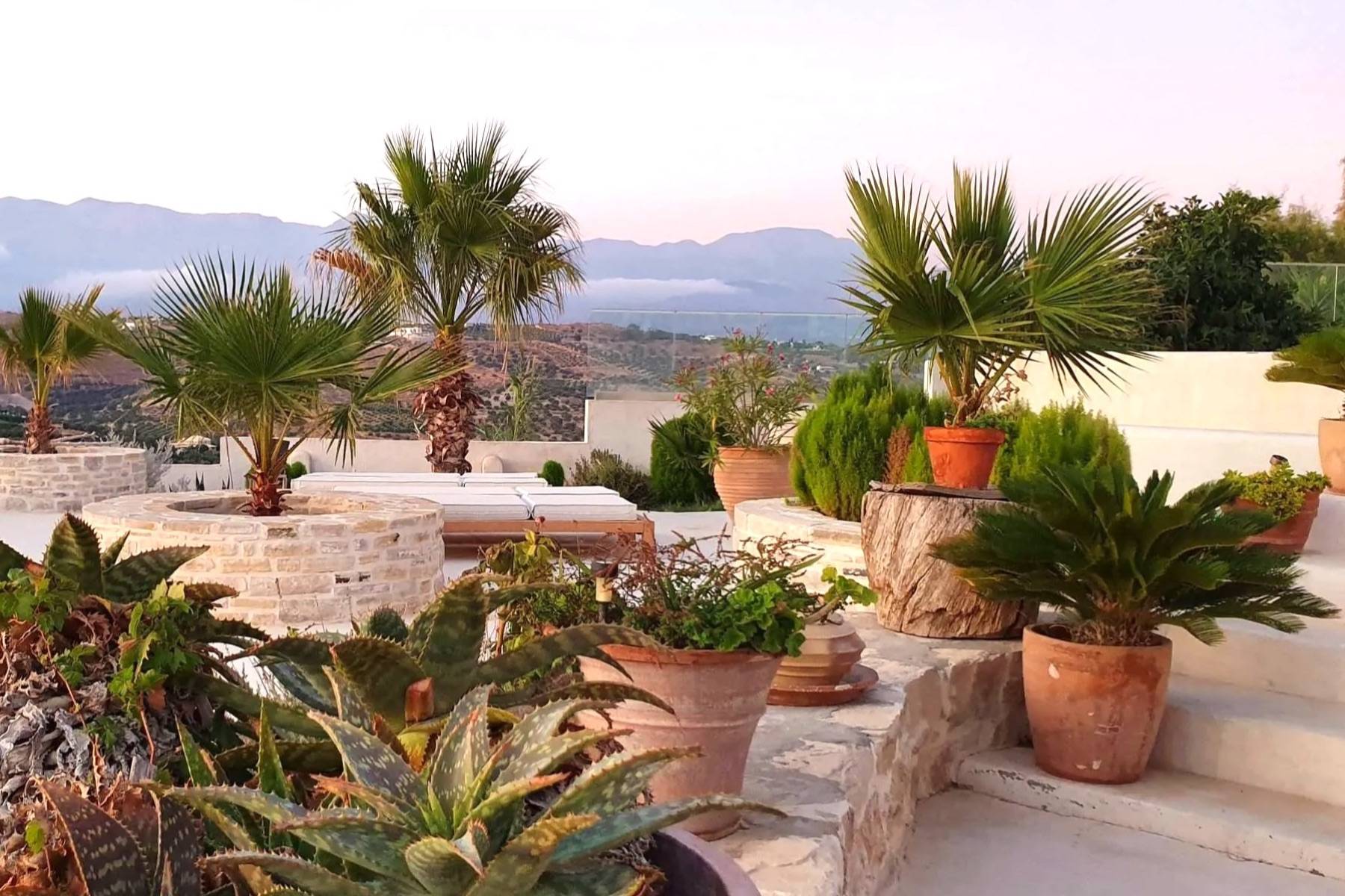 Luxusdomizil mit Blick über das libysche Meer - Mittelmeer, Bergpanorama Psiloritis - Ida Gebirge,Pitsidia, Messara-Ebene.