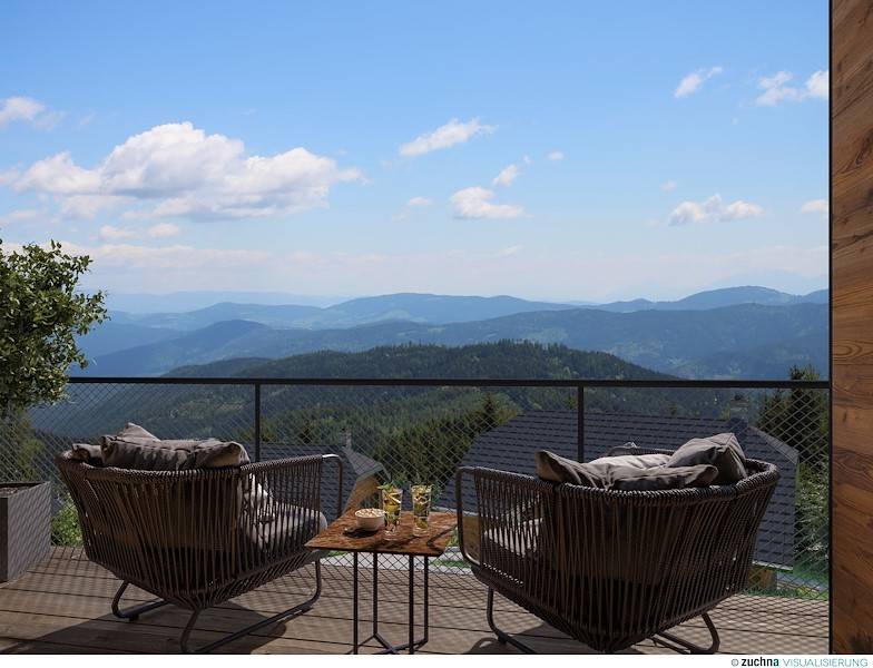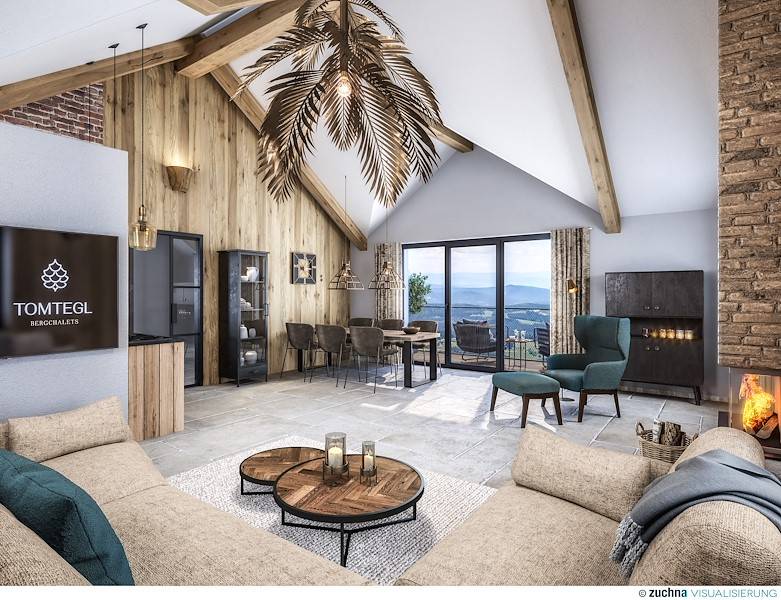 Das Tomtegl Bergchalet No. 3 auf der Hochrindl verfügt über einen großen offenen Wohn-, Ess- und Kochbereich, der durch eine etwa vier Meter hohe Raumhöhe und einen modernen Einrichtungsstil begeistert. Das Herzstück ist ein offener Holz- Kamin, der bei Bedarf wohlwollende Wärme spendet. Warm ums Herz wird einem auch, sobald man den Balkon betritt und sich ein spektakulärer Aus- und Weitblick eröffnet.
