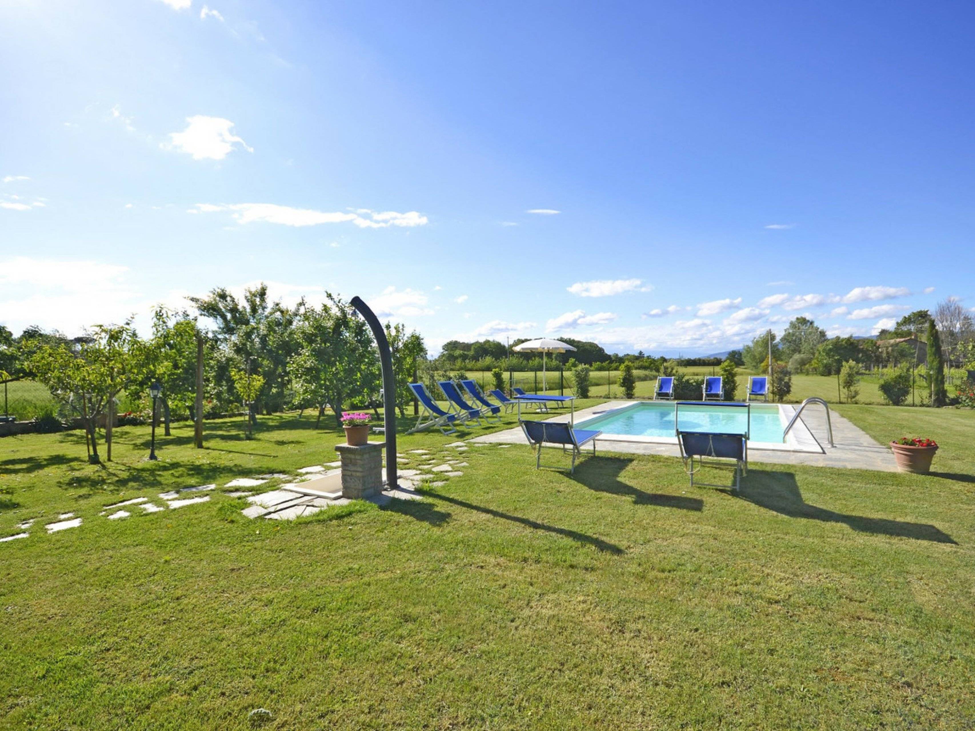 Nur ein paar Kilometer von der alten etruskischen Stadt Cortona, in einer flachen und leicht zugänglichen Lage, liegt das schöne toskanische Ferienhaus Casa I Pini.
