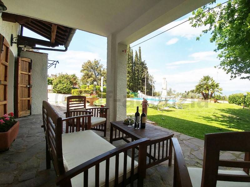 Das zweistöckige charmante Ferienhaus in Alleinlage ist von einem 600 m² großen, sehr gepflegten Grundstück umgeben, in dem sich auch die Poolanlage befindet. Man hat einen grandiosen Blick auf die umliegende Landschaft, an klaren Tagen kann man vom schiefen Turm von Pisa bis zu den Apuanischen Alpen schauen.