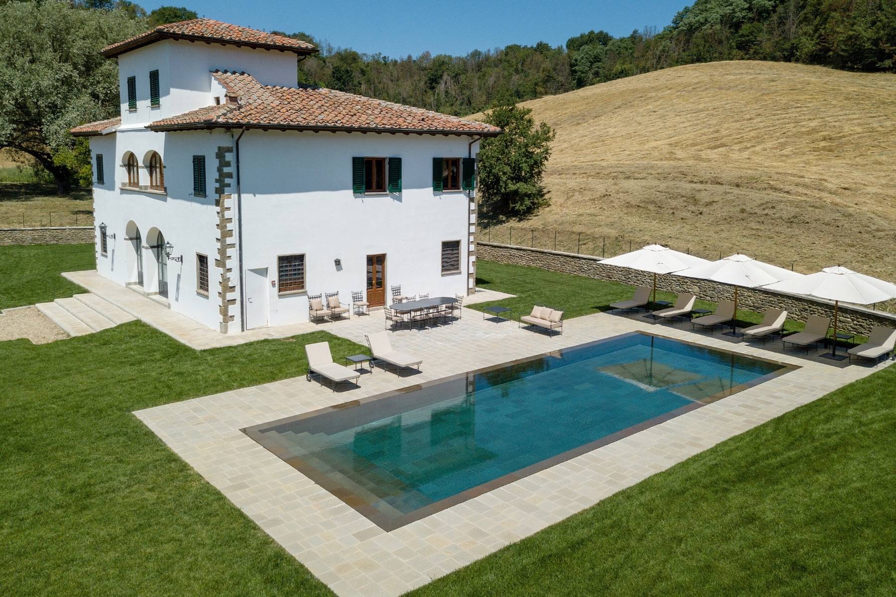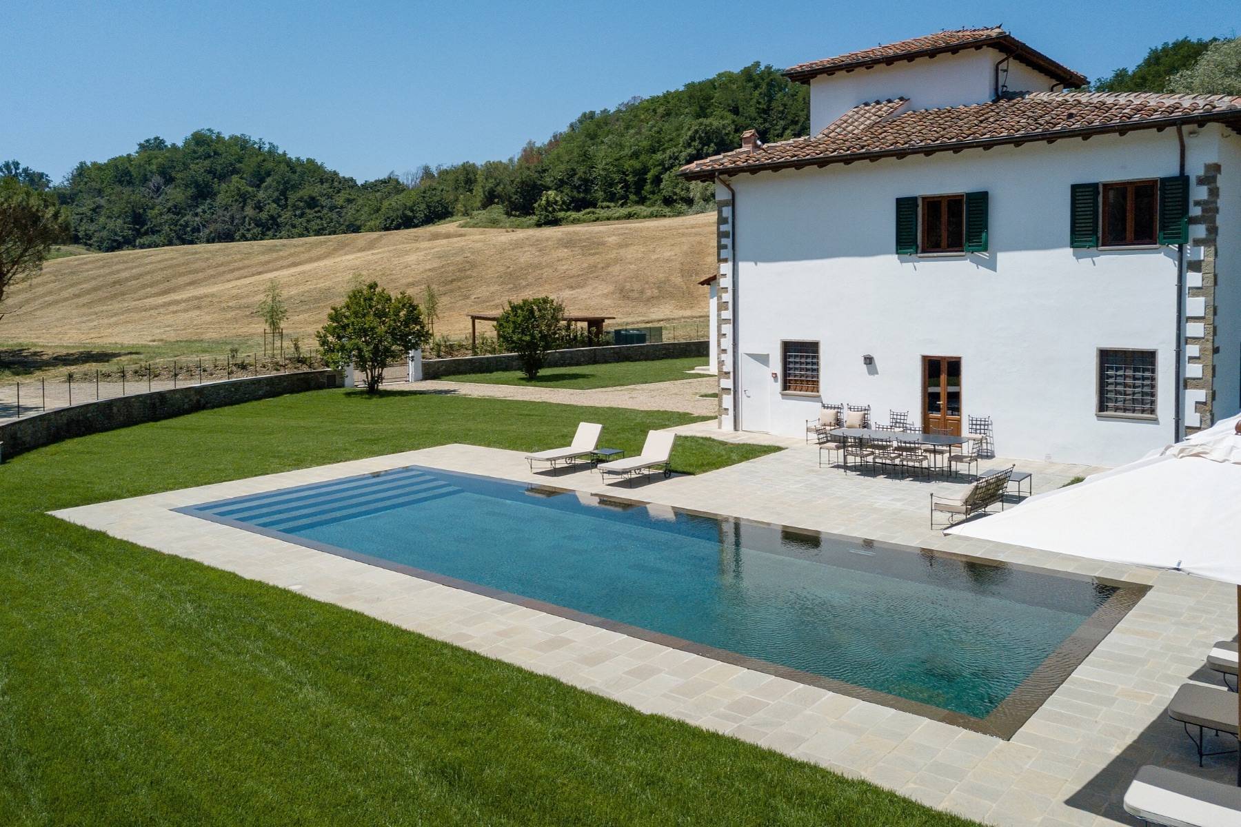 Die Villa Merlo bietet beste Voraussetzungen für einen außergewöhnlichen Urlaub in der Toskana. Die Luxusvilla Villa mit 5 Schlafzimmern und Pool in der Nähe von Florenz und gehört zum Viesca Estate, einem wunderbaren Luxus-Resort. Vom Haus aus geniesst man einen schönen Blick in die umgebende Natur. Das Anwesen ist umgeben von sanften Hügeln, jahrhundertealten Eichenwäldern, Pinienwäldern für angenehme Spaziergänge und weitläufige Wiesen, auf denen Rehe, Rehekitze und Hasen ungestört grasen.