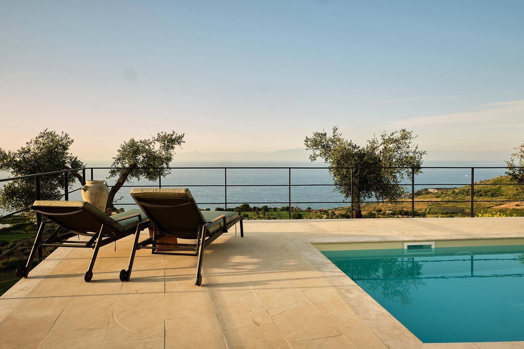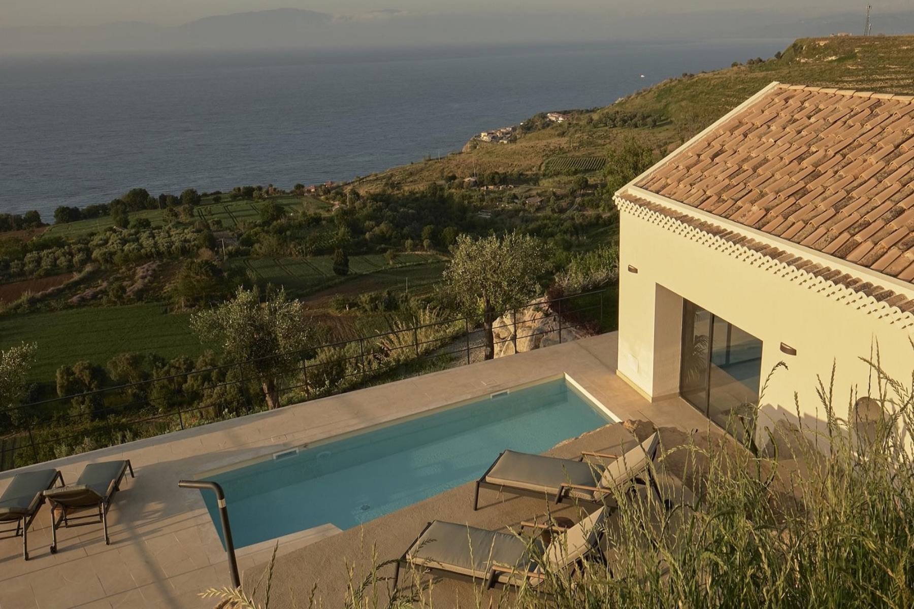 Intensive Aromen und Farben, für Jahrhunderte im Besitz Adeliger der Gegend und unweit von einer der schönsten Dörfer Italiens; Tropea. Ein Paradies auf Erden…….Benvenuti in Kalabrien in Jatu, einer Designervilla mit traumhaften Blick auf das Meer und die umliegenden Olivenhaine.