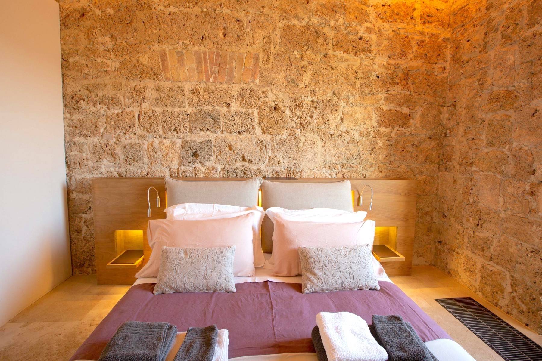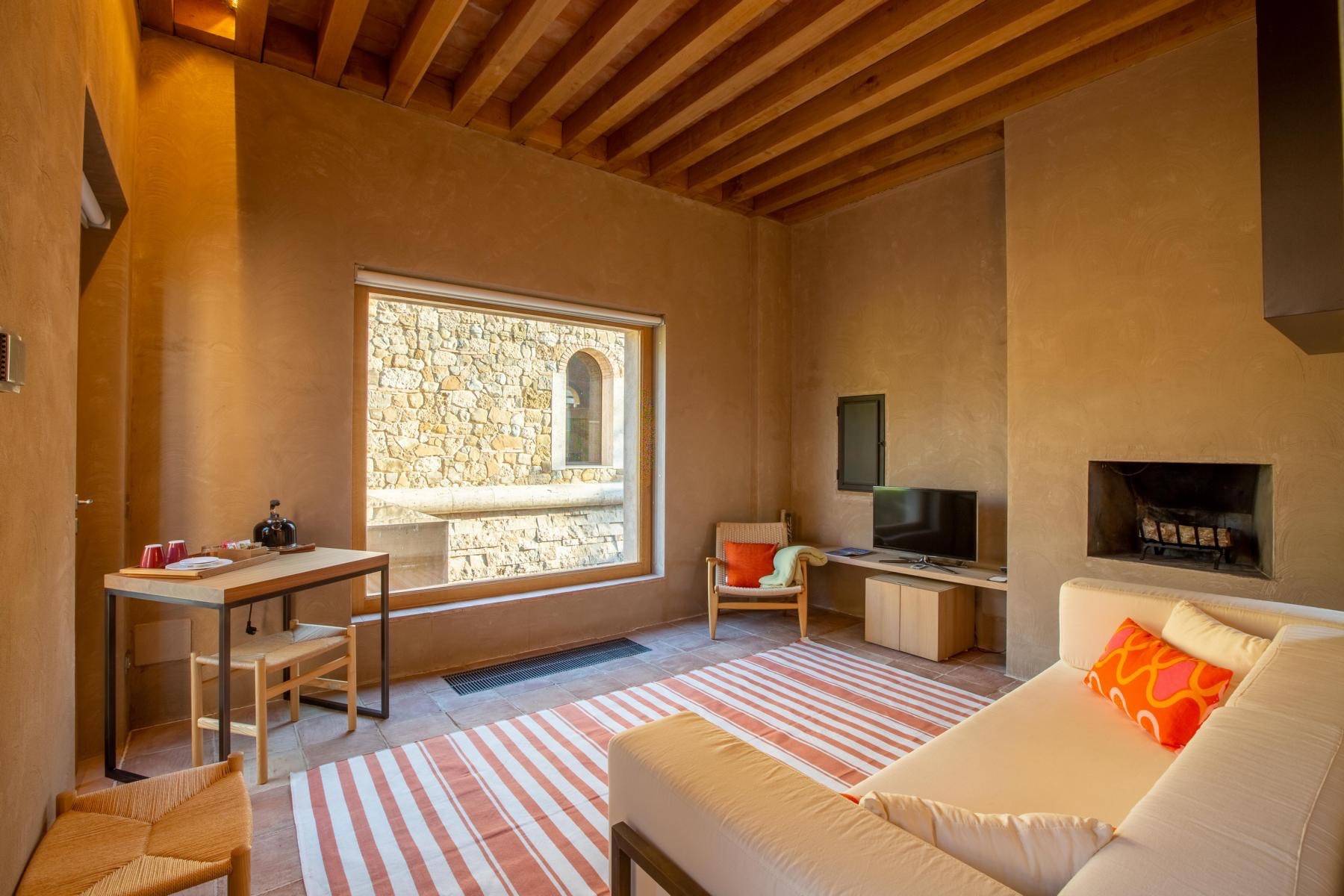 Das Anwesen hat einen unvergleichlichen Charakter und nichts von seinem imposanten Charme verloren: Altes, verwittertes Mauerwerk wird mit modernen, klaren Linien kombiniert, ergänzt durch Holzvertäfelungen, viel Terrakotta, dramatische Einbauleuchten und weitreichende Ausblicke. Mit Platz für 14 bis 20 Personen ist dieses Anwesen der Inbegriff von Geräumigkeit, aber es gibt auch viele Orte, an denen man vorübergehend die Einsamkeit suchen kann: Lehnen Sie sich in einem Eames-Sessel mit einem guten Buch zurück, setzen Sie sich mit einem Glas Wein aus dem Weinberg an den Pool oder nehmen Sie sich eine Stunde Zeit, um Ihre Muskeln in Ihrem privaten Fitnessstudio zu dehnen, gefolgt von einem kurzen Besuch in der Sauna.