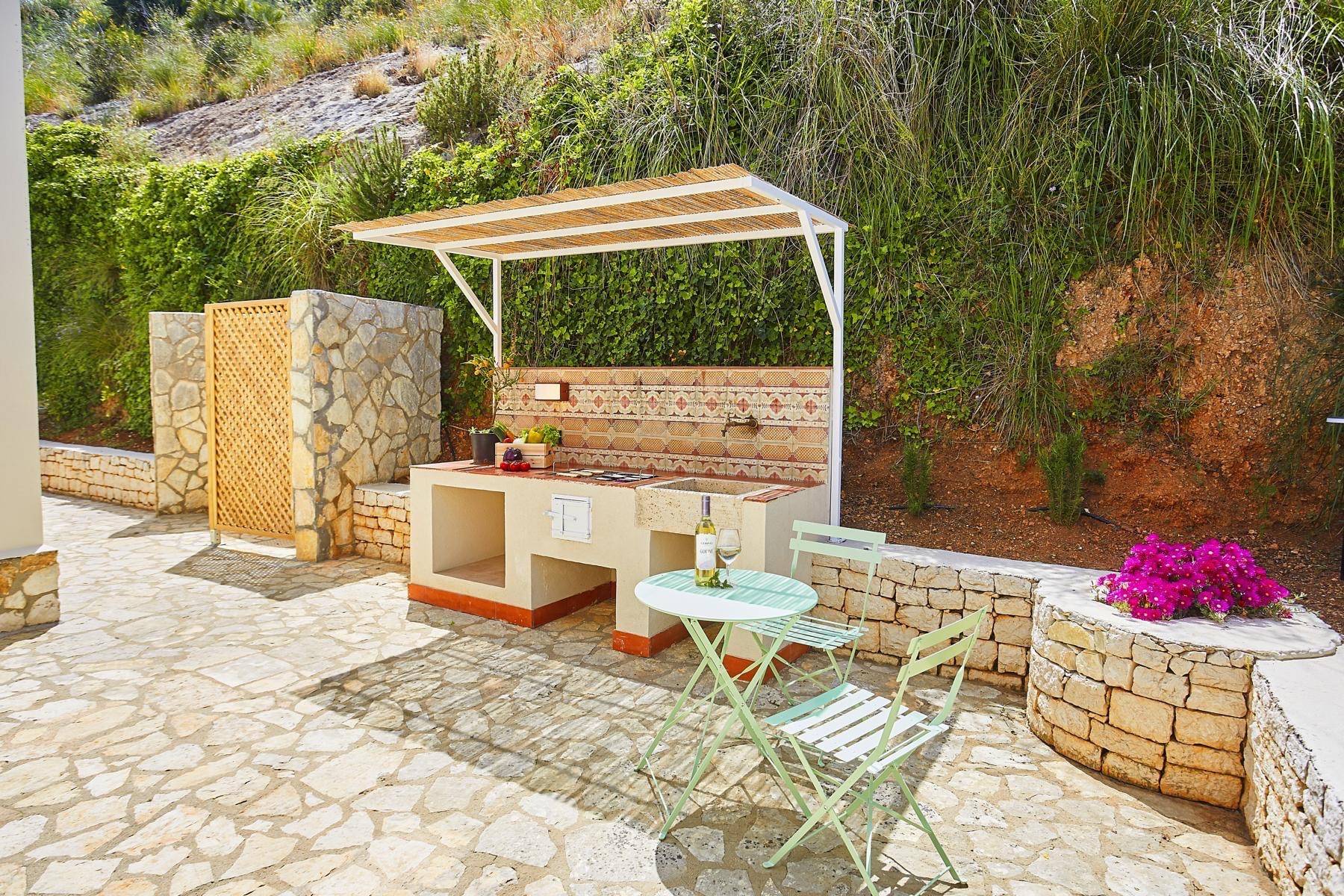 Ein großer Garten ermöglicht viel Platz und Freiraum, in dem mediterrane Pflanzen einen Traumurlaub untermauern. Eine überdachte Terrasse, eine Außenküche mit Barbecue, ein eigener Pool und eine Tischtennisplatte sorgen für viel Freude und Erlebnisse im Urlaub.