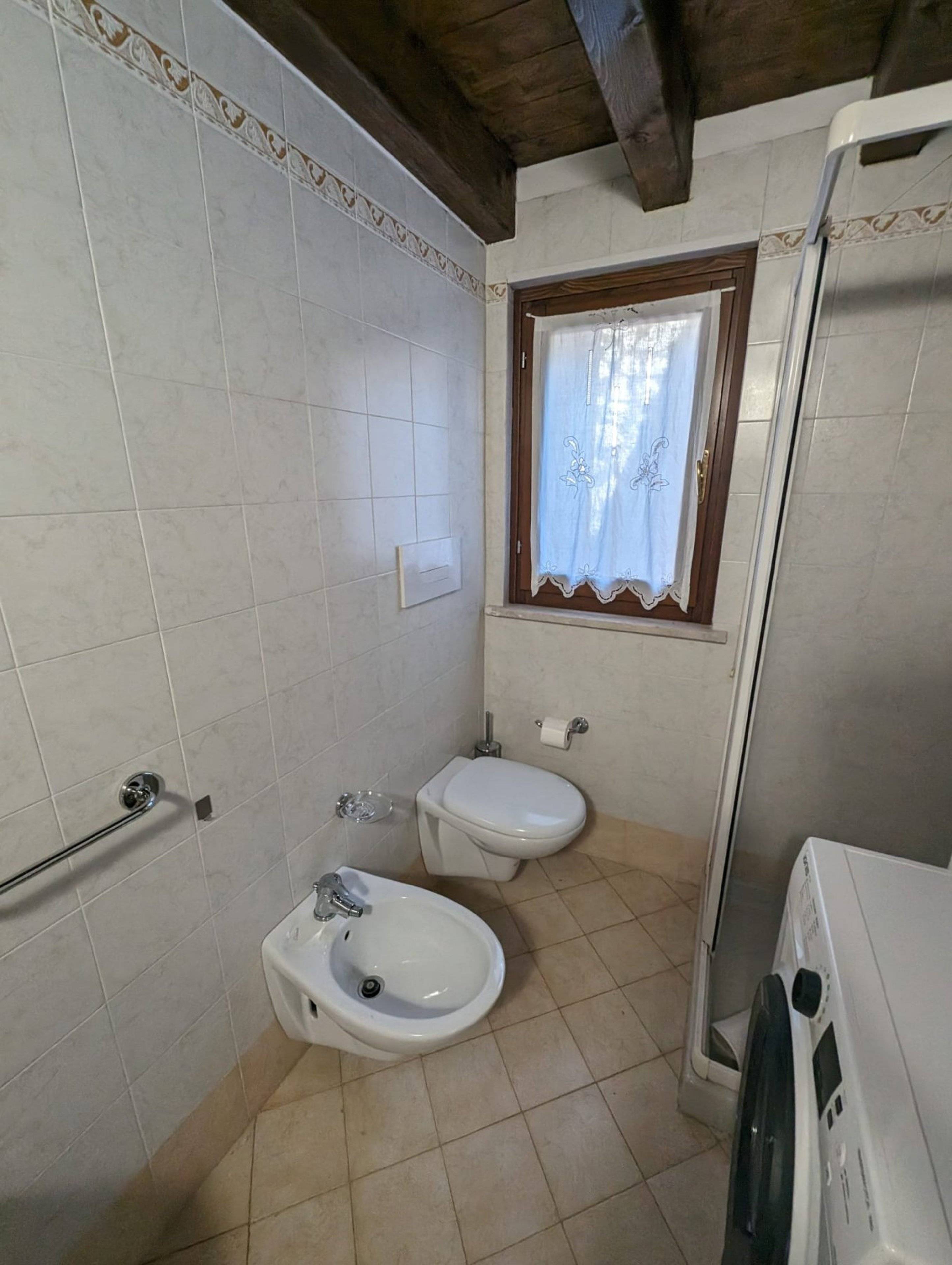 Badezimmer: Modernes Bad mit Dusche, WC, Bidet und Waschbecken.