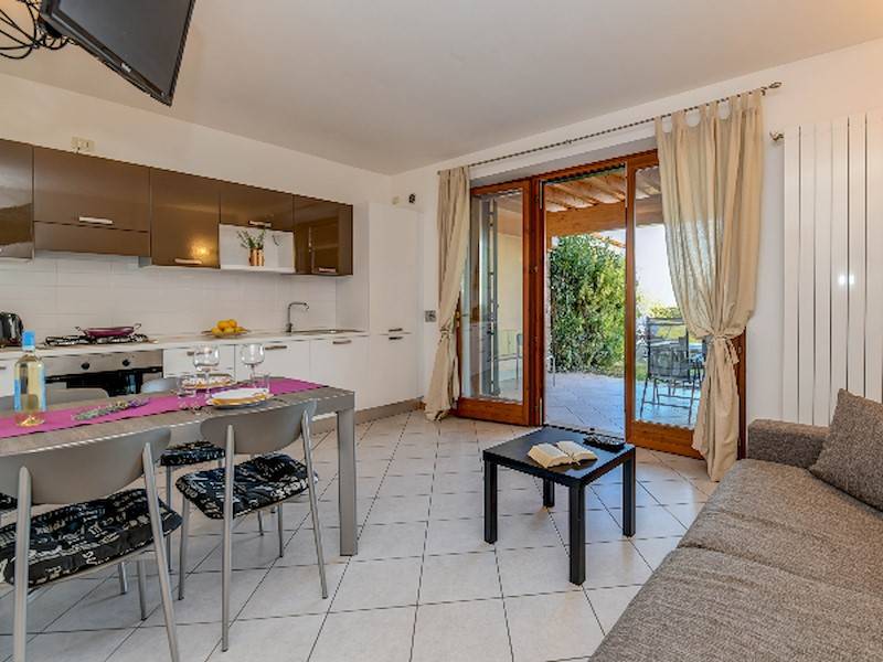 Sie wohnen in einer komfortabel eingerichteten 2-Raum-Wohnung im Erdgeschoss, die Ihnen einen wunderschönen Blick über den Gardasee bietet.