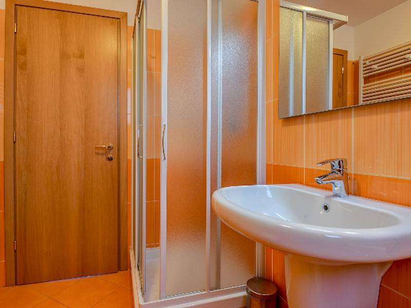 Im Wohnzimmer befinden sich neben einer bequemen Sitzgruppe und dem Essplatz, ein TV-Gerät und die integrierte offene Küche. Die Küchenausstattung ist ebenfalls ausreichend bestückt, für einen angenehmen Urlaub. Vom Wohnraum aus betreten Sie den überdachten Balkon mit traumhaftem Seeblick, wo Sie den Tag ausklingen lassen können. Ein Schlafzimmer mit Doppelbett und ein Schlafzimmer mit zwei einzeln Betten, sowie das Bad mit Dusche und WC vervollständigen das Gesamtbild dieser Wohnung.