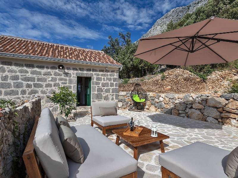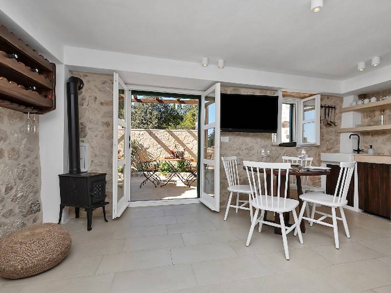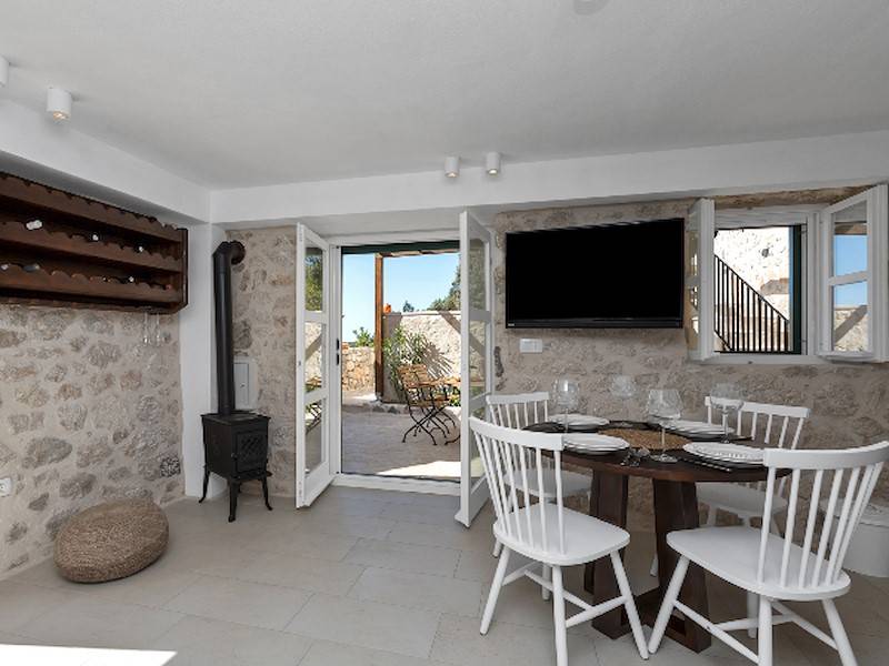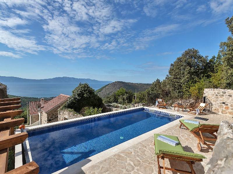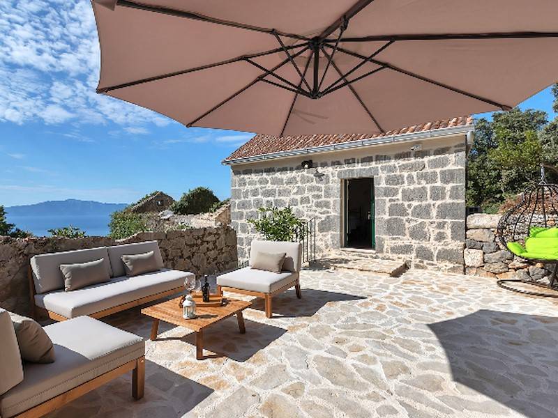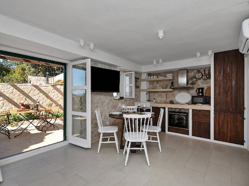 Gemütliches Ferienhaus Villa Marianne liegt oberhalb der Küste, ca 2 Km vom Meer entfernt in einer ruhigen Hanglage. Vollkommen renoviertes Steinhaus, mit viel Liebe zum Detail eingerichtet. Das Ferienhaus bietet Platz für maximal 3 Personen, zwei Erwachsene und ein Kind. Im Erdgeschoss befindet sich das Wohnzimmer mit offener Küche, TV/SAT, eine Schlafcouch für ein Kind. Im ersten Stock befindet das Schlafzimmer und ein Badezimmer und die Waschmaschine. Vorm Haus sind zwei Terrassen vorhanden, wo Sie entspannen können. Der beheizter privat Pool lädt zum entspannen ein. Ein Grill ist auch vorhanden, dre Fahhräder auch.