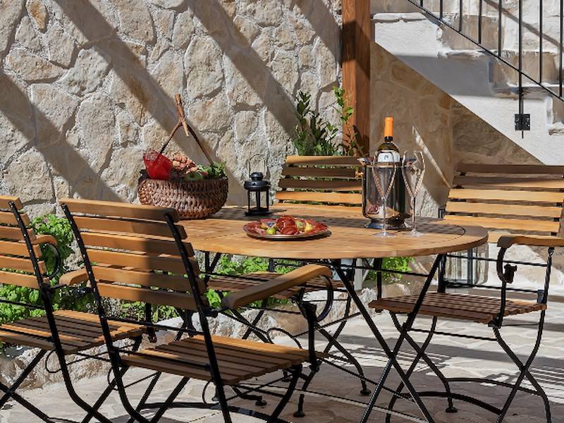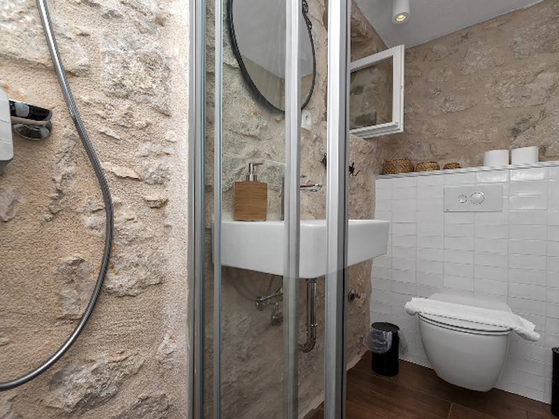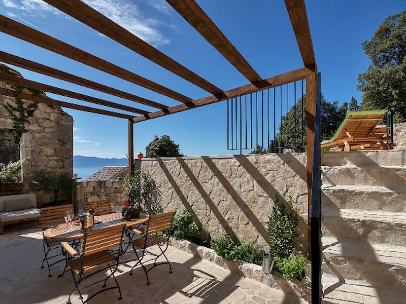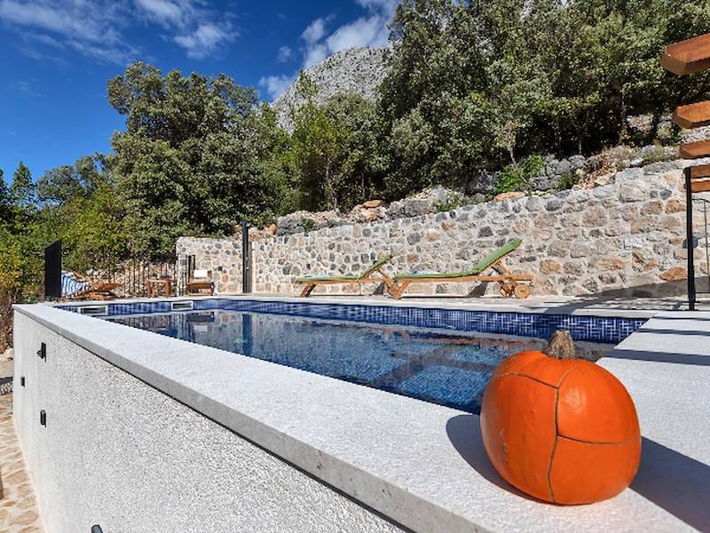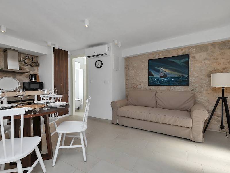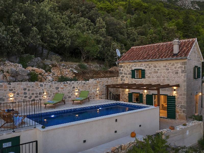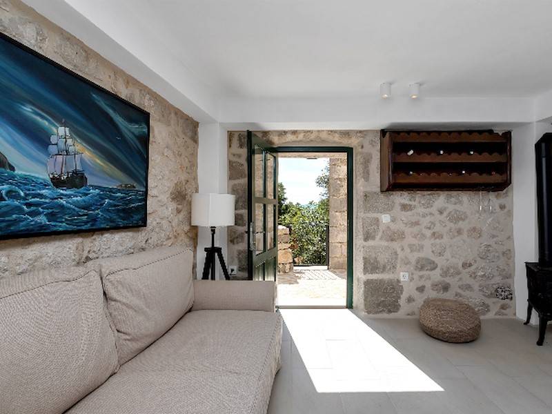 Gemütliches Ferienhaus Villa Marianne liegt oberhalb der Küste, ca 2 Km vom Meer entfernt in einer ruhigen Hanglage. Vollkommen renoviertes Steinhaus, mit viel Liebe zum Detail eingerichtet. Das Ferienhaus bietet Platz für maximal 3 Personen, zwei Erwachsene und ein Kind. Im Erdgeschoss befindet sich das Wohnzimmer mit offener Küche, TV/SAT, eine Schlafcouch für ein Kind. Im ersten Stock befindet das Schlafzimmer und ein Badezimmer und die Waschmaschine. Vorm Haus sind zwei Terrassen vorhanden, wo Sie entspannen können. Der beheizter privat Pool lädt zum entspannen ein. Ein Grill ist auch vorhanden, dre Fahhräder auch.
