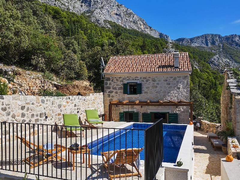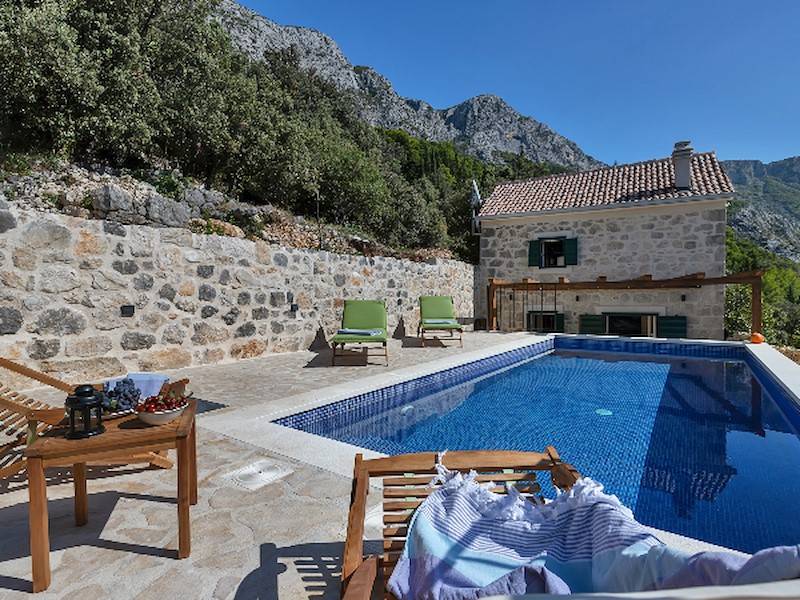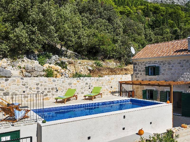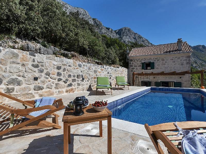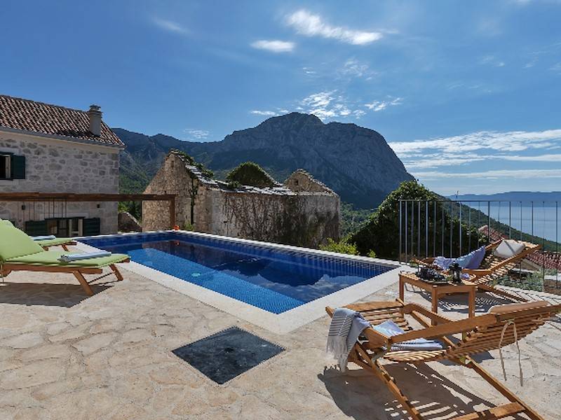 Villa Marianne mit beheiztem Pool und Meerblick in ruhiger Lage oberhalb der Küste und Ortes Zaostrog an Makarska Riviera. Gratis WLAN und Fahrräder