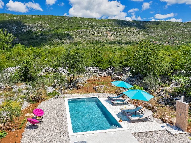 Durch den beheizbaren Pool ist dieses Ferienhaus ideal für alle Gäste, die gerne schon im Frühling oder erst im Herbst Urlaub in Dalmatien/ Zagora machen wollen und lieber in einem vorgewärmten Pool baden – sehr geeignet auch für kleine Kinder.
