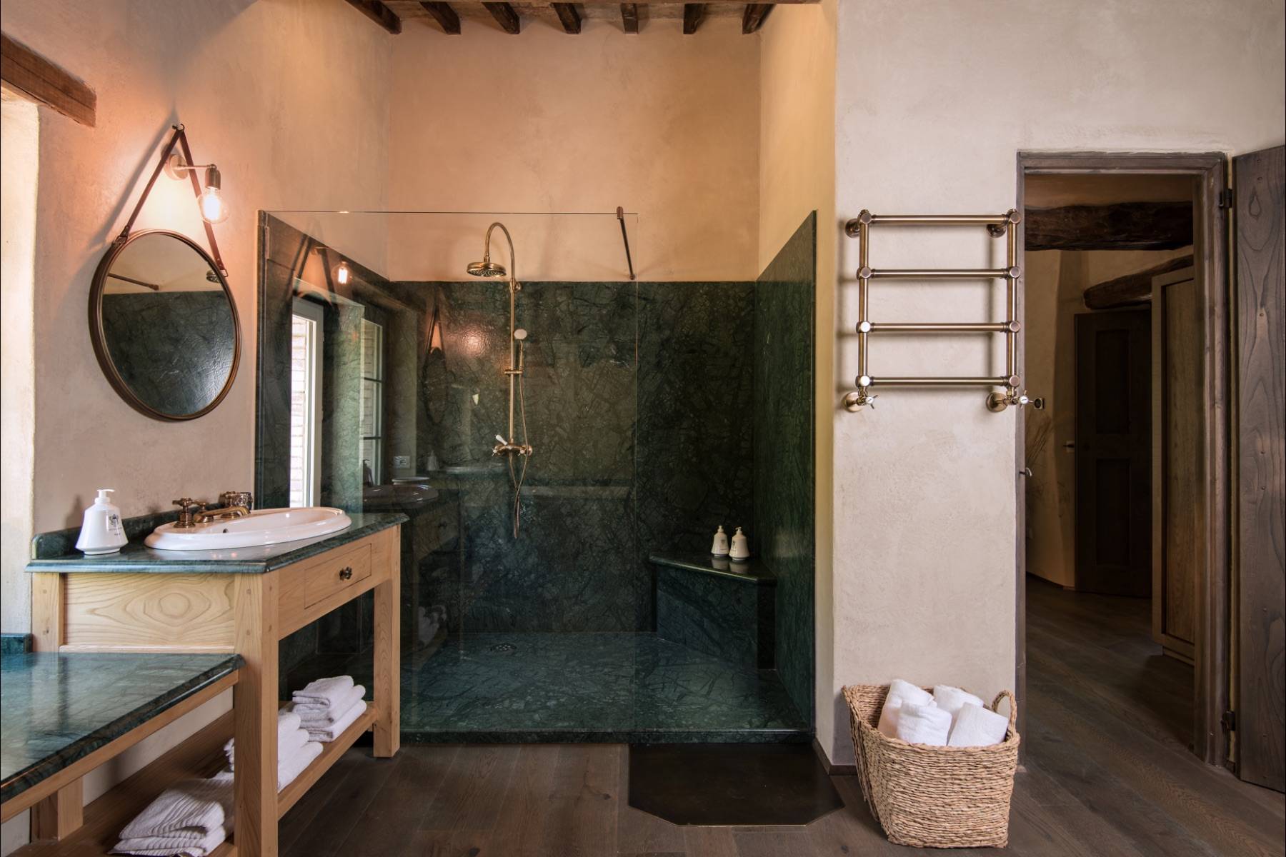 Im Gewölbe des XIII Jahrhunderts befindet sich ein Whirlpool mit direktem Zugang vom Wohnzimmer der Villa mit Blick auf den Fluss