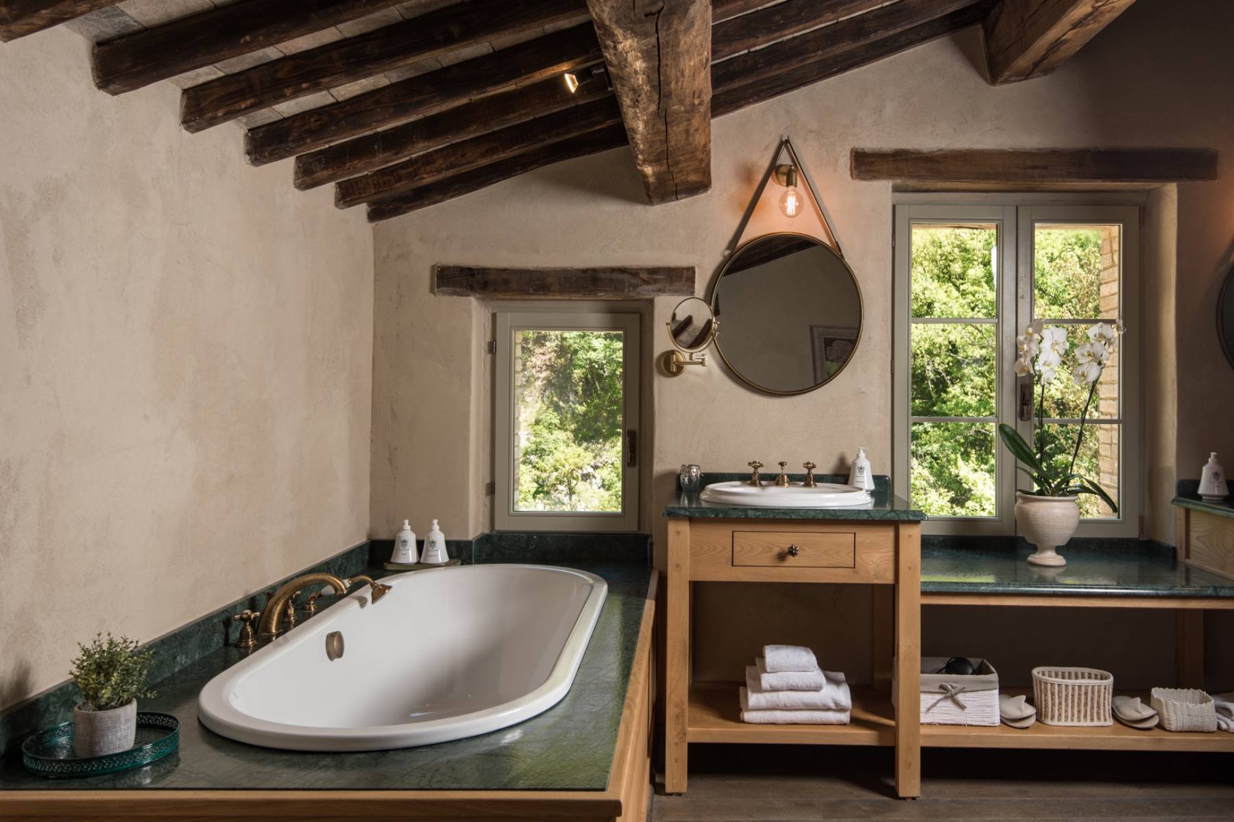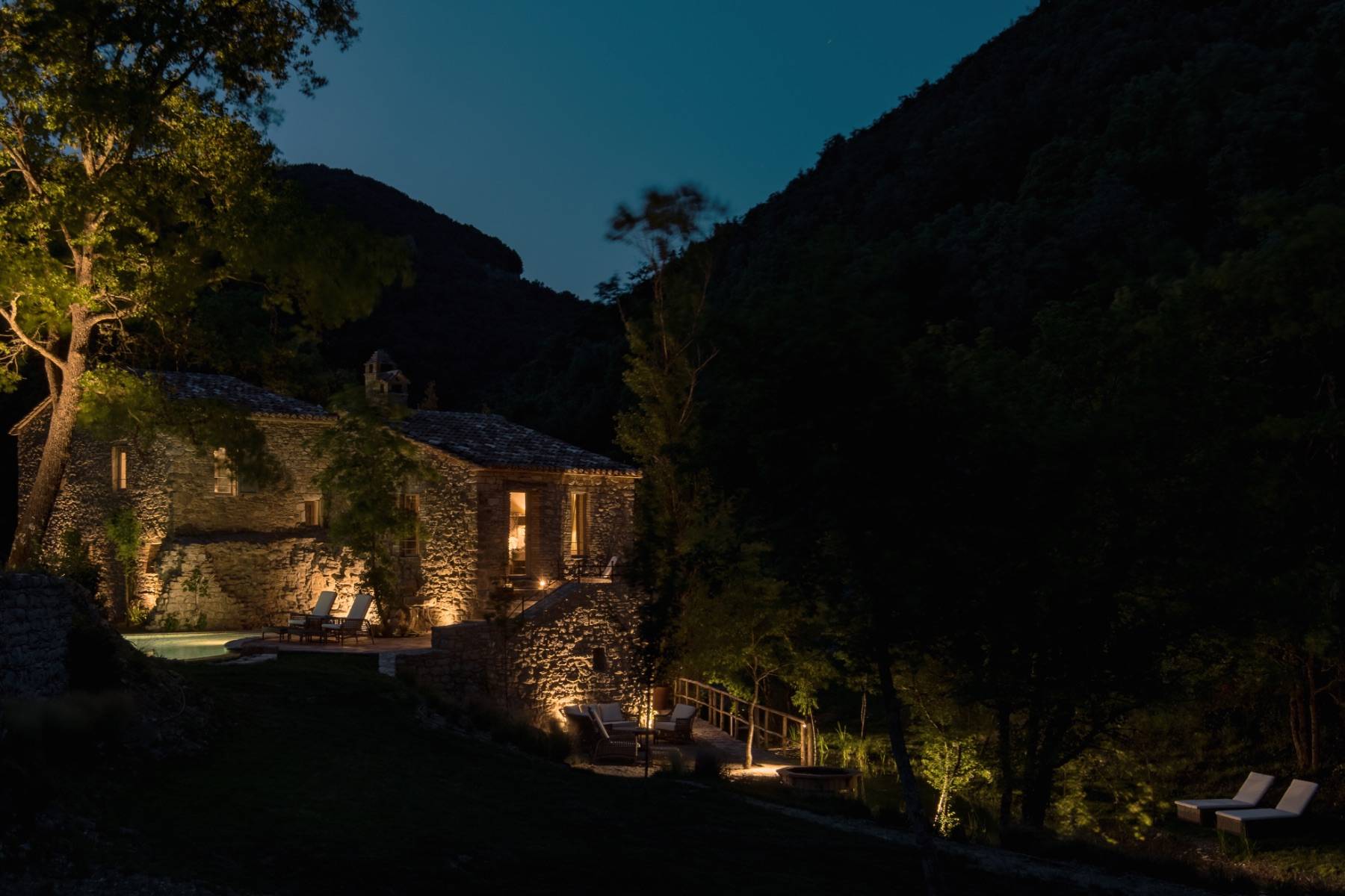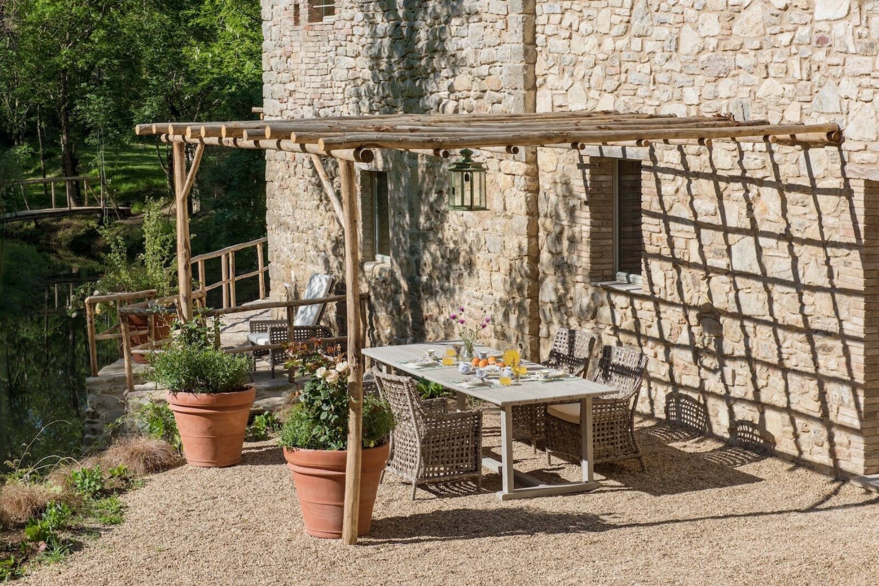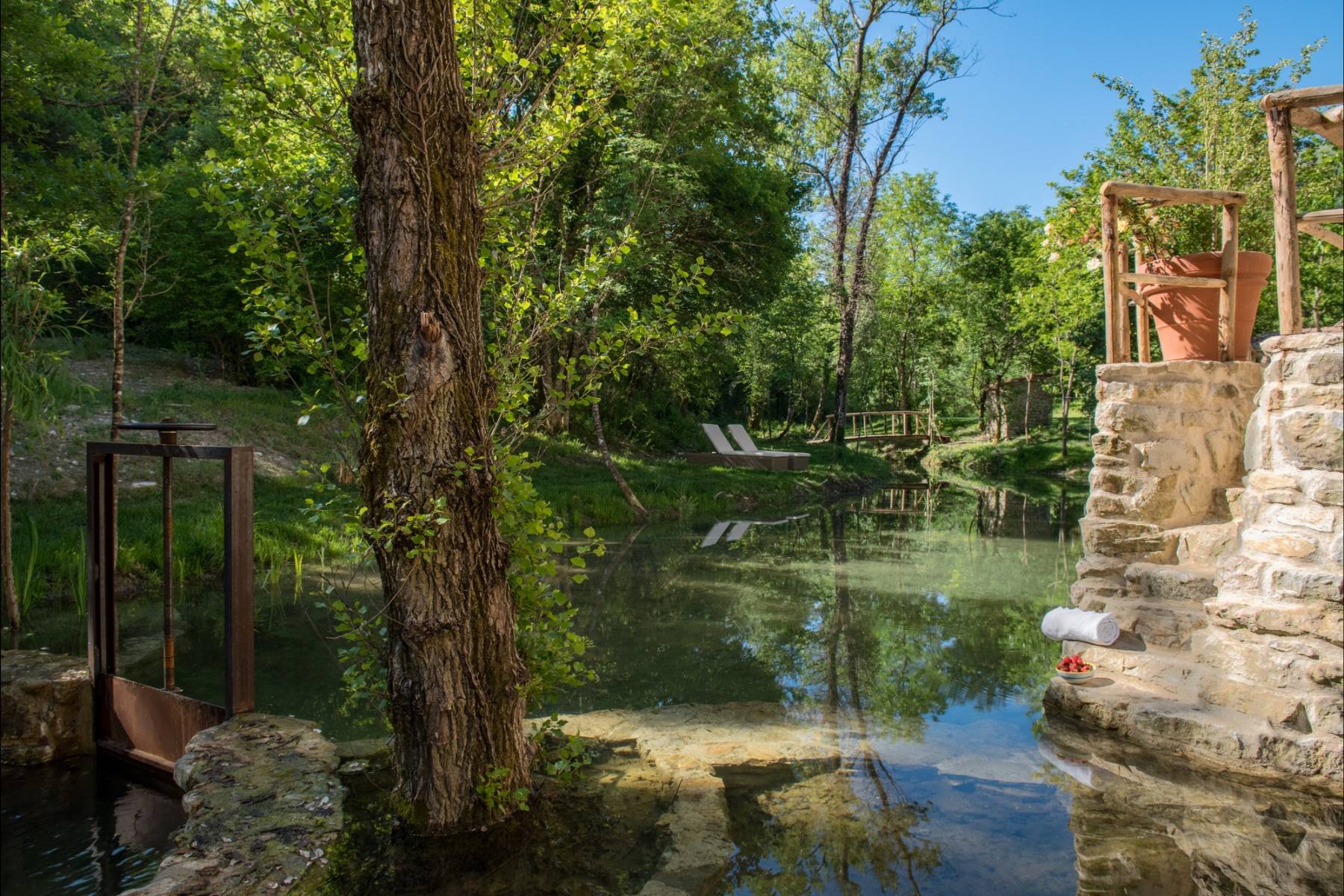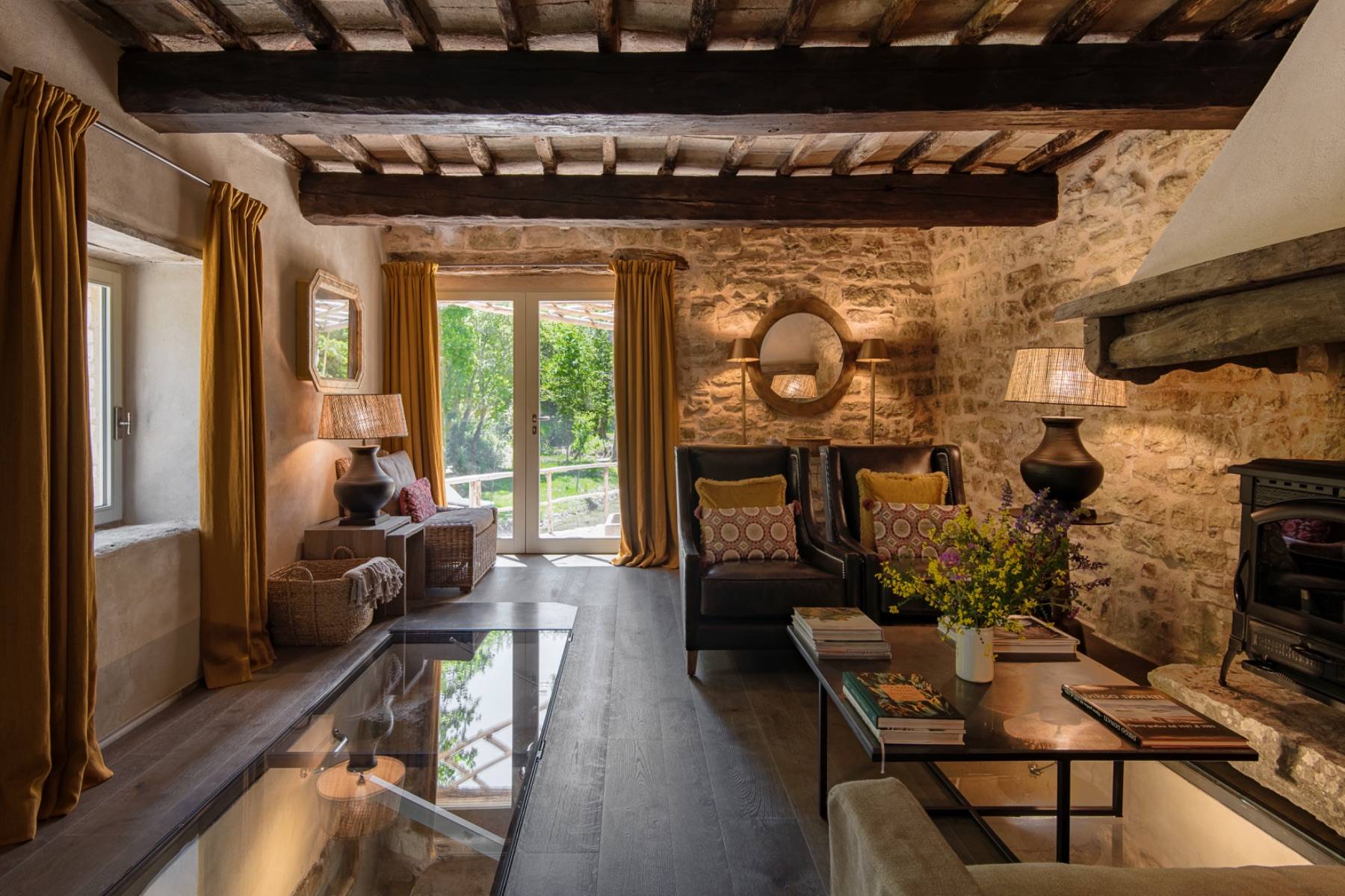 Als Gast können Sie sich hier in der Morgensonne sonnen, umgeben vom friedlichen Rauschen des Flusses, während sie ihren morgendlichen Espresso genießen. Von hier aus können Sie direkt Spaziergänge unternehmen, um die natürlichen "Pools" in der Nähe zu erkunden, bevor Sie im privaten Whirlpool im alten Gewölbe dieser restaurierten Mühle aus dem 13. Jahrhundert entspannen.