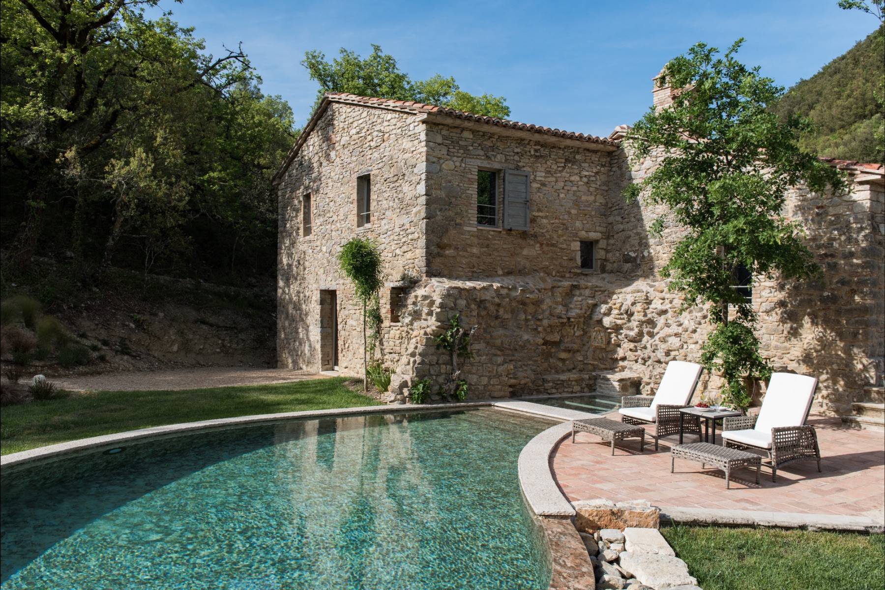 Beim Restaurieren der Mühle ist man dem ursprünglichen Grundriss der Struktur treu geblieben, während die Ruinen wiederbelebt und das Gebäude auf höchstem Niveau wieder hergestellt wurde. Die Mischung aus heller Inneneinrichtung mit hochwertigen italienischen Möbeln sorgt für ein wirklich aussergewöhnlich schönes Refugium auf dem Land.