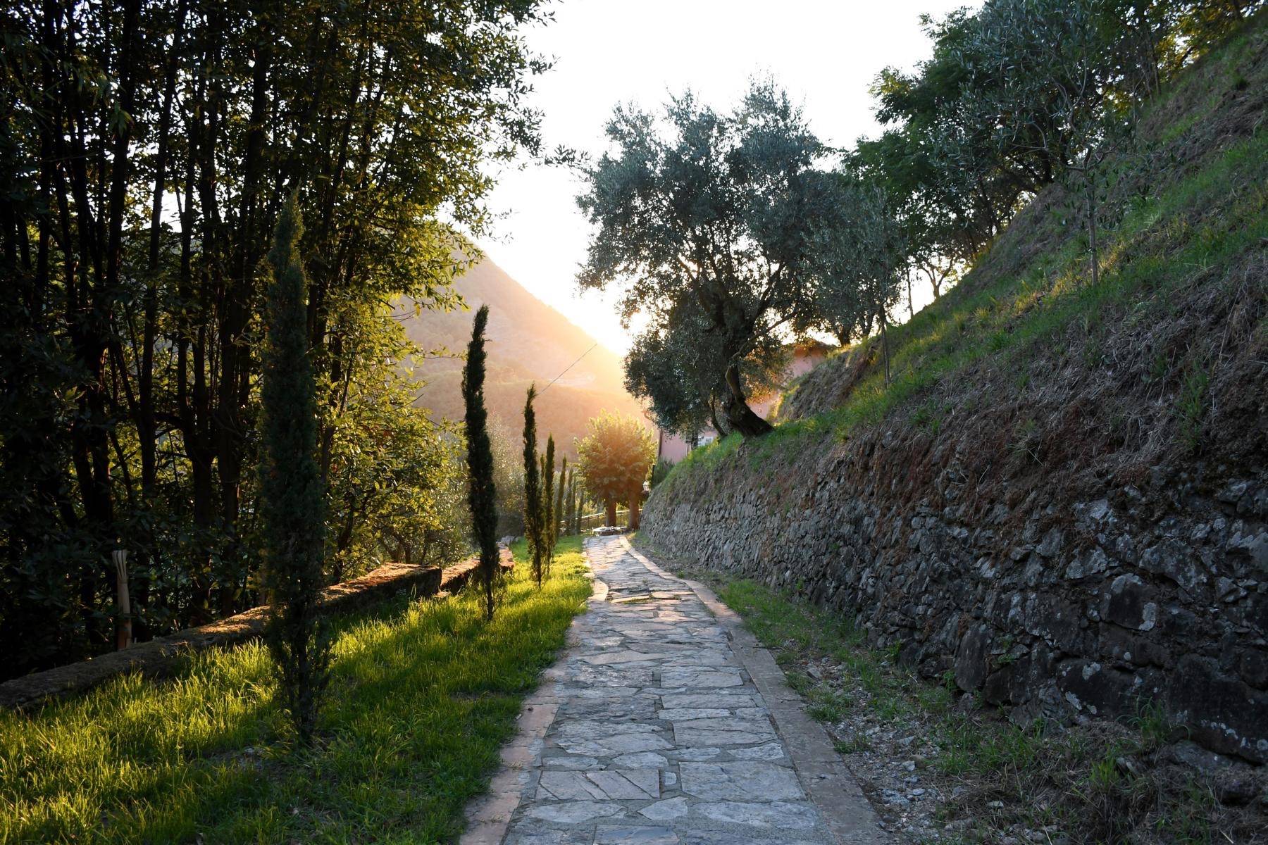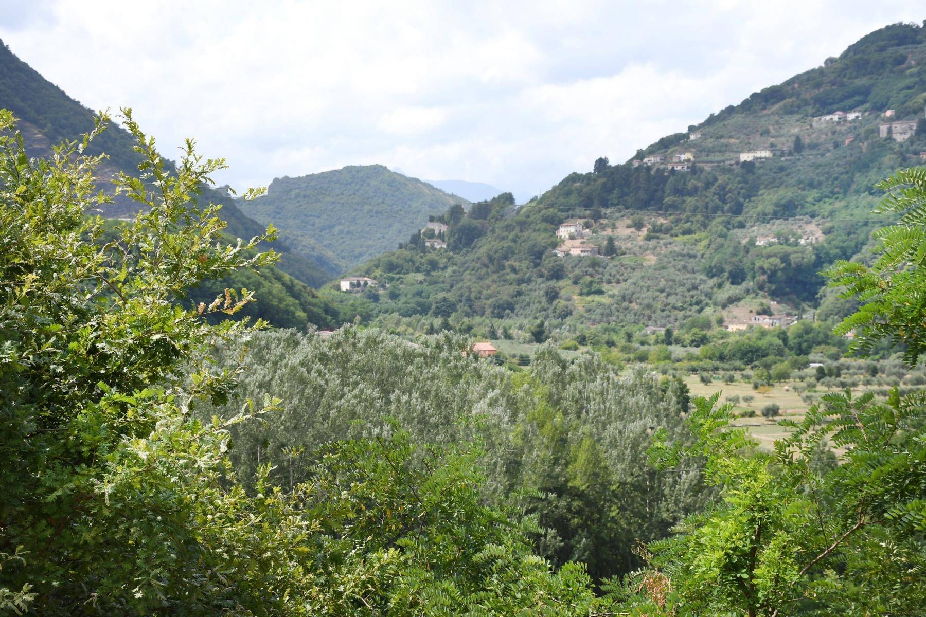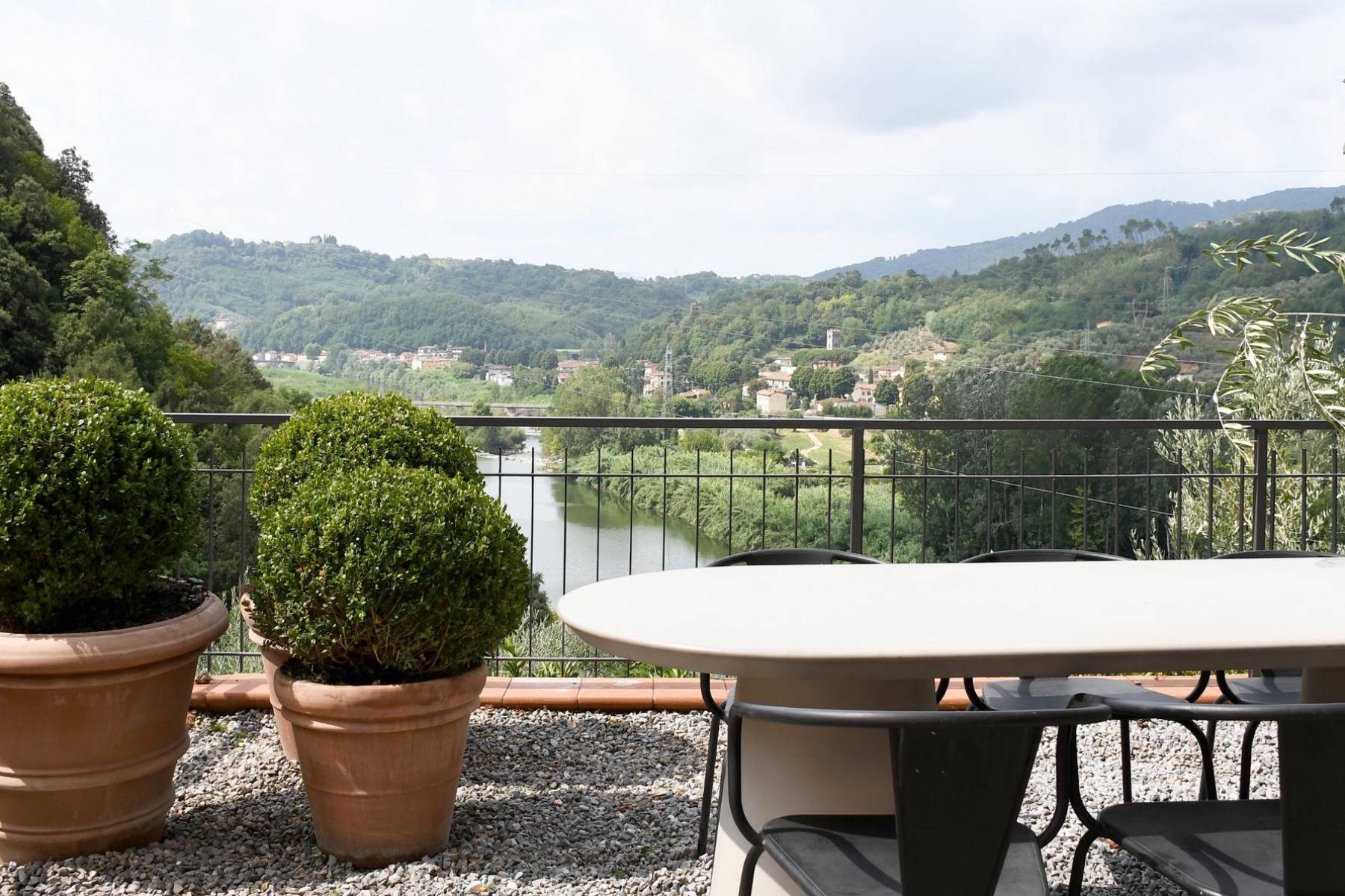 Wunderschön und genauso individuell wie der Innenbereich ist der geschaffene Außenbereich. Dort befinden sich ein Swimmingpool und mehrere Terrassen mit Blick auf den Fluss Serchio, umgeben von einer privaten Waldlandschaft von 2 Hektar Größe.