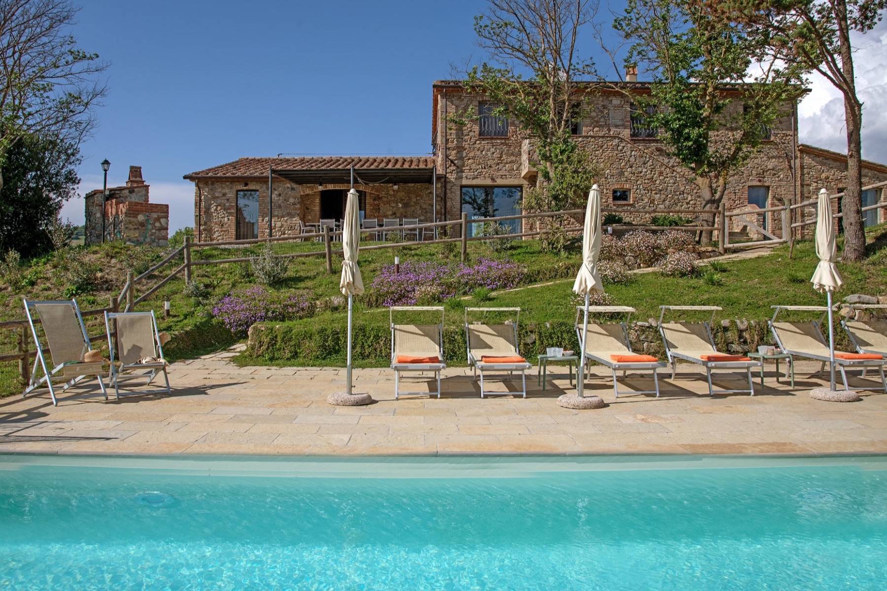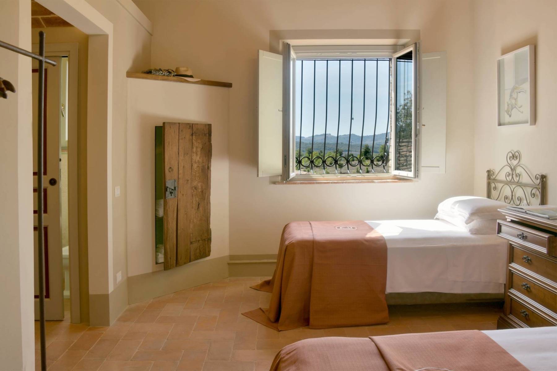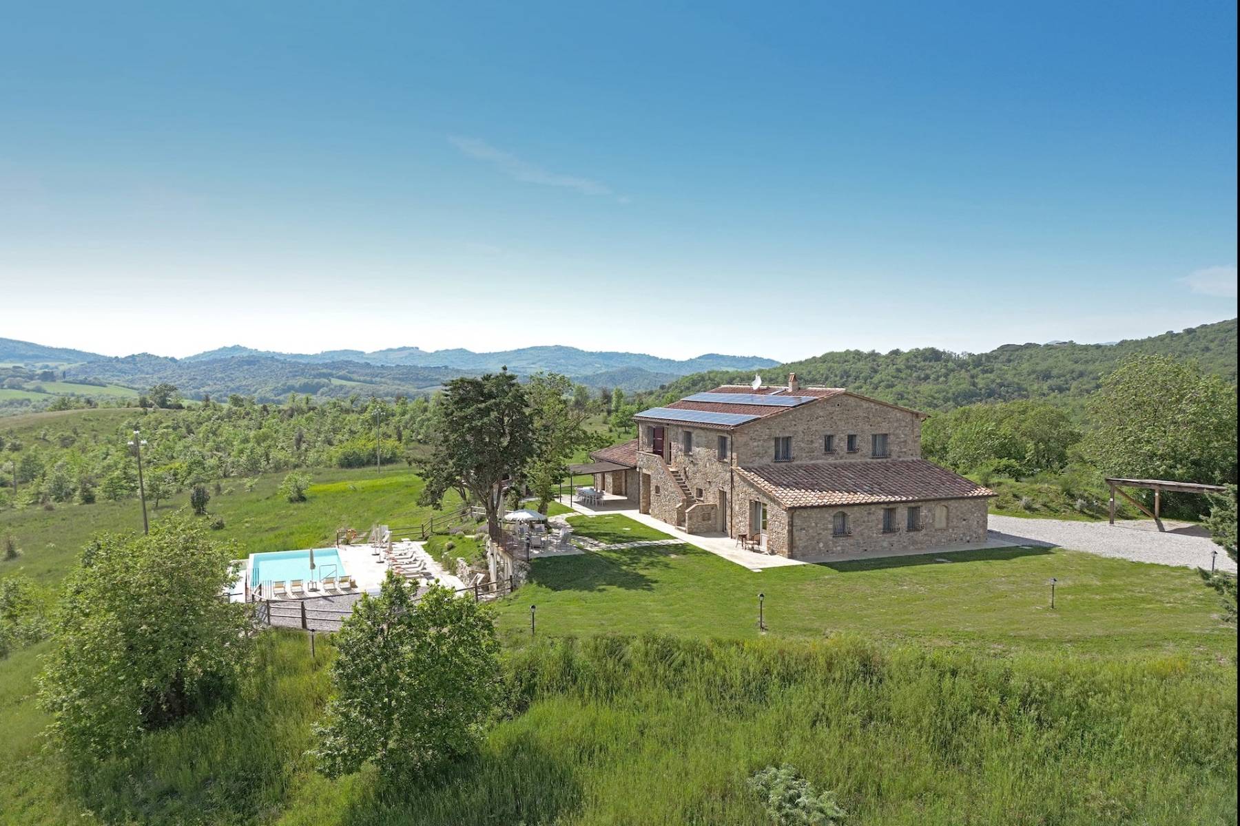 Die Villa Podere Cipressino, umgeben von Haselnussbäumen….ein ungewöhnlicher Baum für die toskanische Erde. Es überblickt etwa 45 Hektar eigener umliegender Ländereien, von denen eine bedeutende Fläche der Kultivierung von Haselnussstauden dient. Mit dem Wiederaufbau wurde 2023 mit dem Ziel abgeschlossen, die typischen Materialien, die der Toskana ihr so liebenswertes Gesicht verleihen, mit den Bedürfnissen unserer Zeit zu vereinen. Die Steine, der Cotto und der meisterhaft hergestellte Travertin führen in die Seele der Toskana, während flächendeckendes WIFI, eine Farbtherapie-Dusche, oder ein kleiner Fitnessraum zu jenen Dingen zählen, die den Aufenthalt unserer Gäste, die dieses Anwesen als ihren Ferienort gewählt haben, noch angenehmer gestalten.