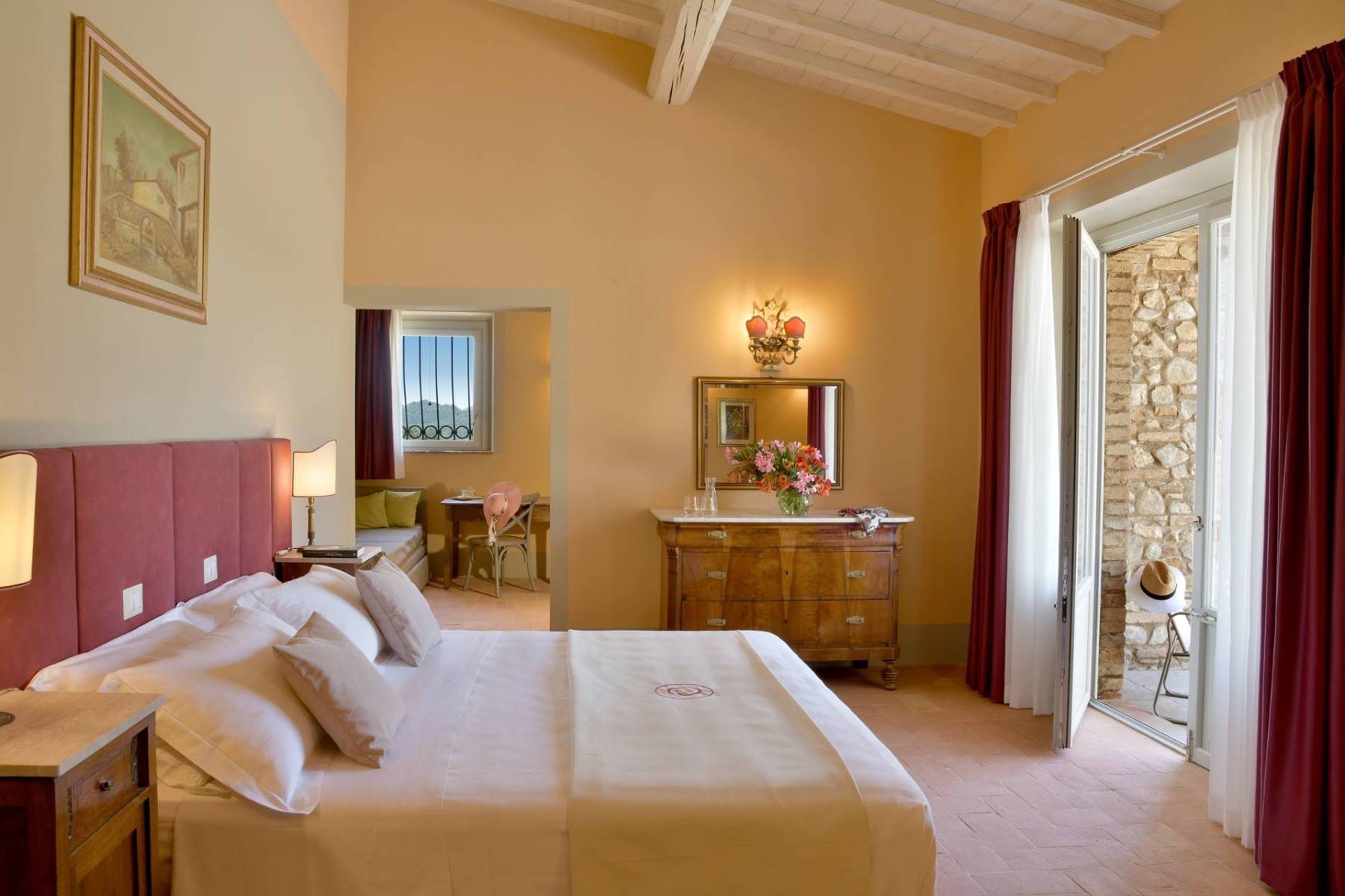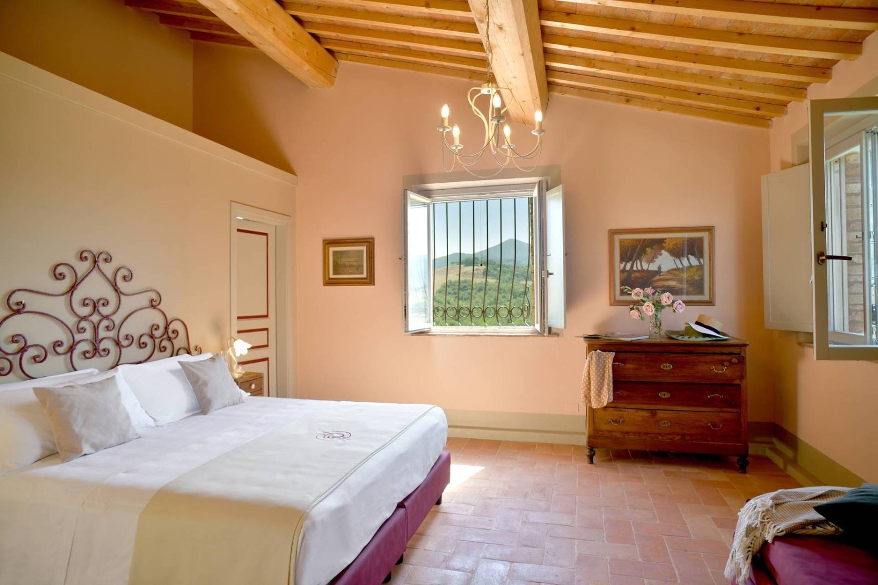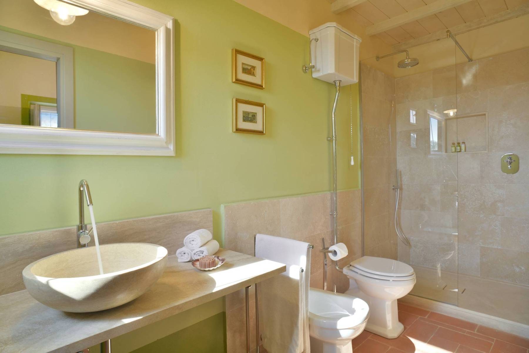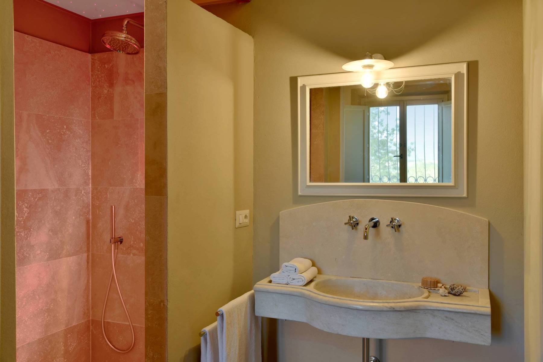 Die Villa Podere Cipressino, umgeben von Haselnussbäumen….ein ungewöhnlicher Baum für die toskanische Erde. Es überblickt etwa 45 Hektar eigener umliegender Ländereien, von denen eine bedeutende Fläche der Kultivierung von Haselnussstauden dient. Mit dem Wiederaufbau wurde 2023 mit dem Ziel abgeschlossen, die typischen Materialien, die der Toskana ihr so liebenswertes Gesicht verleihen, mit den Bedürfnissen unserer Zeit zu vereinen. Die Steine, der Cotto und der meisterhaft hergestellte Travertin führen in die Seele der Toskana, während flächendeckendes WIFI, eine Farbtherapie-Dusche, oder ein kleiner Fitnessraum zu jenen Dingen zählen, die den Aufenthalt unserer Gäste, die dieses Anwesen als ihren Ferienort gewählt haben, noch angenehmer gestalten.