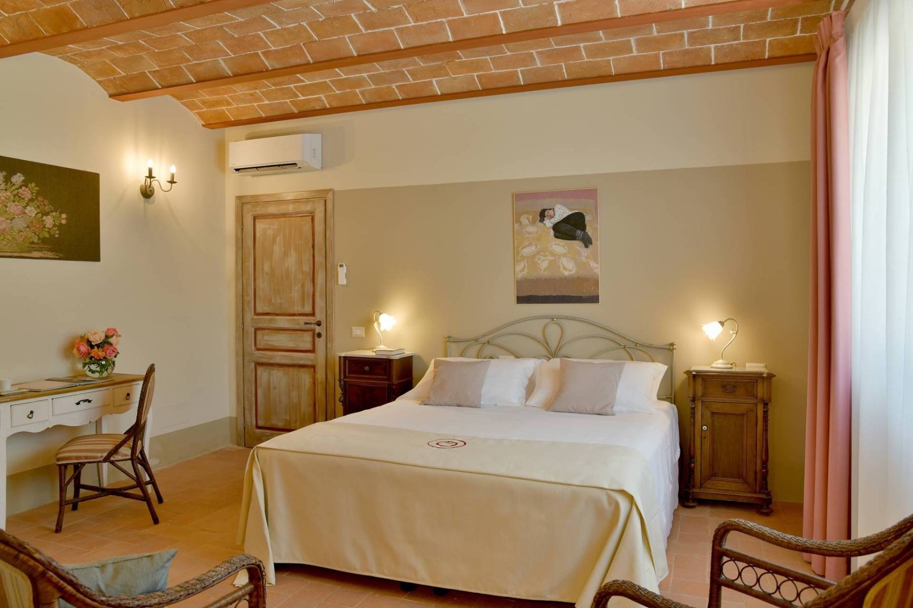 Bettwäsche Doppelbett Fenster Klimaanlage Kommode Terrassenzugang Vorhänge