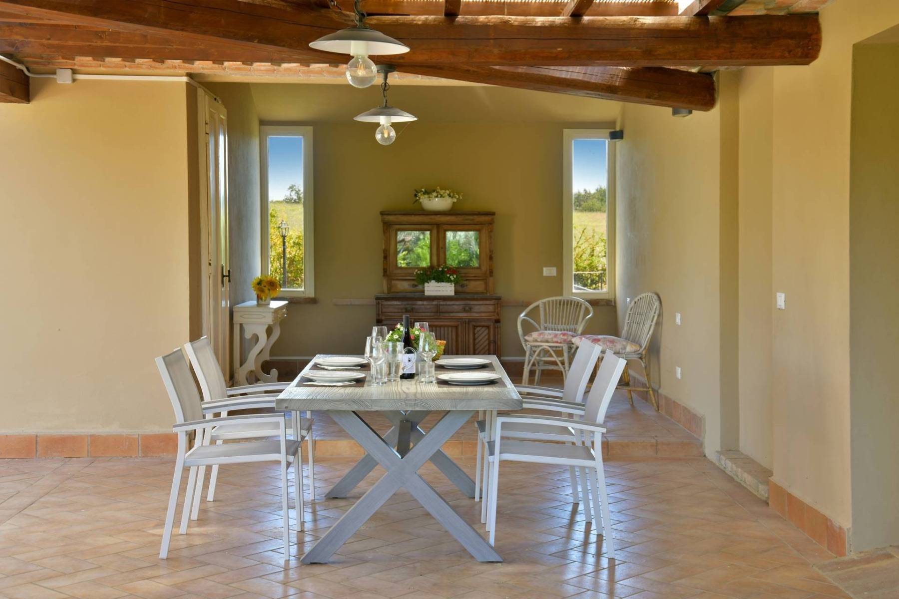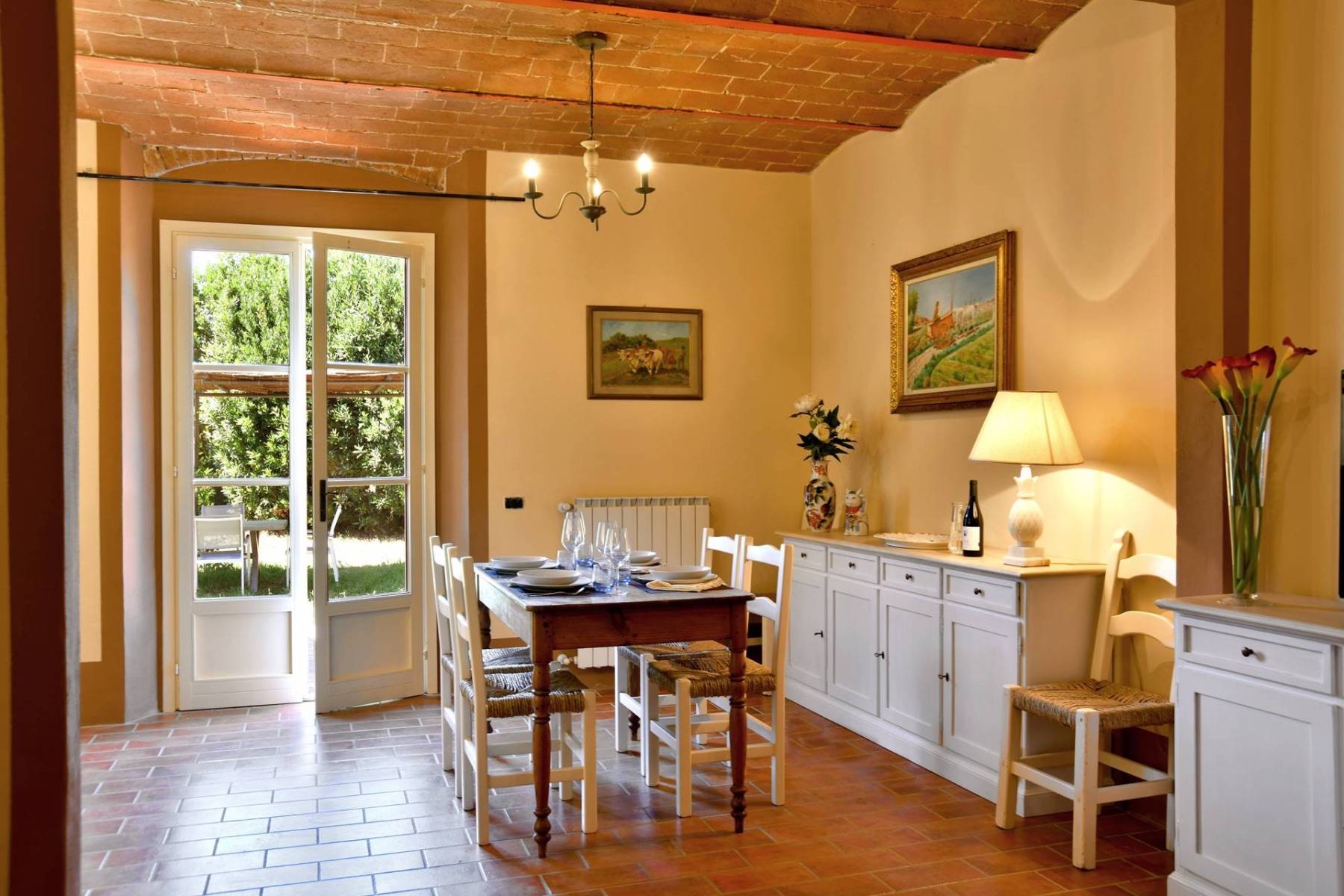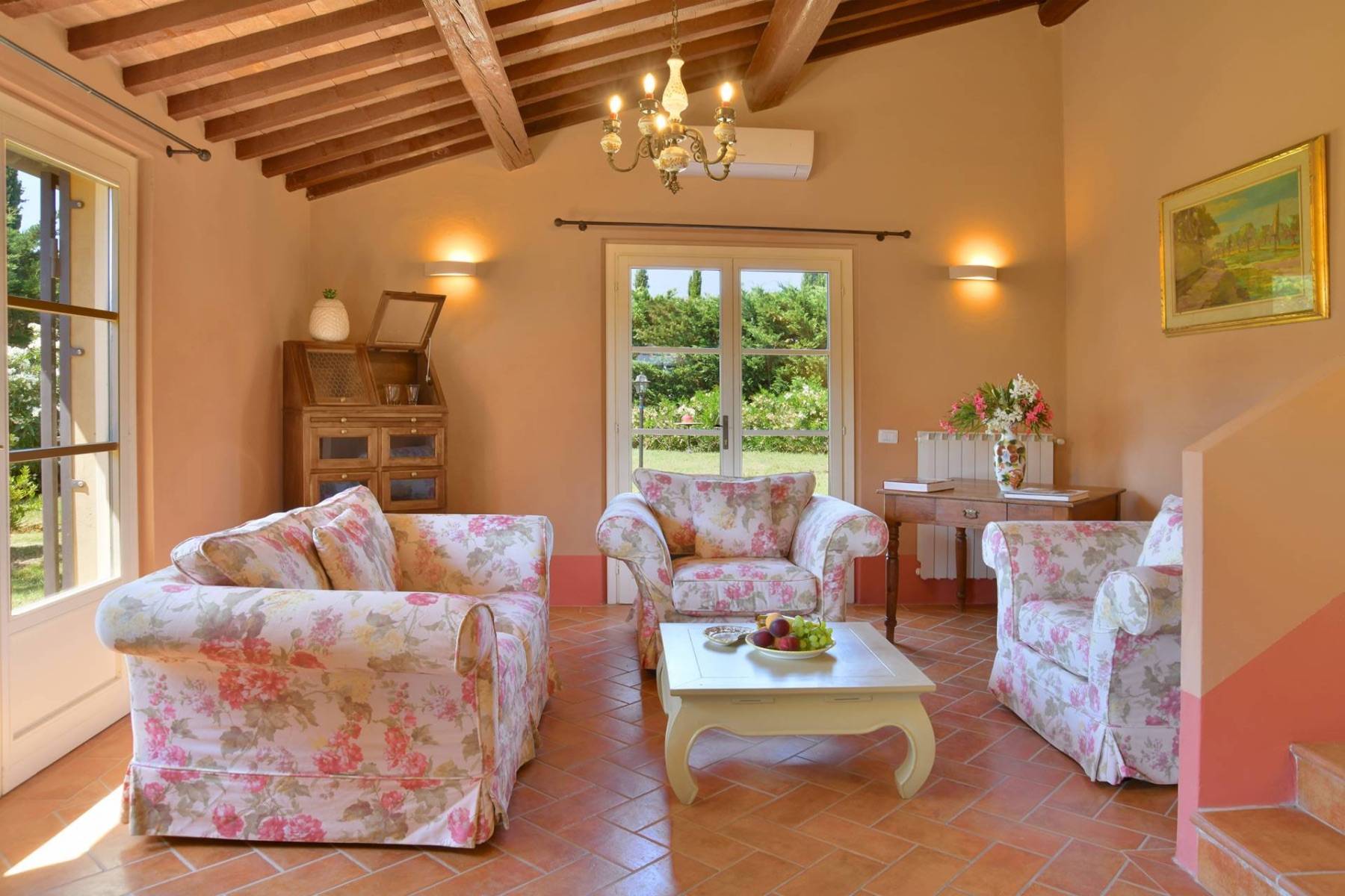 Ausgestattet ist der Podere mit einer Klimaanlage und einer Zentralheizung. Bei der Restauration wurde auf warmen Farben die eine gemütliche Wohnatmosphäre zaubern, Wert gelegt. Große Fenster durchfluten die Zimmer mit viel Licht.