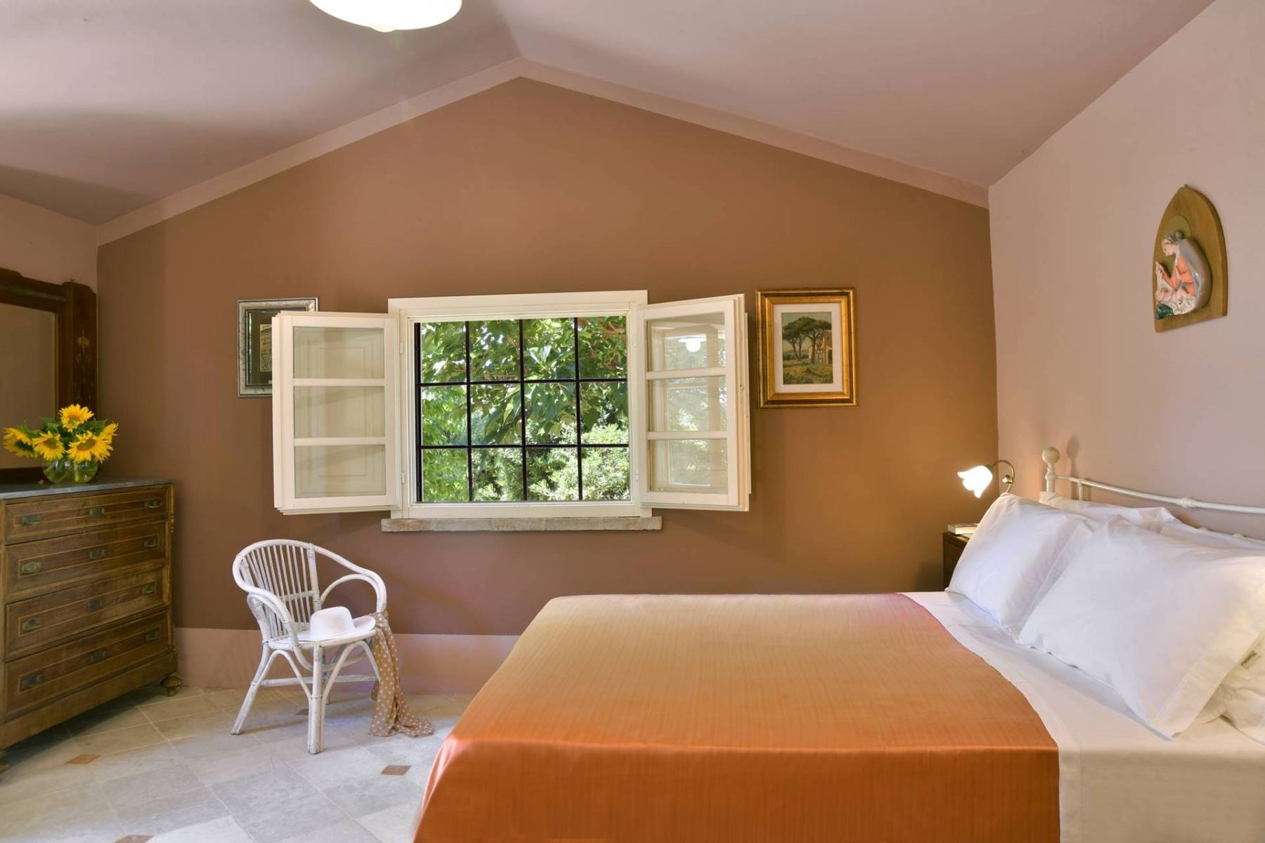 Das große Haupthaus besteht aus drei Wohneinheiten (zwei im Erdgeschoss und eines im ersten Stock). Die beiden Wohneinheiten im Erdgeschoss konnten aufgrund der wunderschönen Restauration der Ferienvilla miteinander verbunden werden. Das Apartment im ersten Stock hat einen separaten Eingang und eine schöne Panoramaterrasse. Das große und weitläufige (nicht eingezäunte) Grundstück von 23 Hektar umgibt das Anwesen und es befinden sich zwei überdachte und schattenspendende Terrasse mit Tisch und Stühlen im Aussenbereich. Für gemeinsame Grillabende darf der große gemauerte Aussengrill, sowie ein Holzofen nicht fehlen. Ein Highlight ist der große private und eingezäunte Swimmingpool (14 m x 7 m, Tiefe 1.10 m, Öffnungszeiten Mitte Mai bis Ende September), welcher über zwei verschließbare Eingangstürchen zugänglich ist. Der Swimmingpool hat einen sanften Einstieg über Stufen und ist umgeben von einem großen Sonnenbereich mit Liegen, Stühlen und Sonnenschirmen.